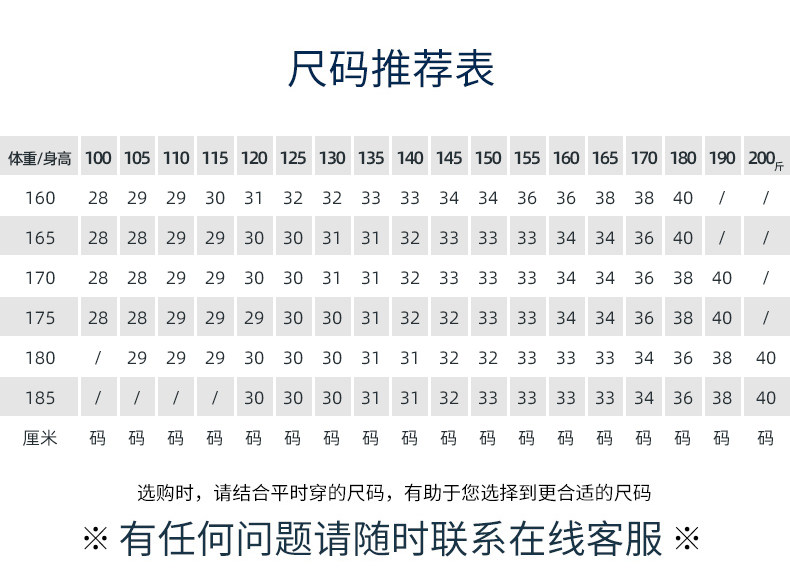USA(inch) 28-30 30-32 32-34 34-38 38-42