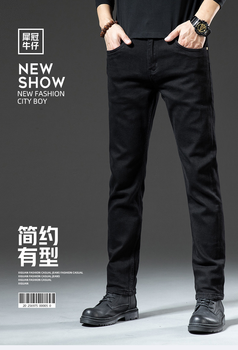 香港高端黑色牛仔裤男士2023新款秋季修身直筒休闲弹力百搭长裤子