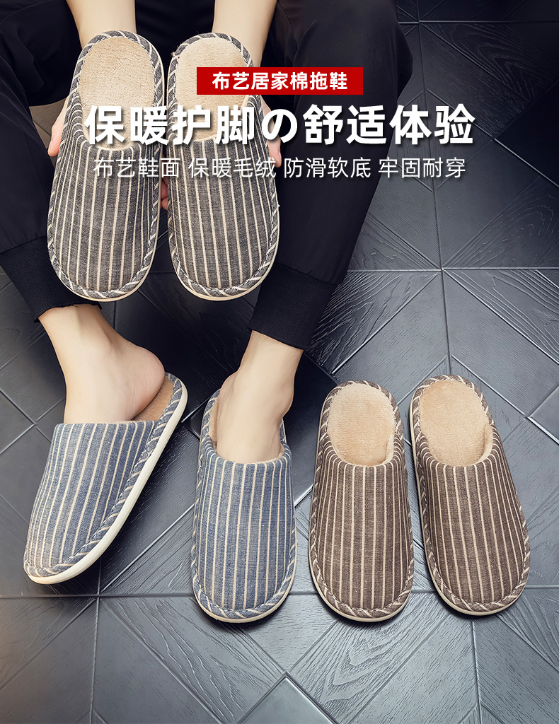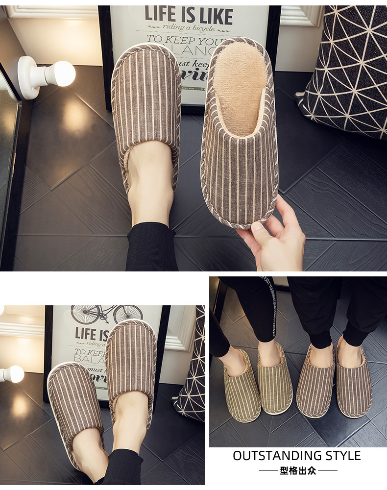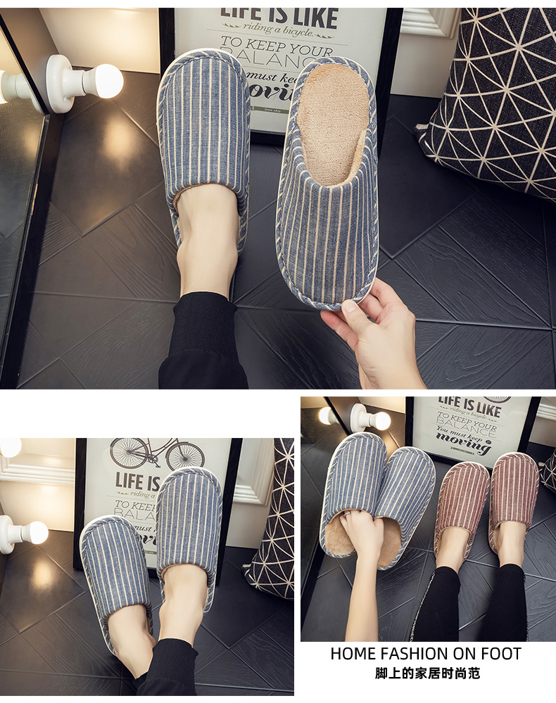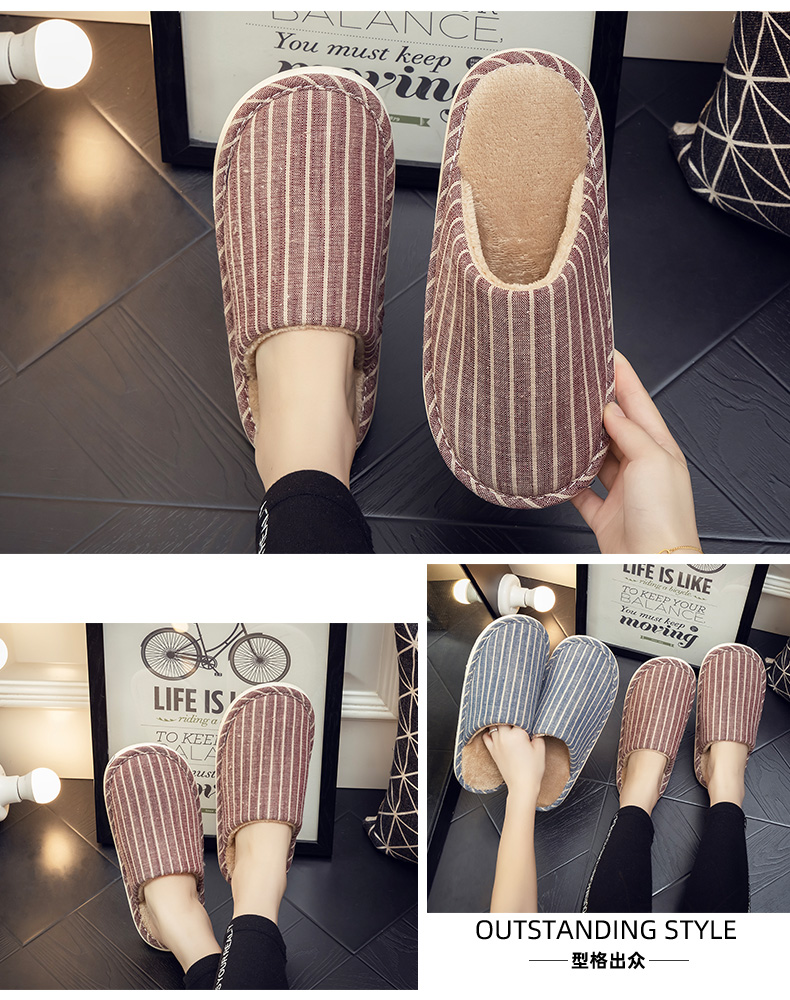 Autumn and Winter Home Use Warm Fabric Cotton Slippers for Men and Women Indoor Cartoon Non-Slip Striped Home Slippers Korean Style