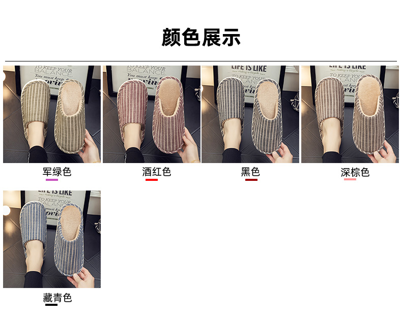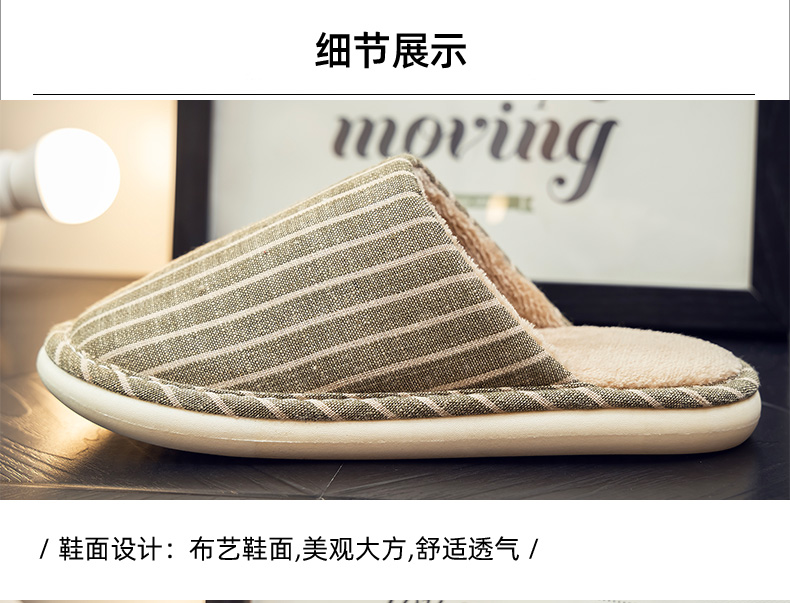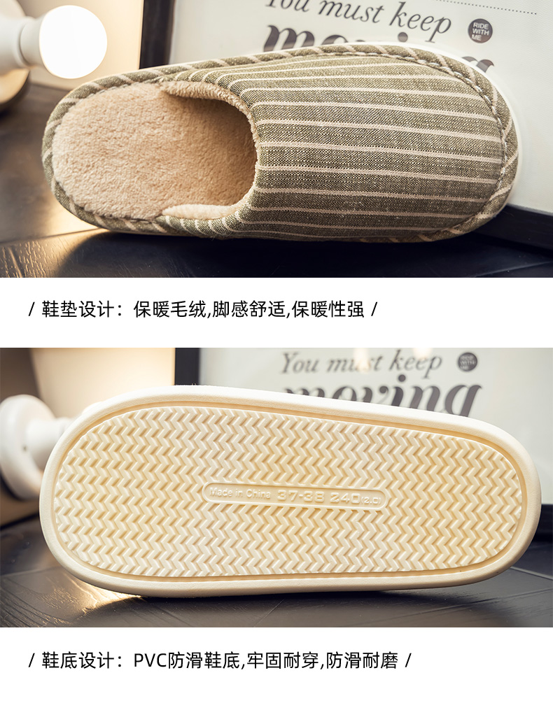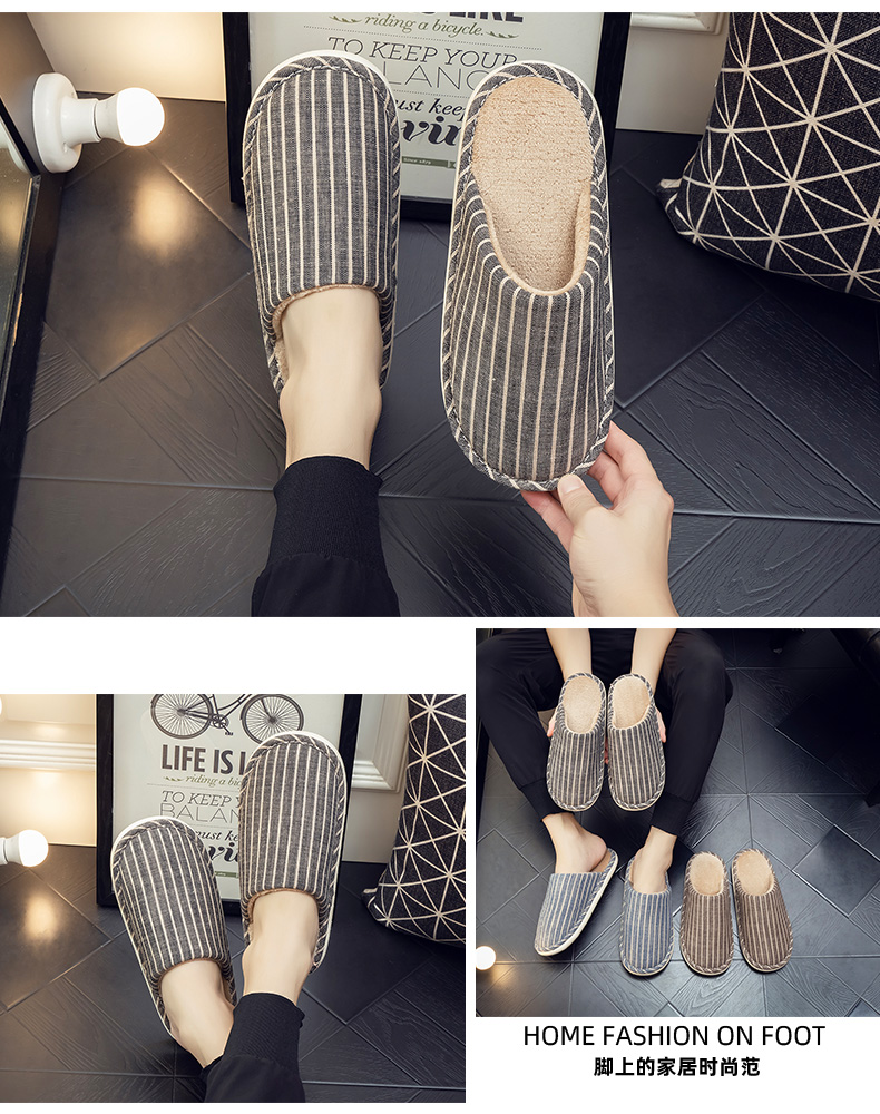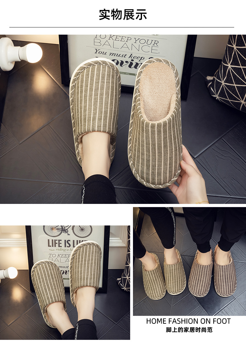 Autumn and Winter Home Use Warm Fabric Cotton Slippers for Men and Women Indoor Cartoon Non-Slip Striped Home Slippers Korean Style