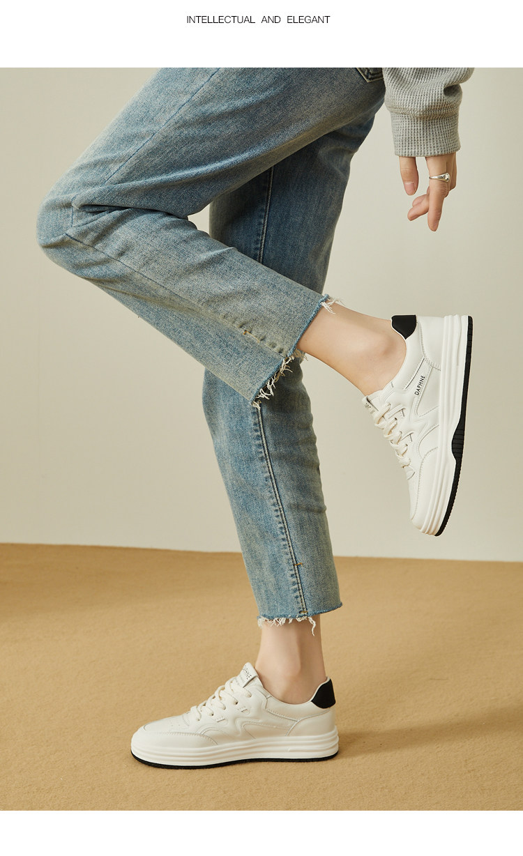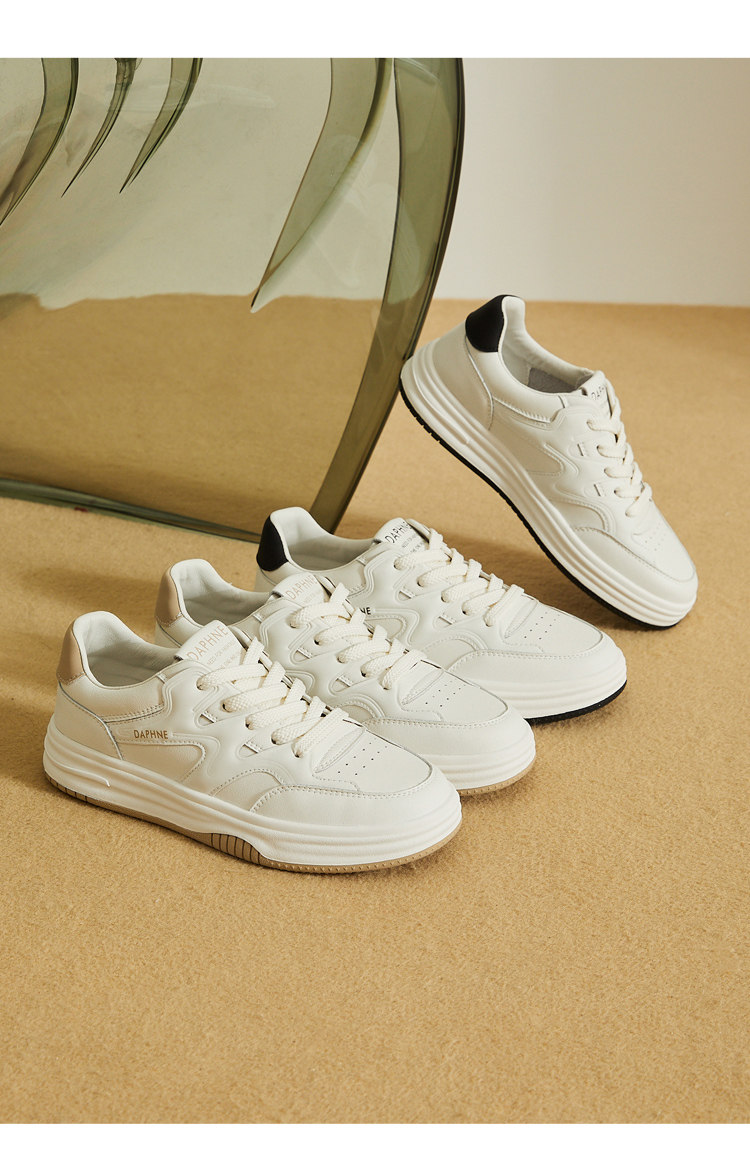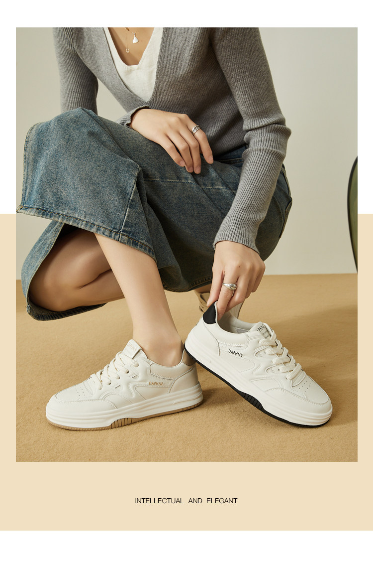 Daphne thick-soled white shoes for women 2025 new spring and autumn versatile genuine leather popular sports and leisure flat shoes