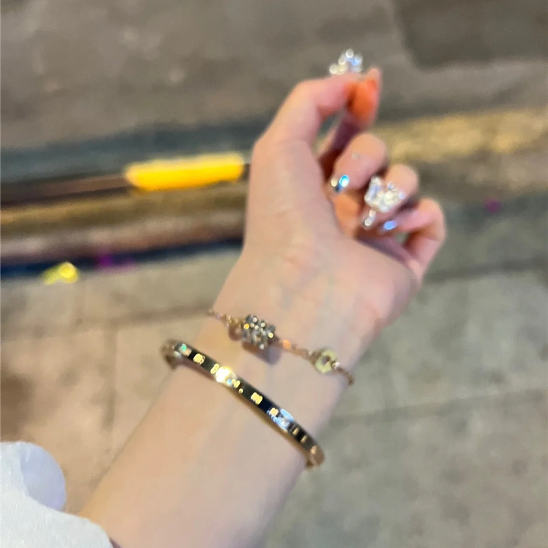 New Titanium Steel Non-Fading Roman Numeral Bracelet Ins Light Luxury High-End Stackable Sparkling Diamond Waist Chain Bracelet