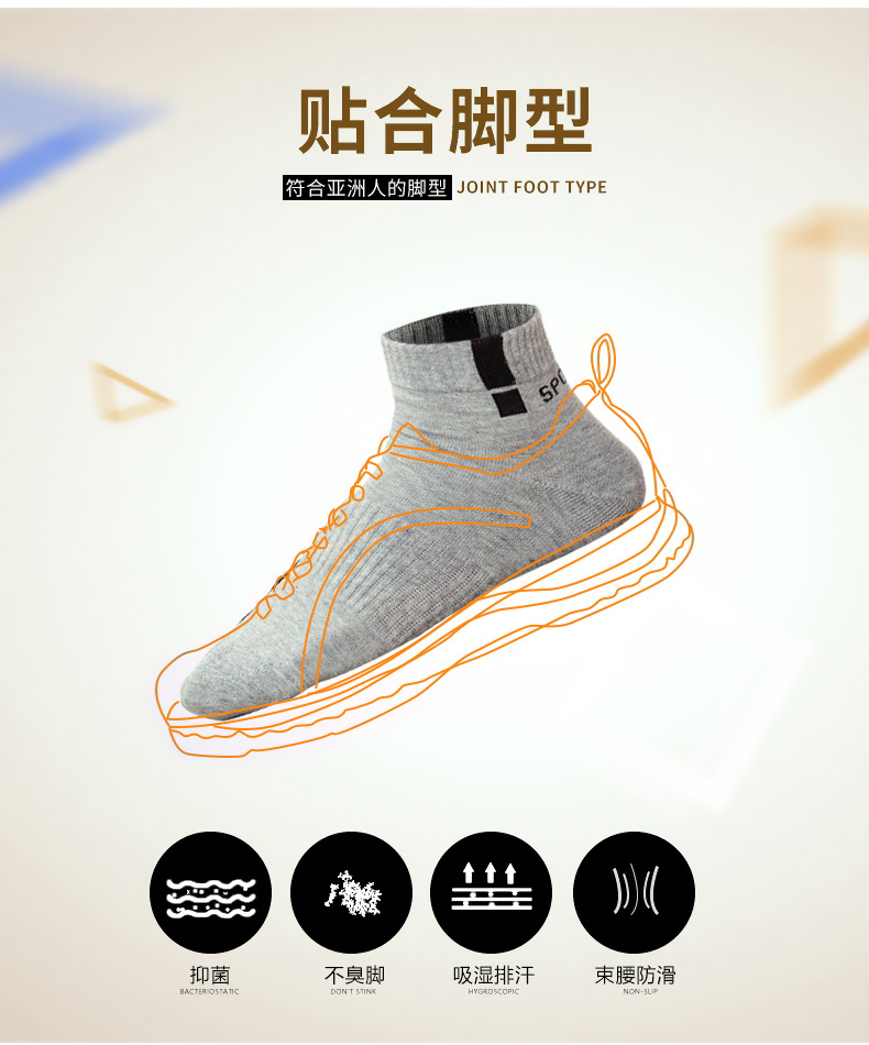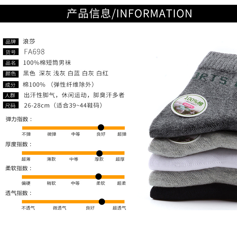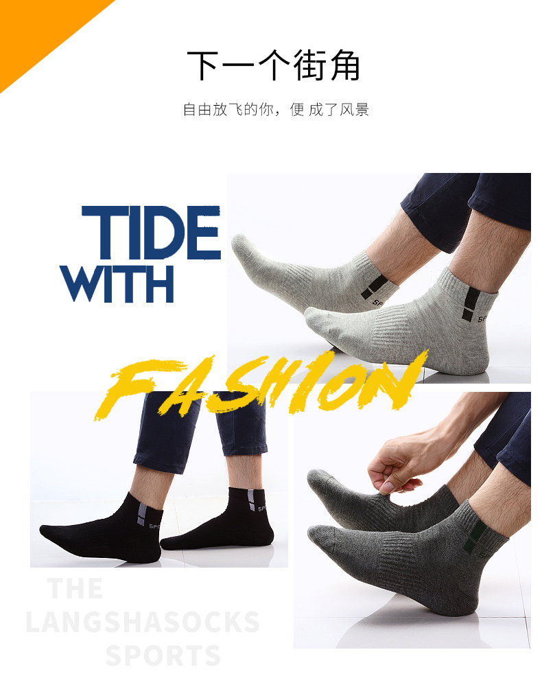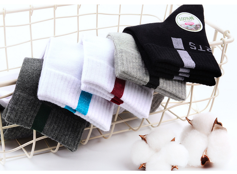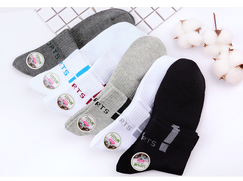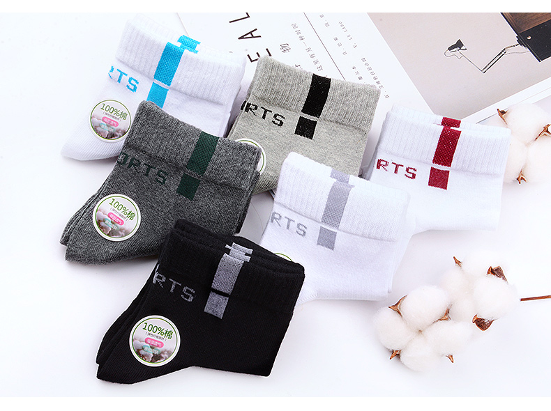 Langsha brand men's short socks, boys' pure cotton socks, spring, autumn and winter sports mid-calf socks, 100% cotton, anti-odor feet