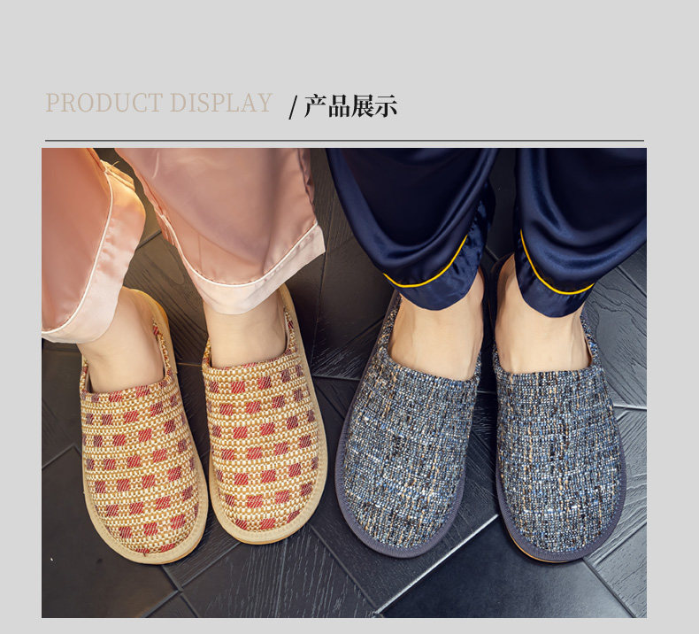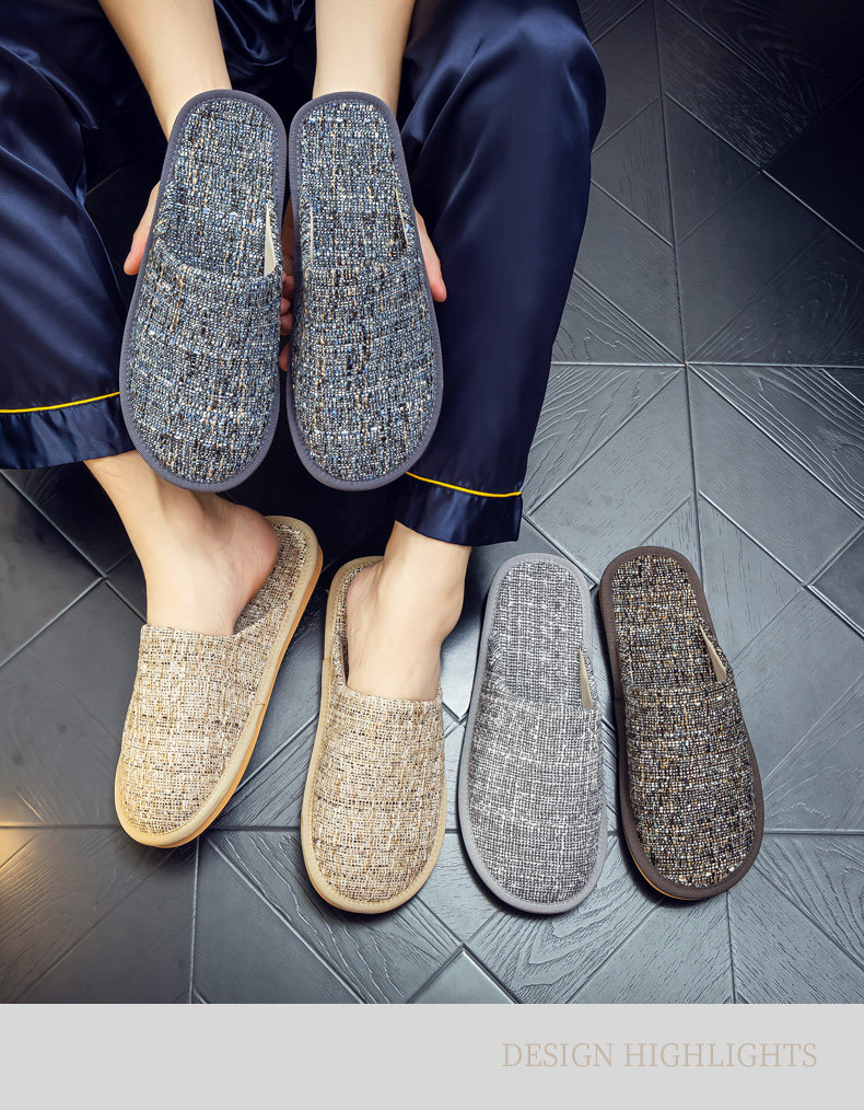 春秋夏四季居家用麻棉布艺男女情侣家居拖鞋厚底室内地板防滑静音