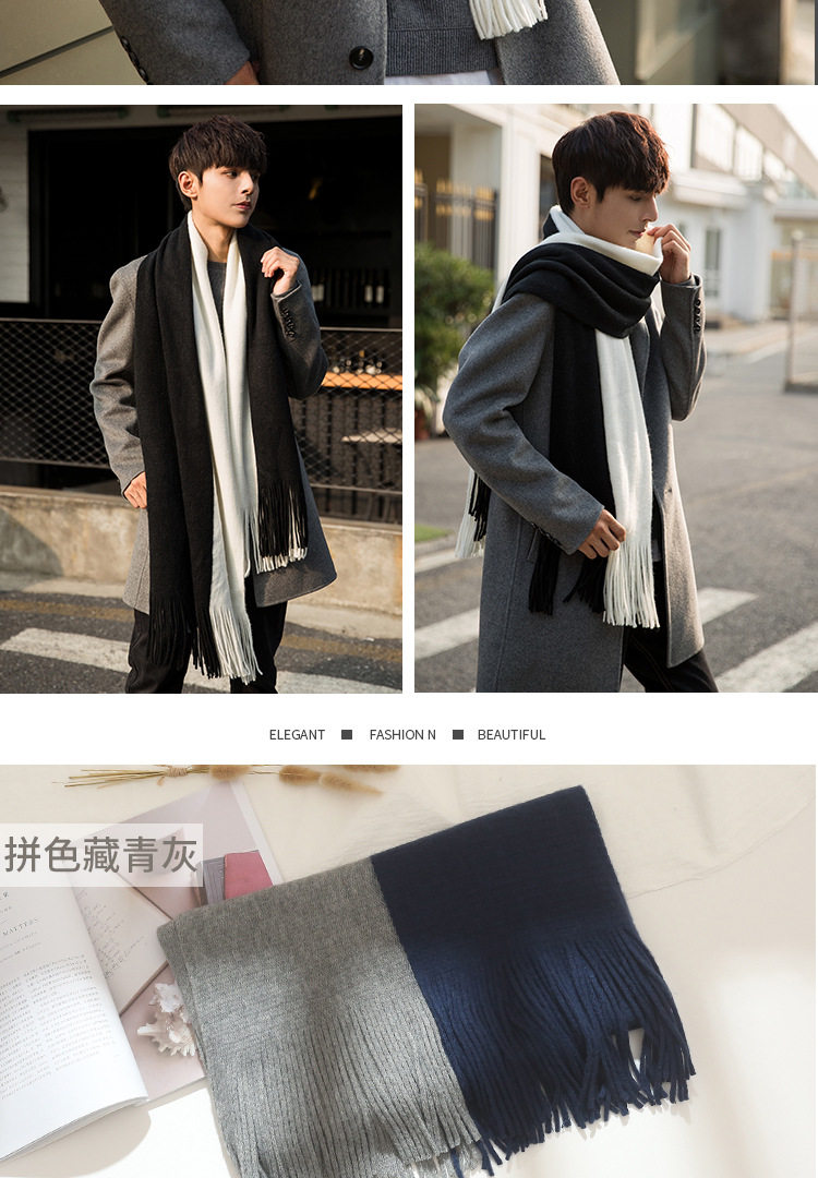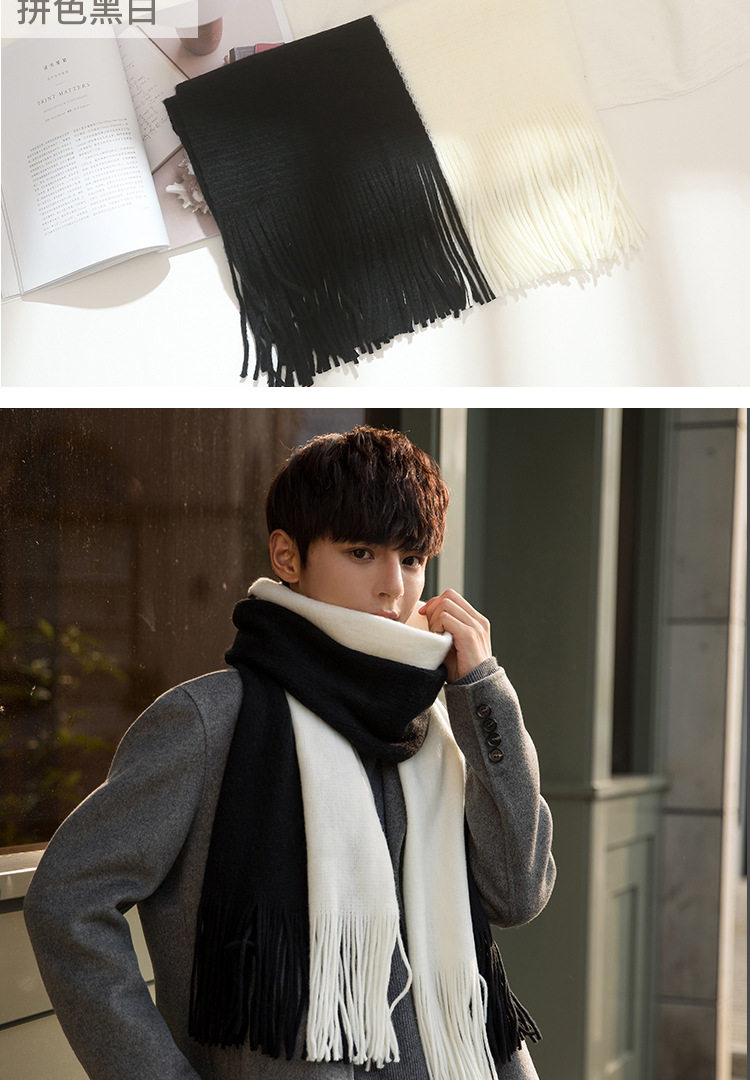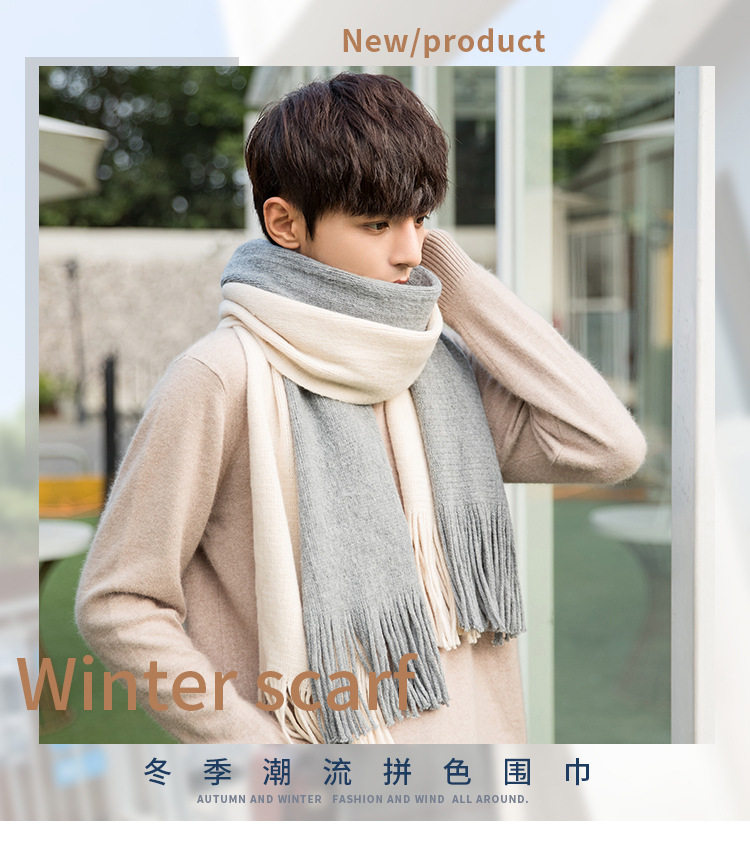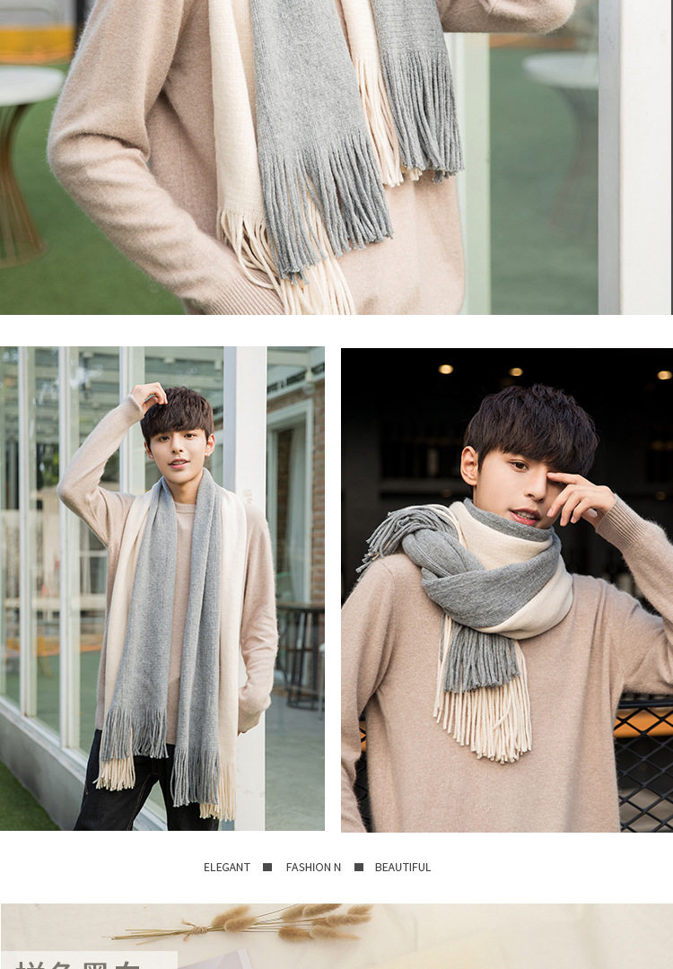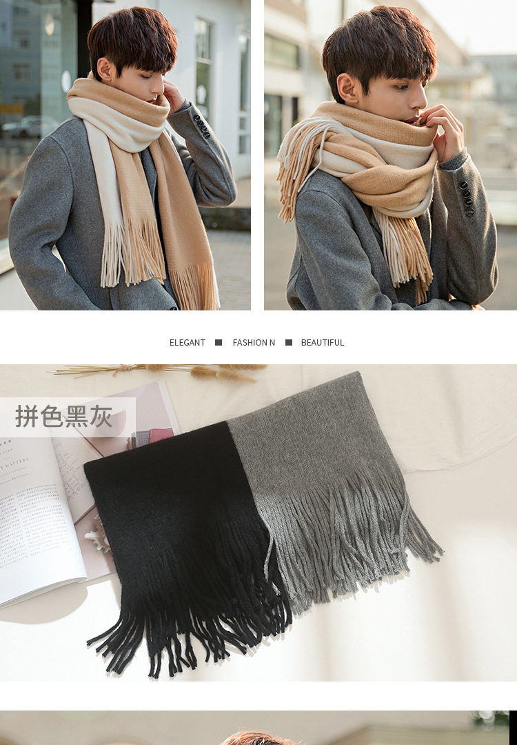 Korean versatile scarf for men in autumn and winter with tassels 2025 new high-end couple neck scarf for students thickened and warm