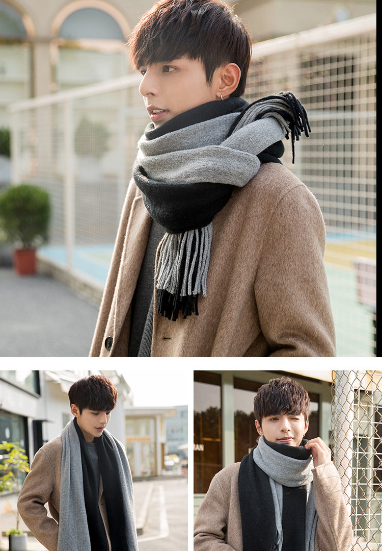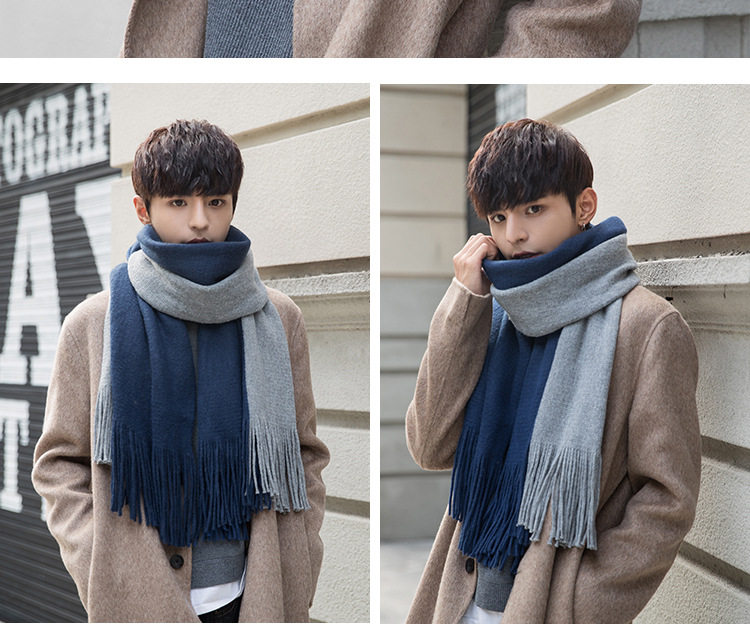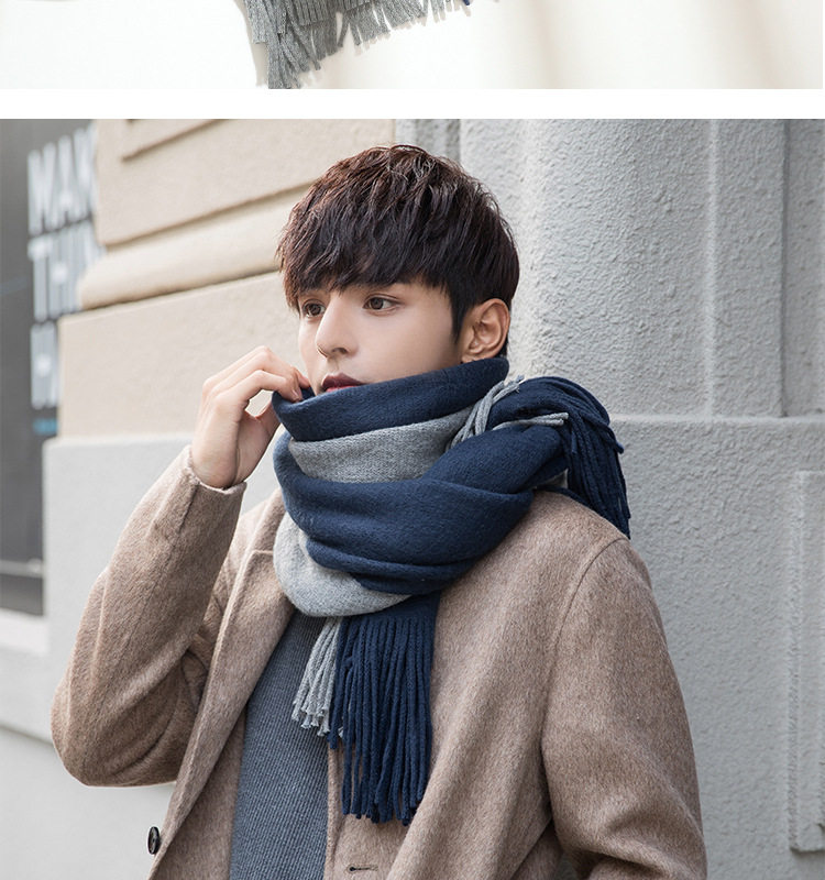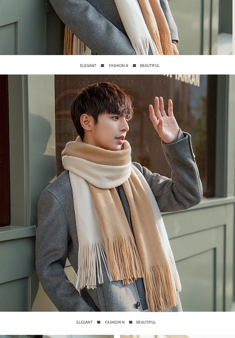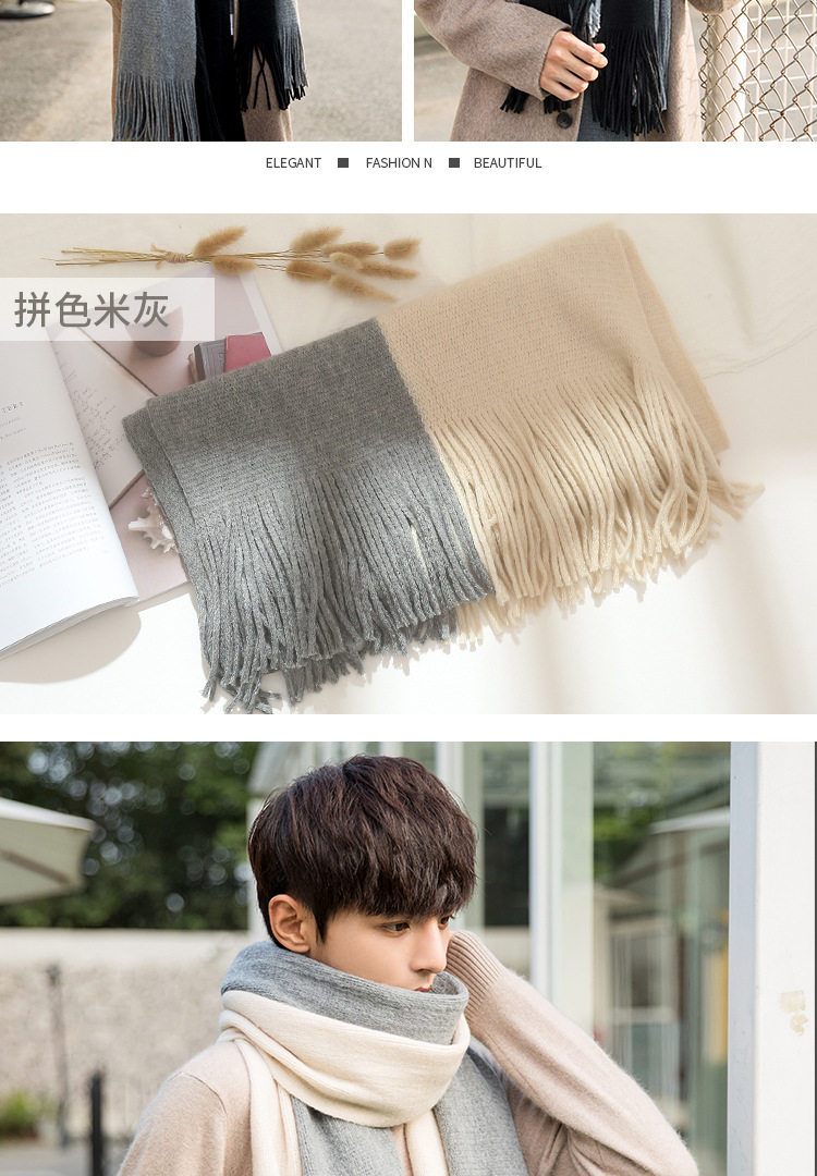 Korean versatile scarf for men in autumn and winter with tassels 2025 new high-end couple neck scarf for students thickened and warm