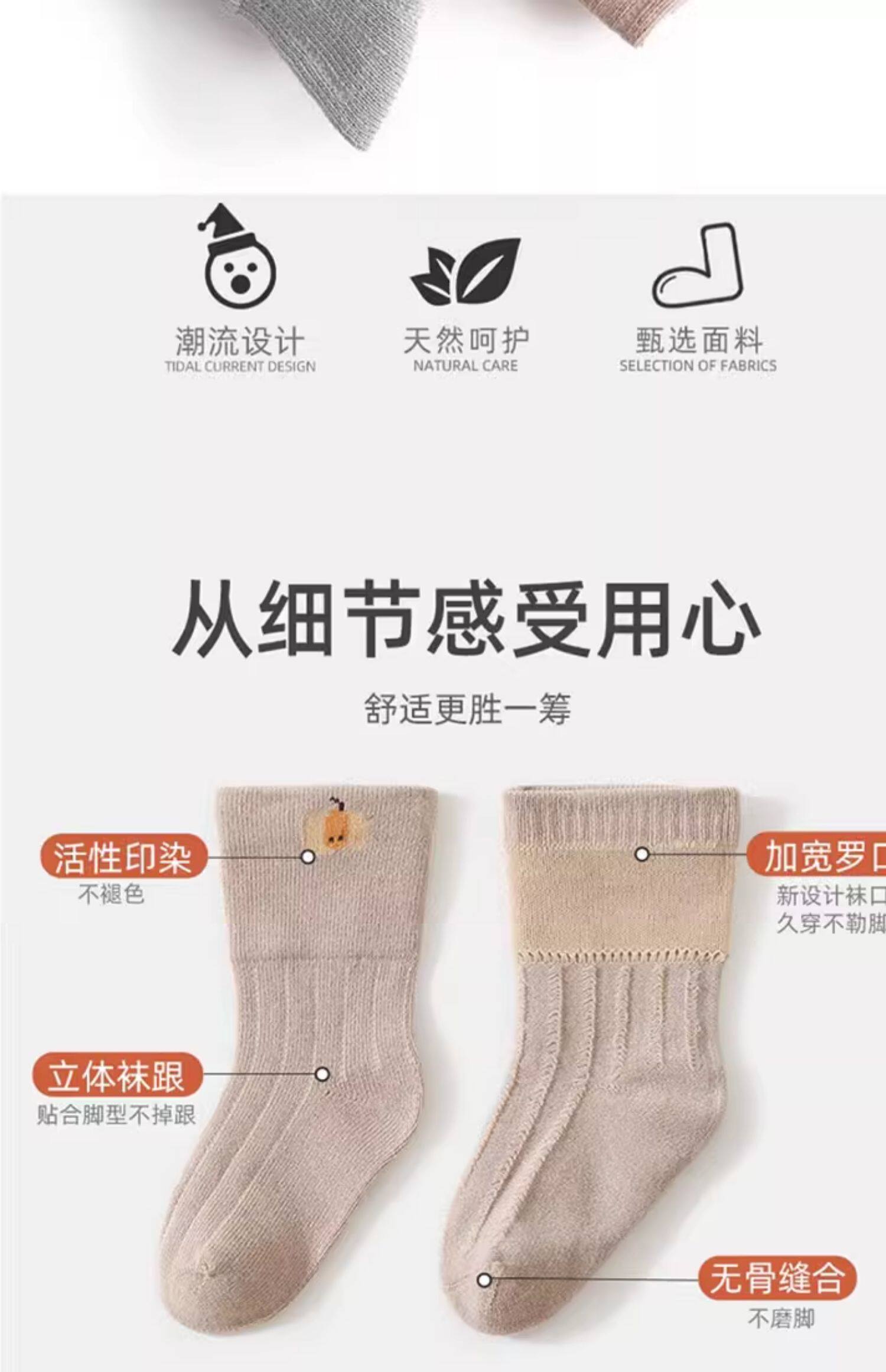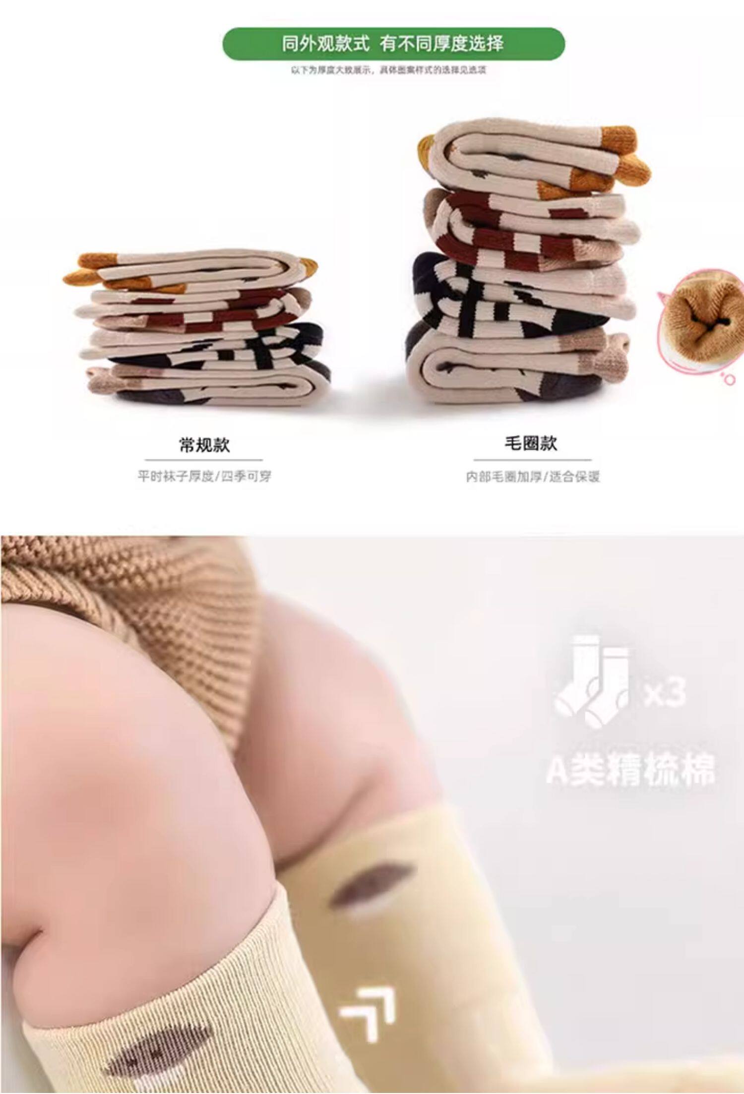 Children's socks loose boneless cotton baby socks baby spring autumn winter thick solid color mid-tube high class a no glue for men and women
