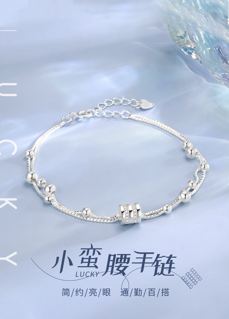 中国黄金小蛮腰925银手链女生款轻奢小众精致送女友闺蜜生日礼物F