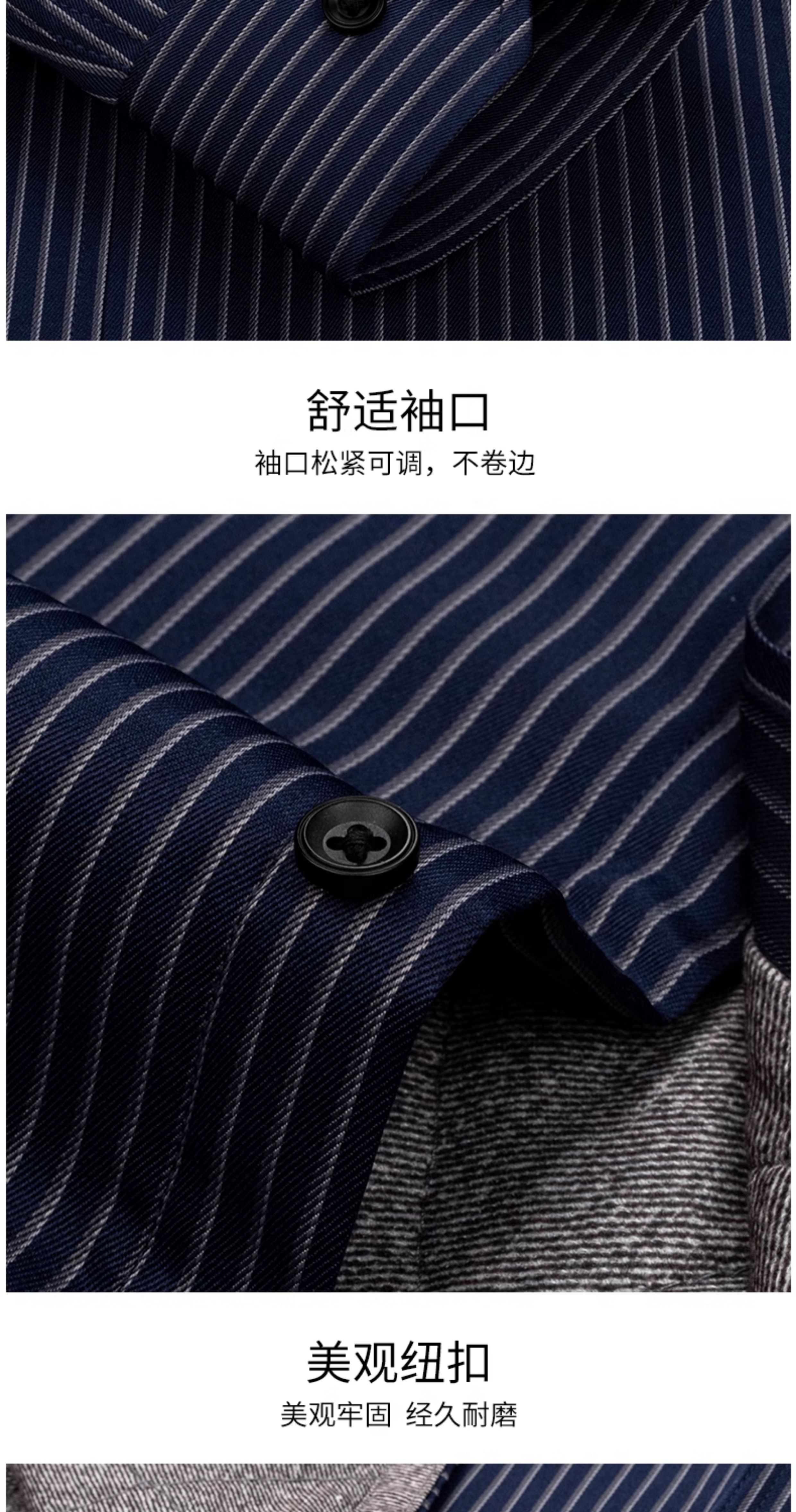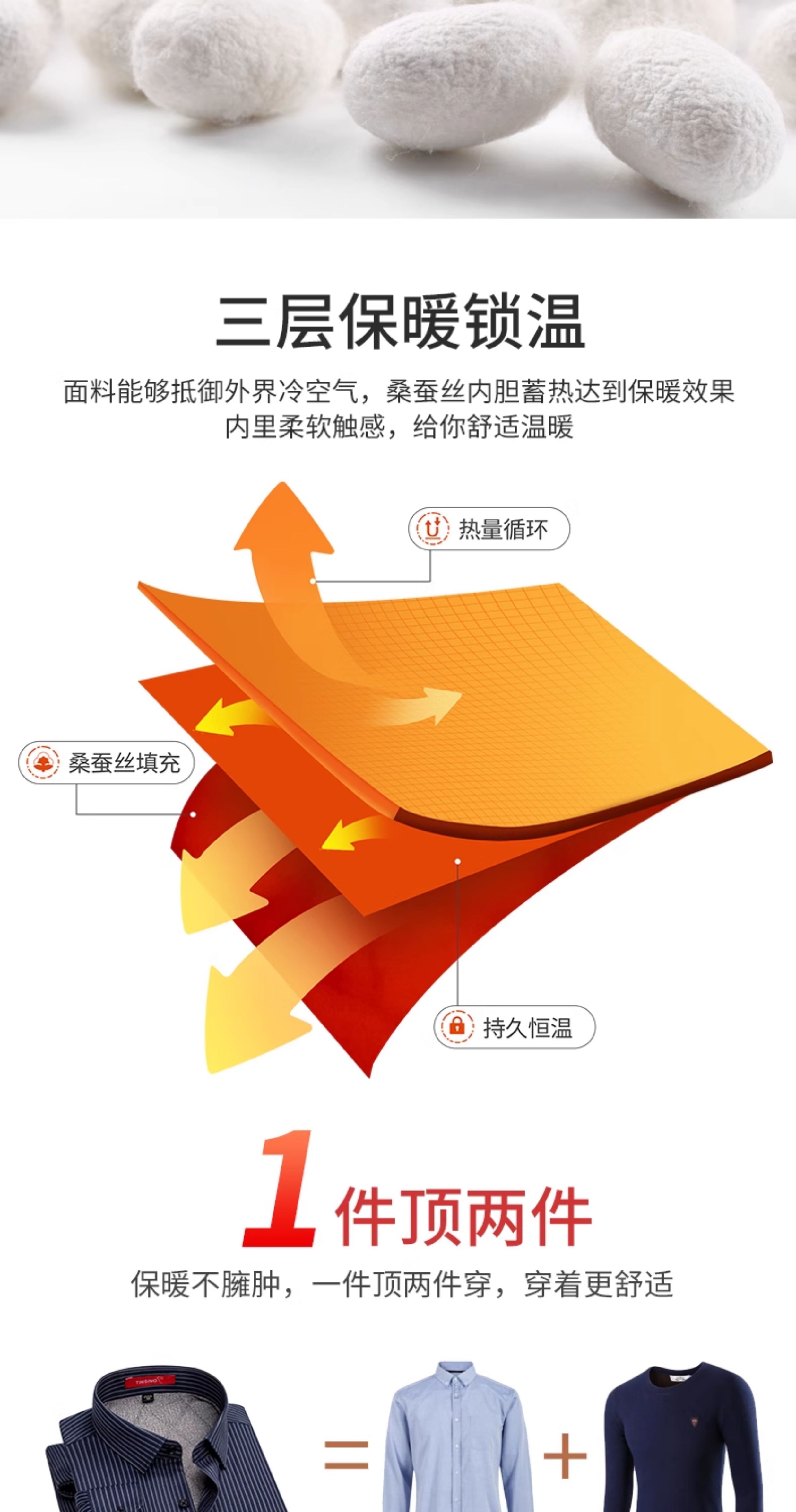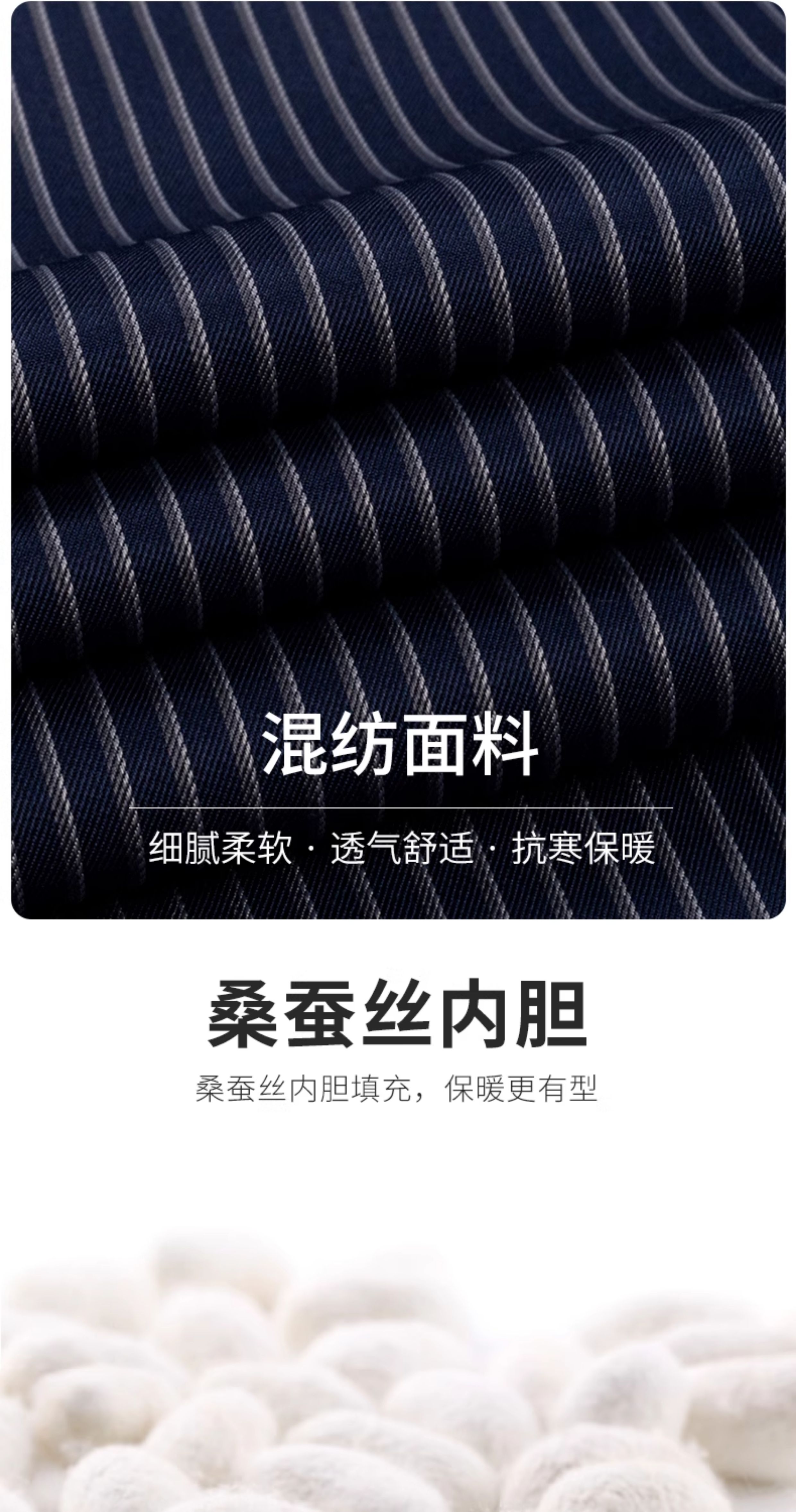 Men's Thermal Shirt with Silk Lining, Thickened for Winter, Plus Size, Middle-Aged Dad Style, Striped Quilted Mulberry Silk Shirt