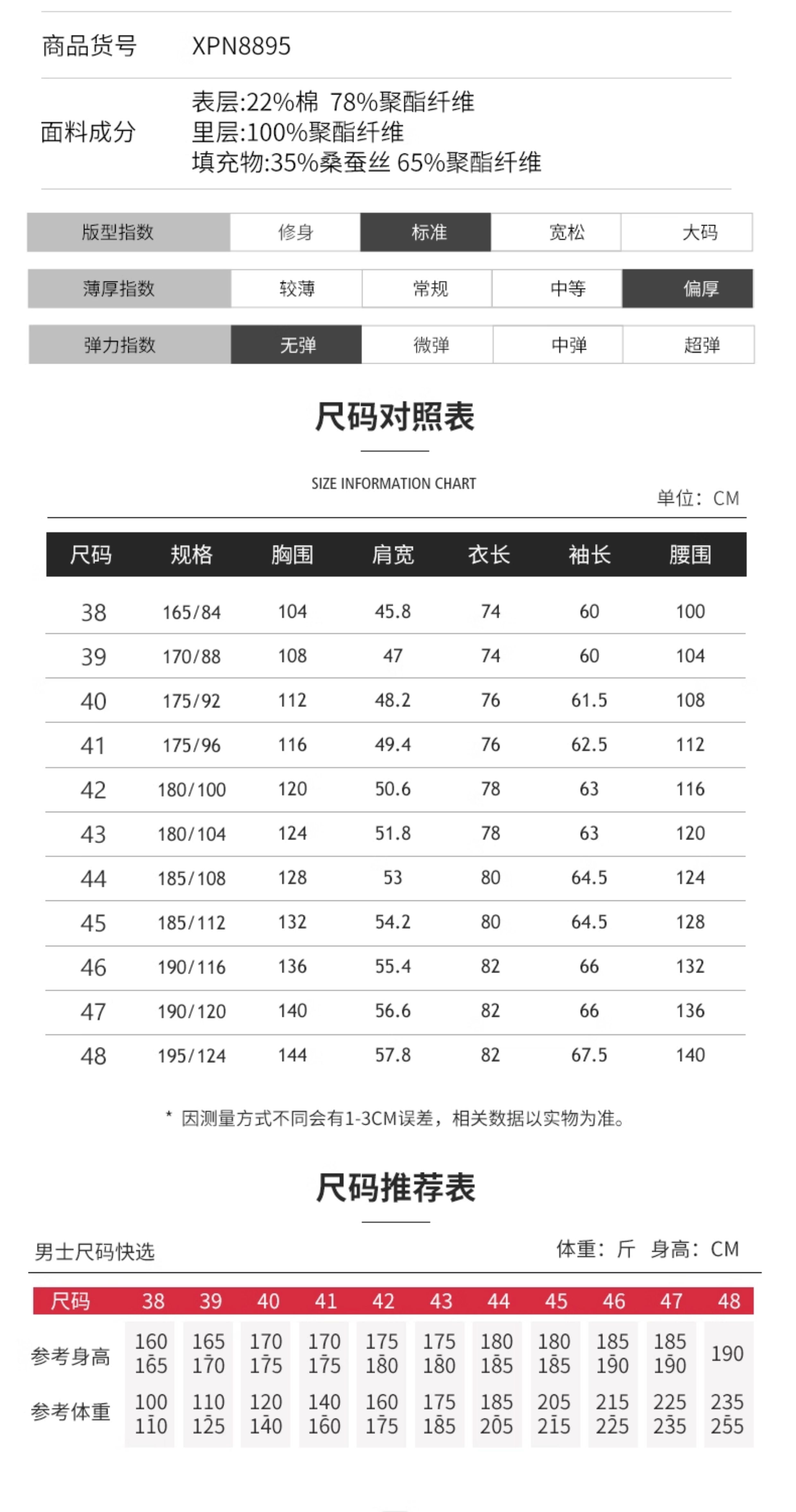 China (cm) 165 / 88-90 170 / 96-98 175 / 108-110 180 / 118-122 185 / 126-130