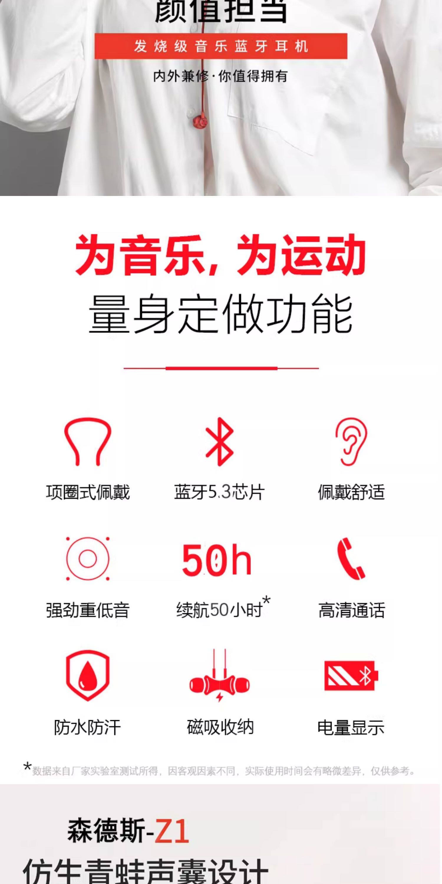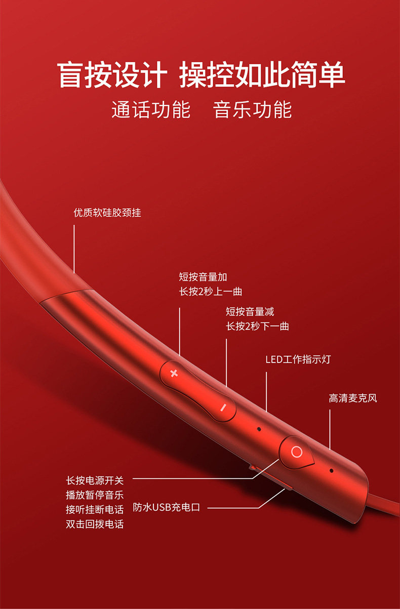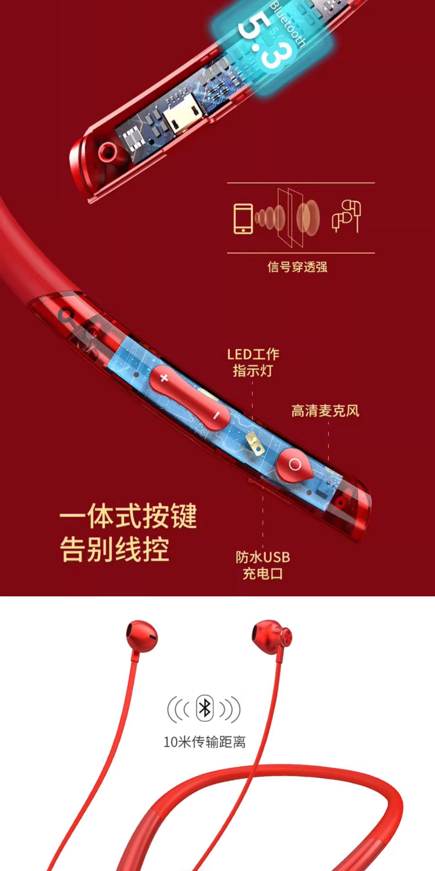 Bluetooth headset neck hanging type wireless sports running noise reduction 2026 new semi-in-ear ultra-long battery life large battery