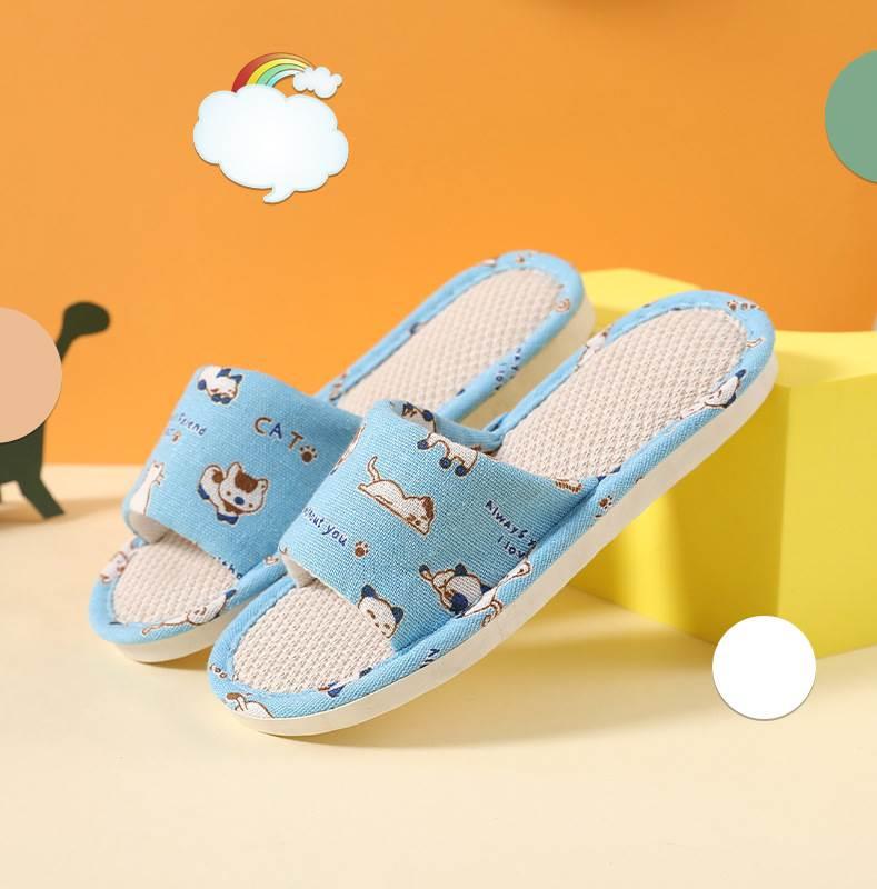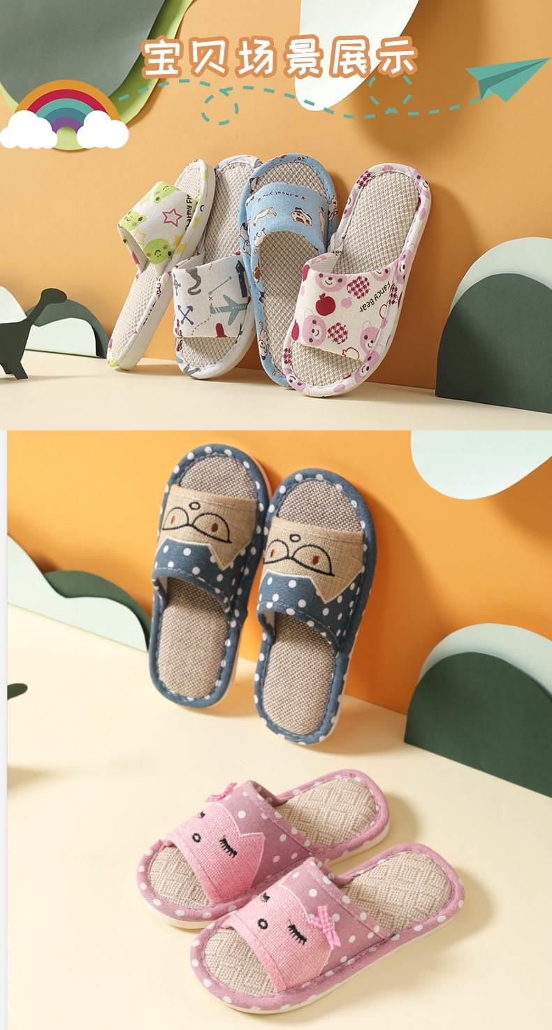 Parent-Child Linen Cartoon Children's Slippers Spring and Summer Korean Style Indoor and Outdoor Women's Slippers Home Fabric Wooden Floor