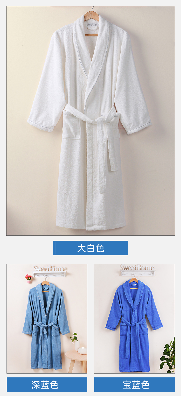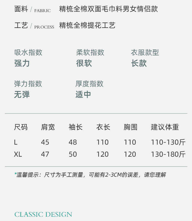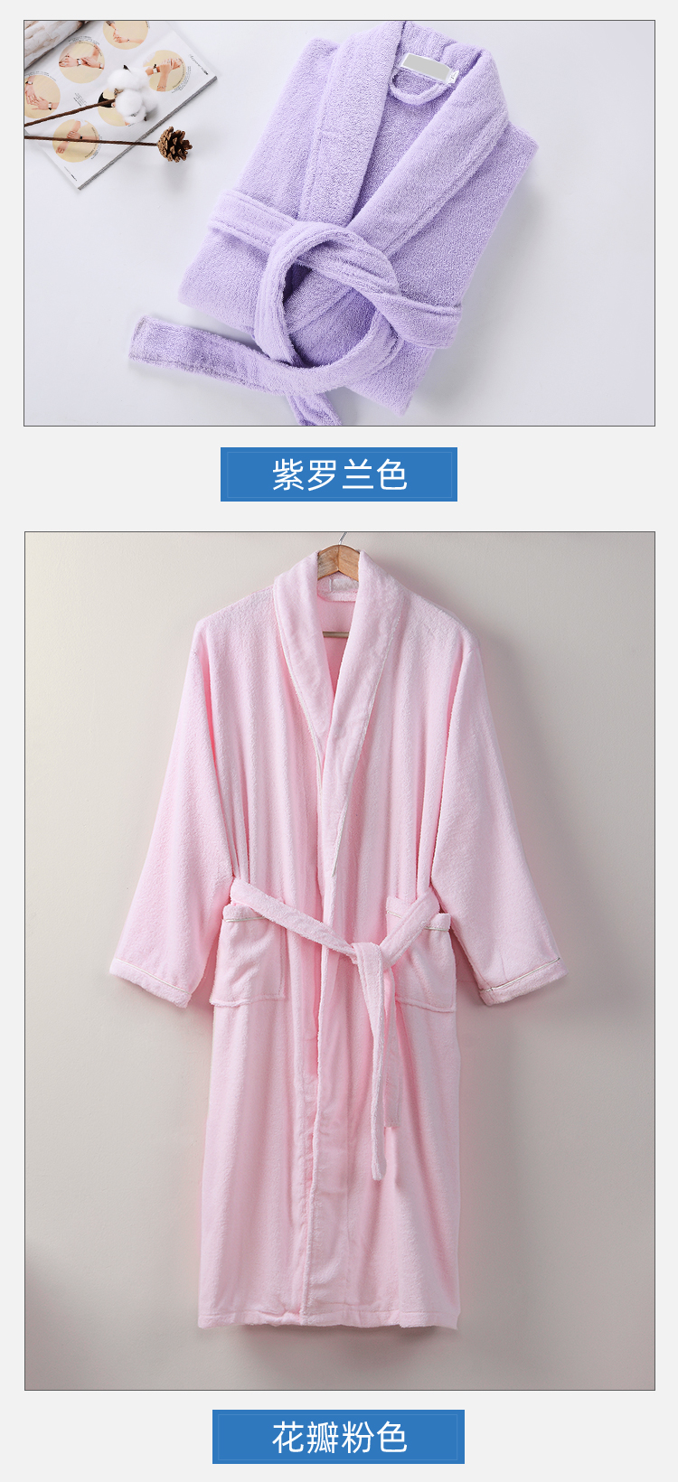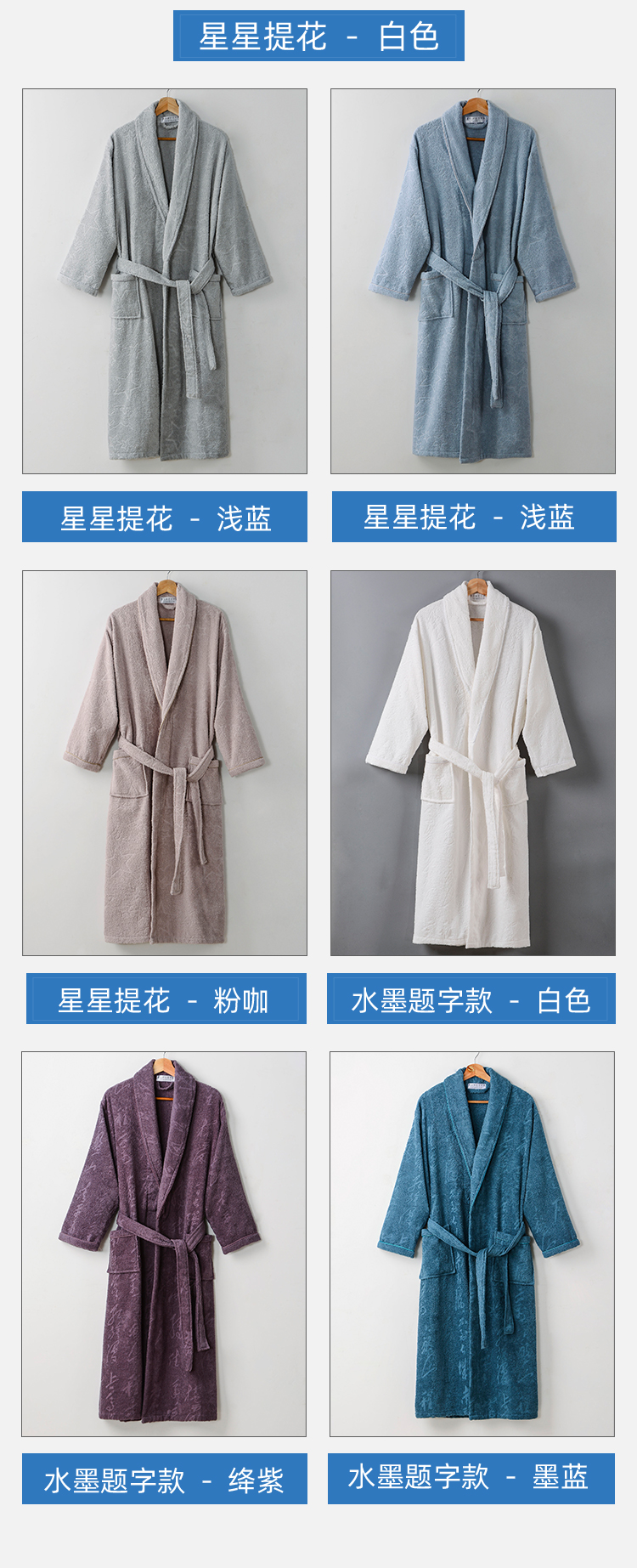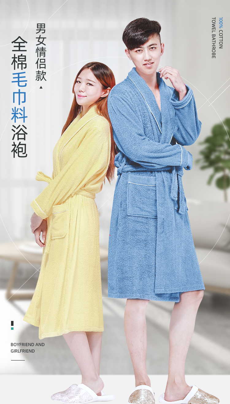 Jialiya All-Cotton Towel Bathrobe for Women, Long Absorbent Quick-Drying Pure Cotton Nightgown for Men, Spring and Autumn Bathrobe, Couple Style