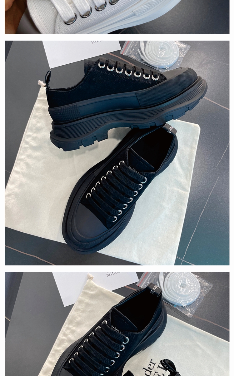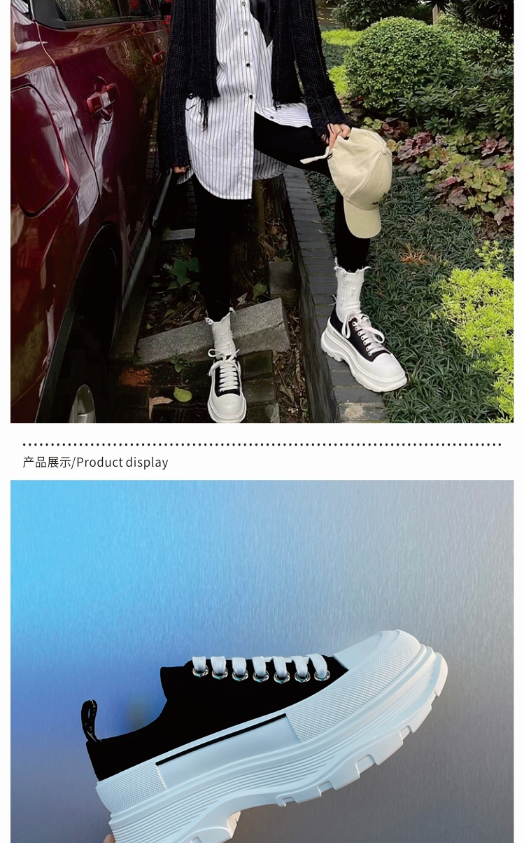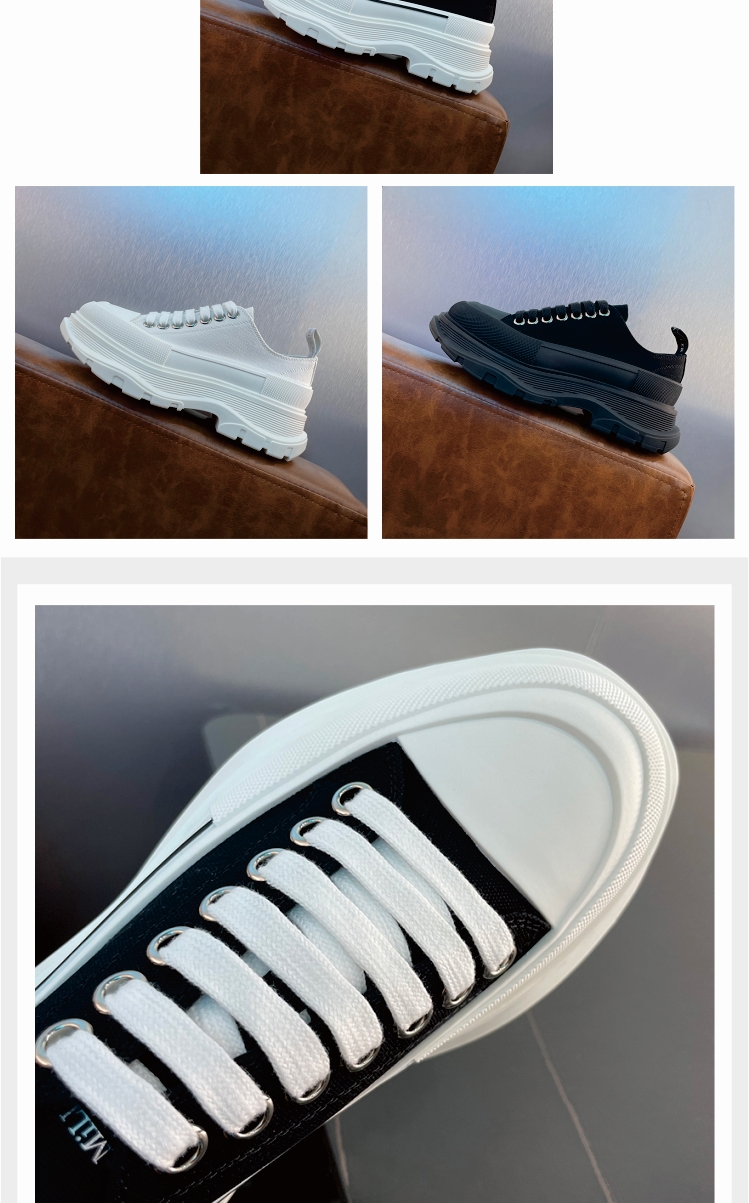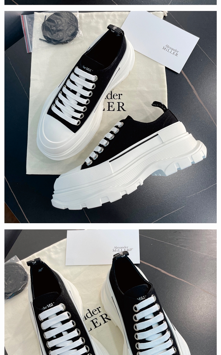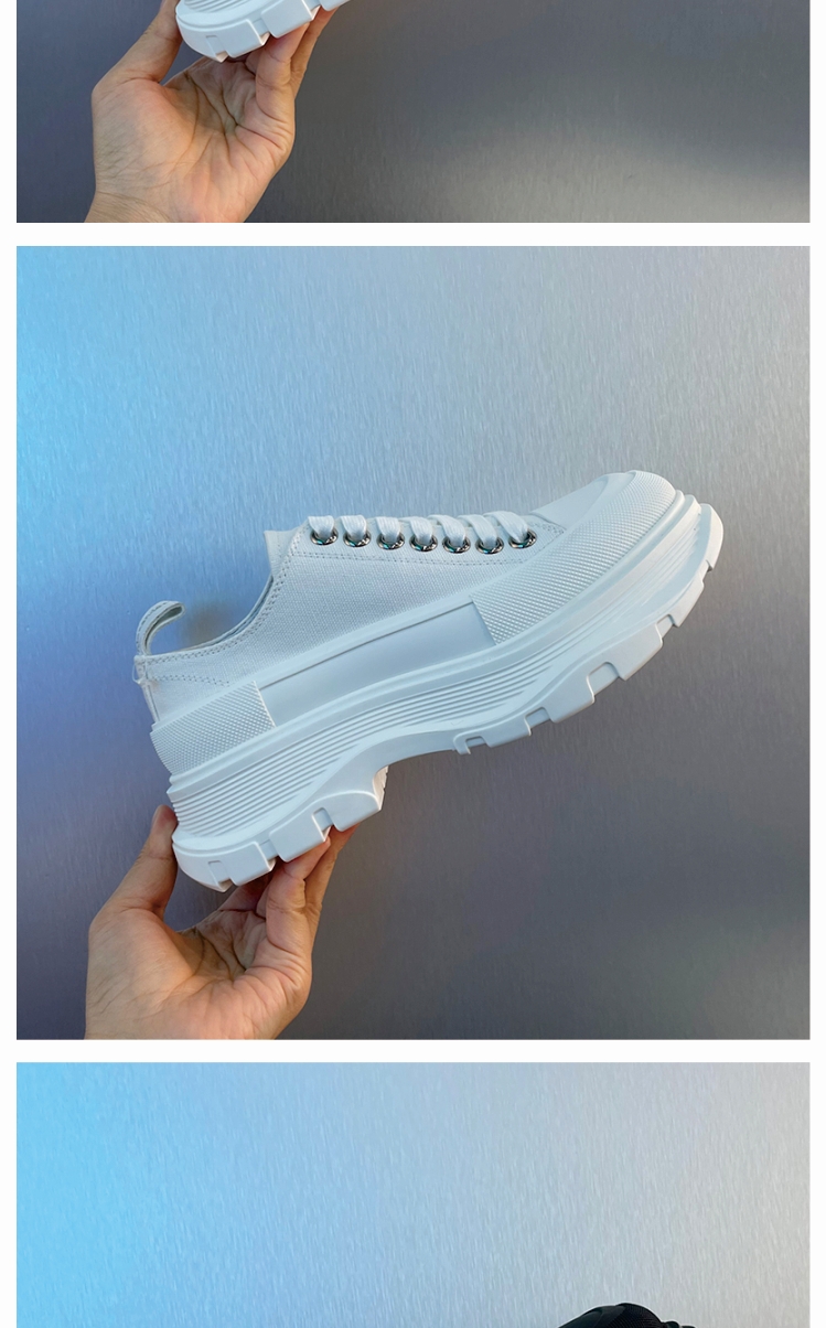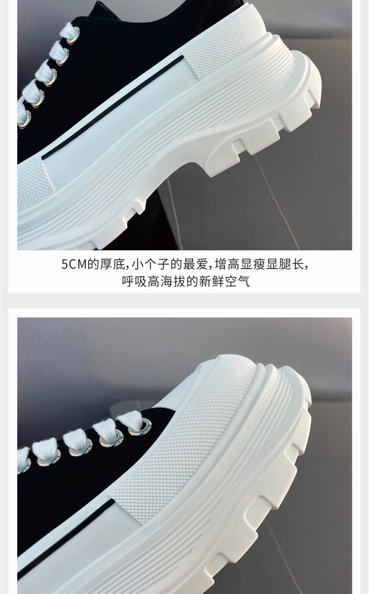 [Paula Xiao Tong] Thick-Soled Height-Increasing Canvas Shoes for Women, Platform Sole, Versatile Lace-Up Low-Top Dad Shoes, Trendy Thick-Soled Shoes