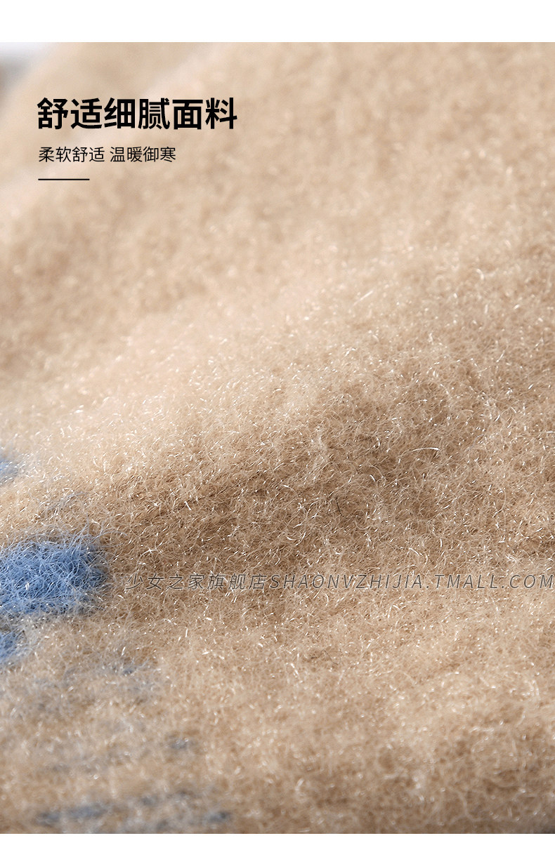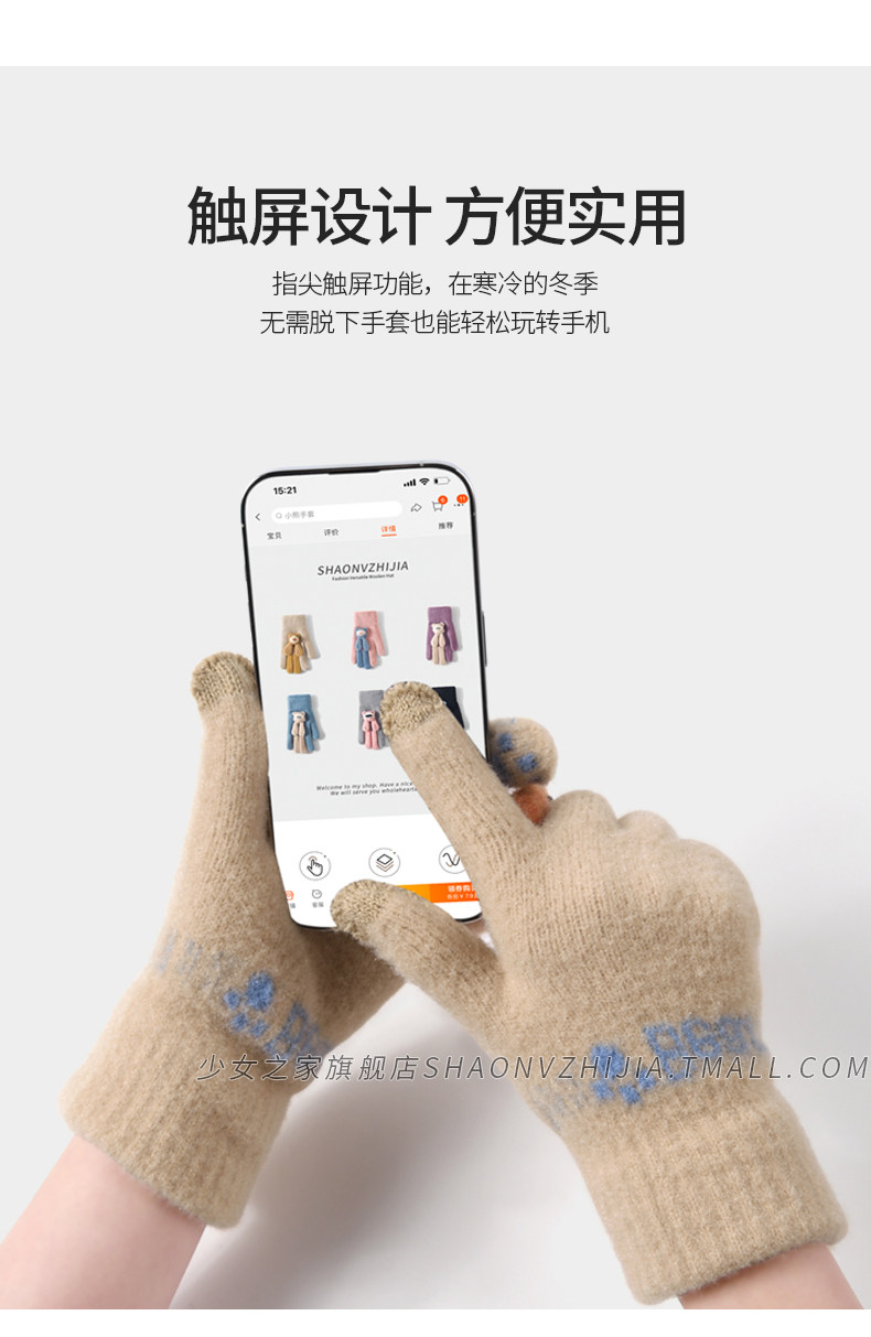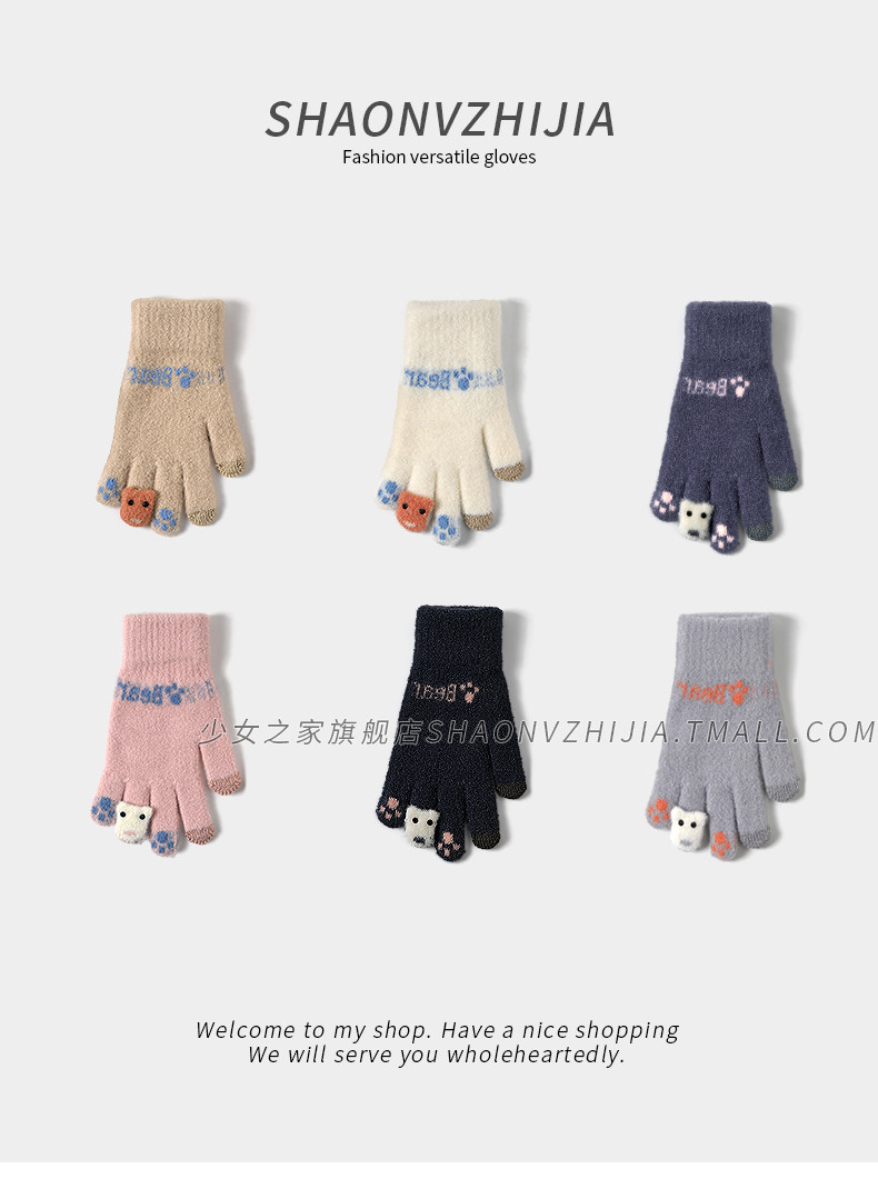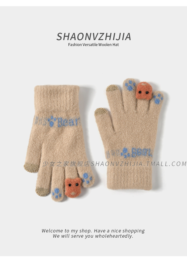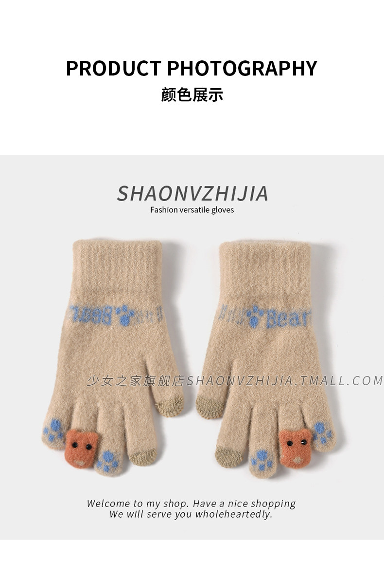 New cute knitted woolen gloves for women in winter with velvet and thickening for students to keep warm for five-finger riding and can touch the screen to prevent cold