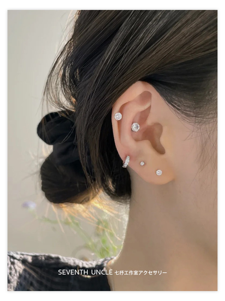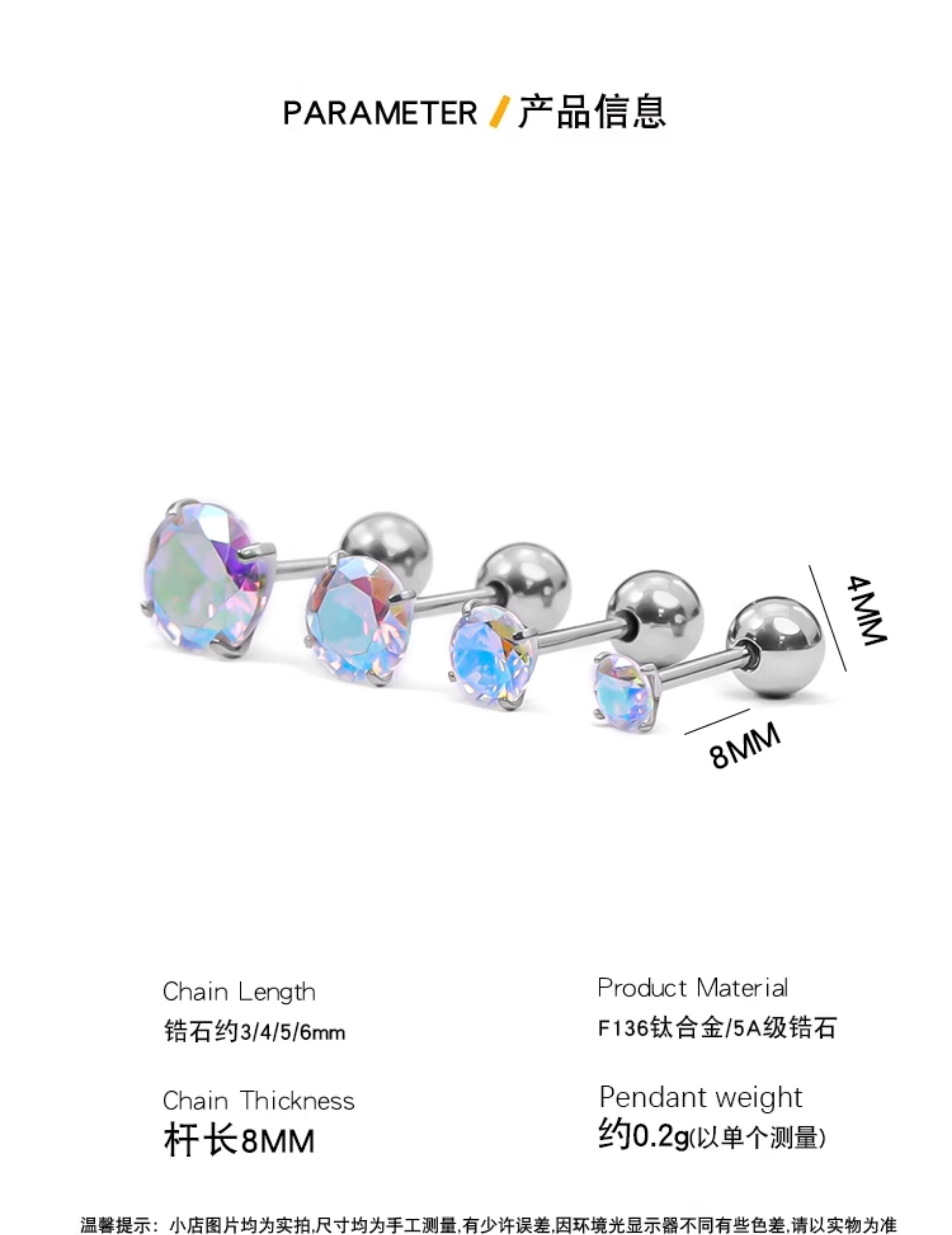 F136 titanium alloy earrings for ear piercing zircon ear bone female round ball base for sleeping without removal hypoallergenic medical titanium