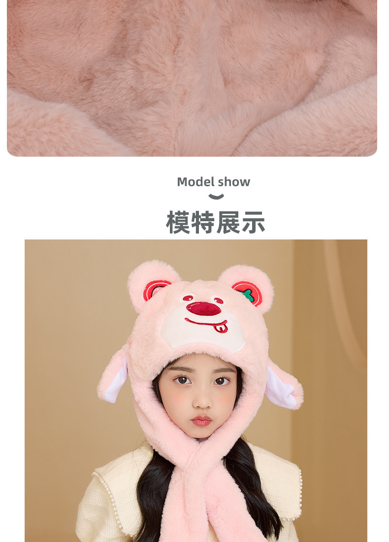 Girls winter plush hat children's hat windproof scarf two-piece set boy baby ear protection cute warm hat thick