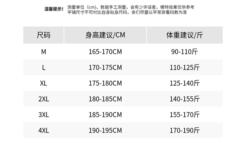 China (cm) 160-165/84-86 165-170 / 88-90 167-172 / 92-96 168-173 / 98-102 170-176 / 106-110