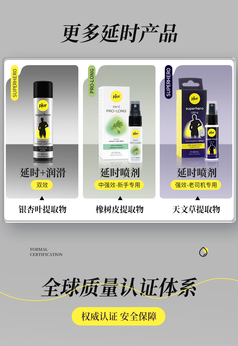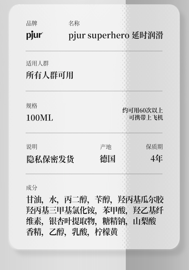 pjur德国原装进口延时润滑液延迟水溶性免洗夫妻房事润滑油剂男女