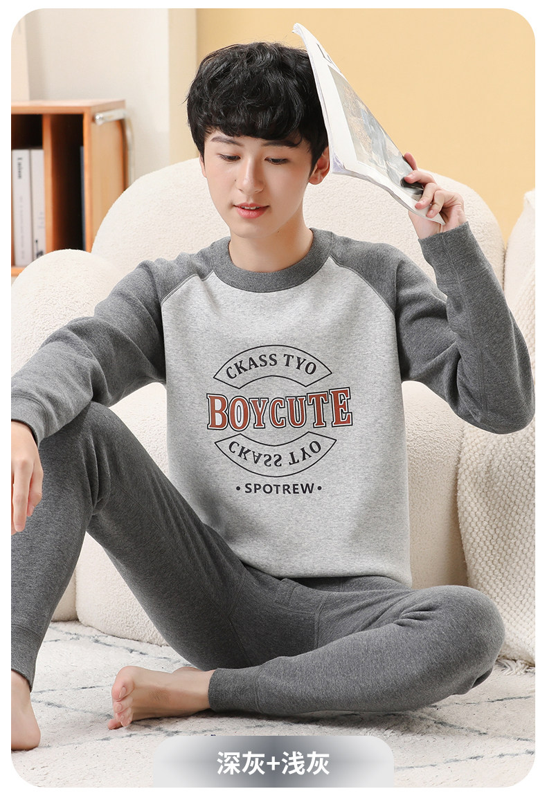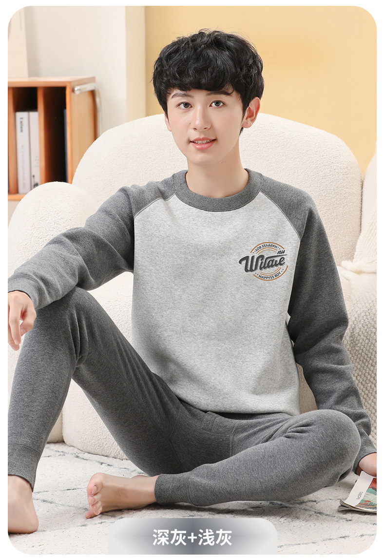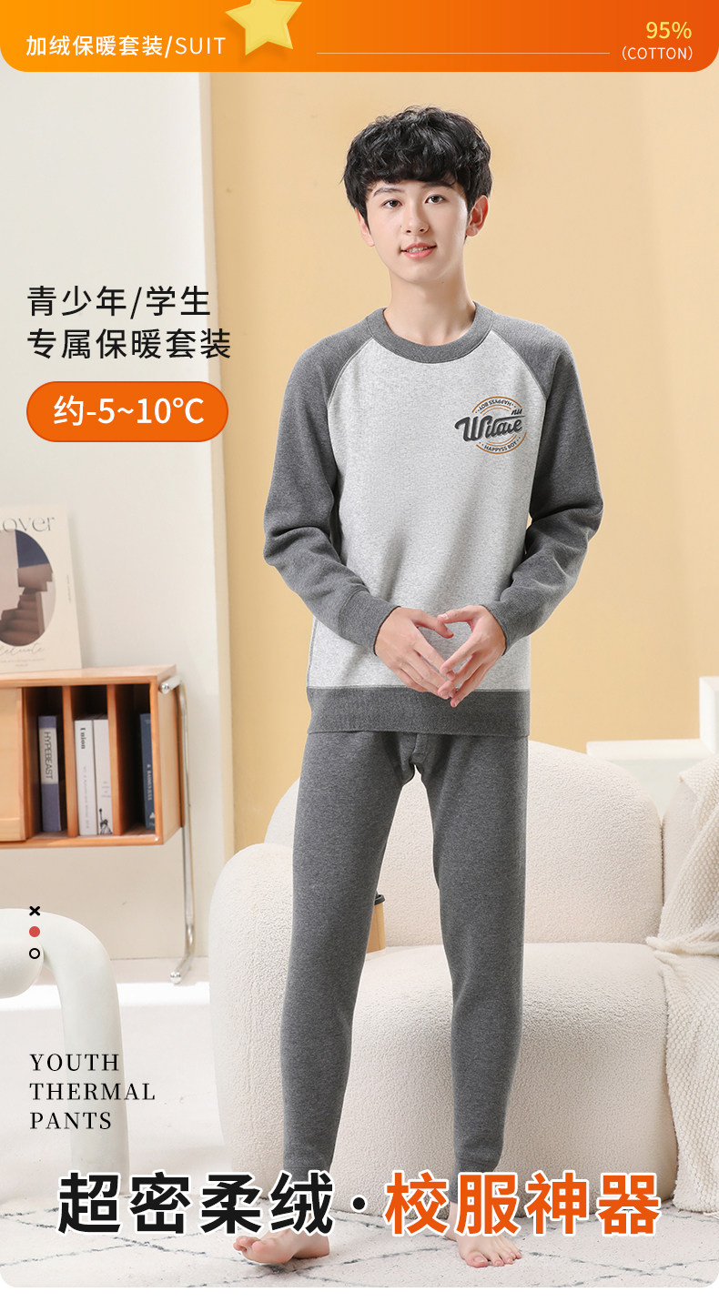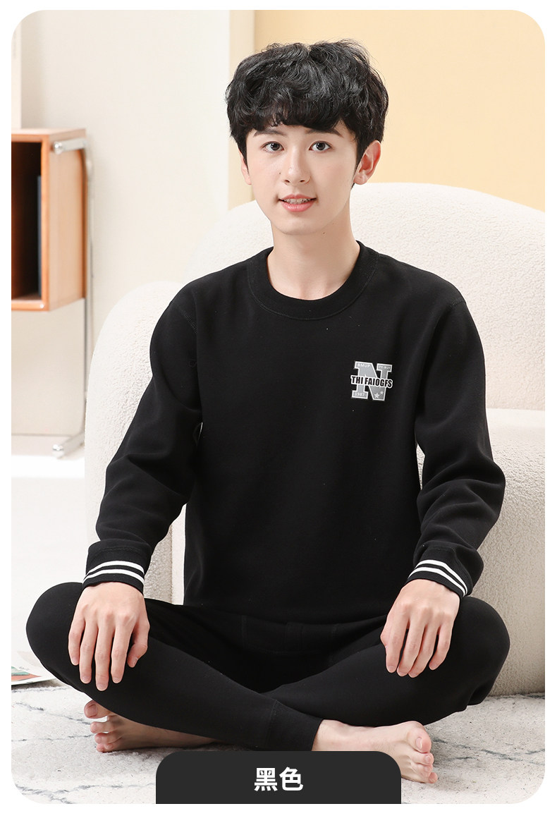 Boys' Thermal Underwear Set for Winter, Suitable for Middle and High School Students, Teenagers, and Older Children, with Fleece Lining and Thickened Autumn Clothes and Pants