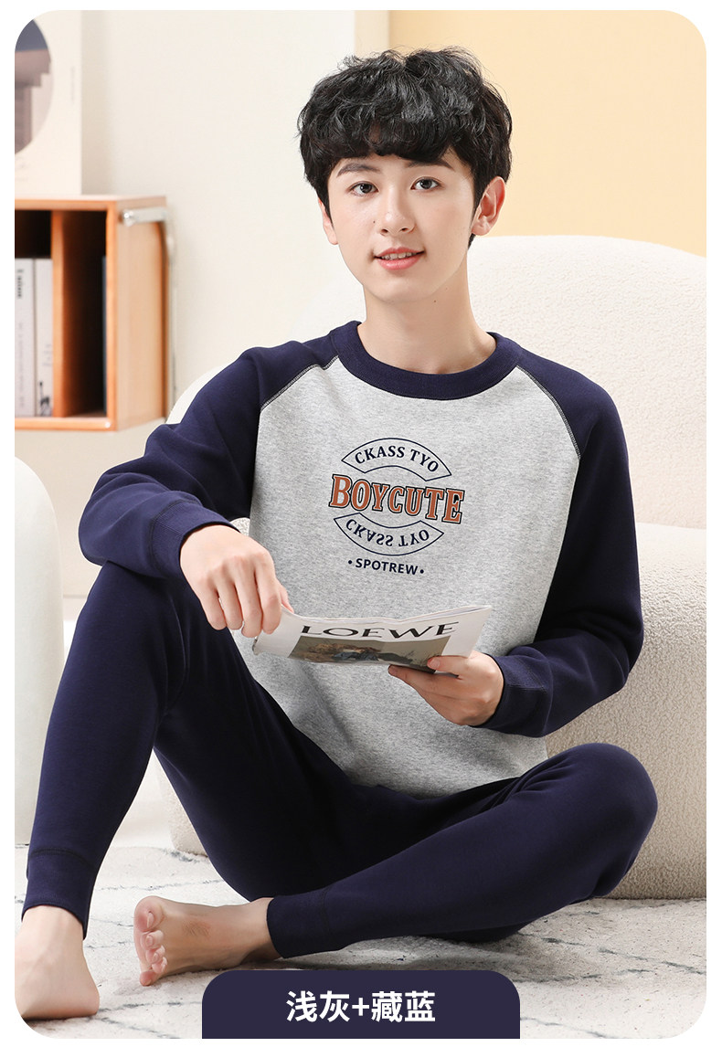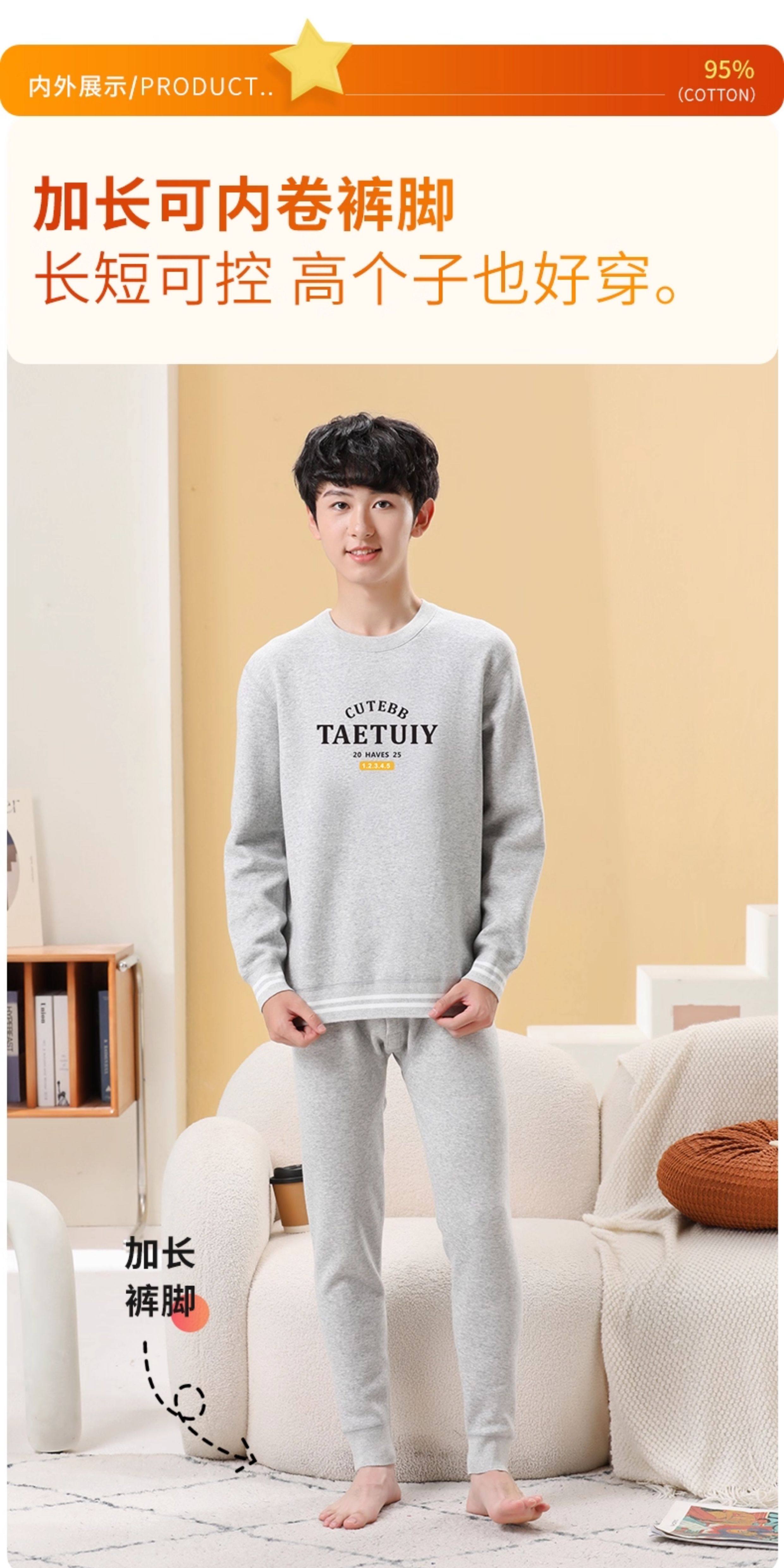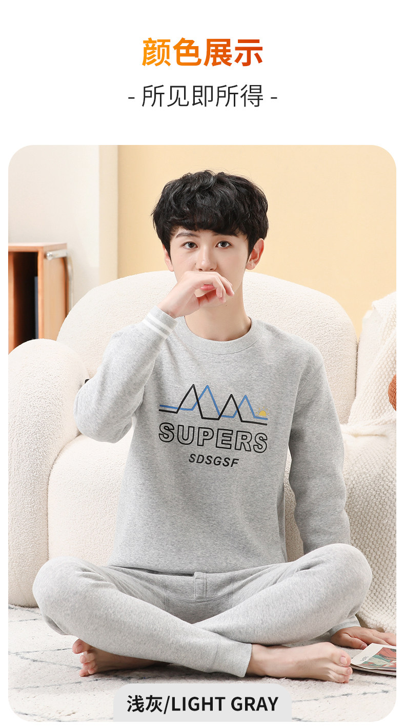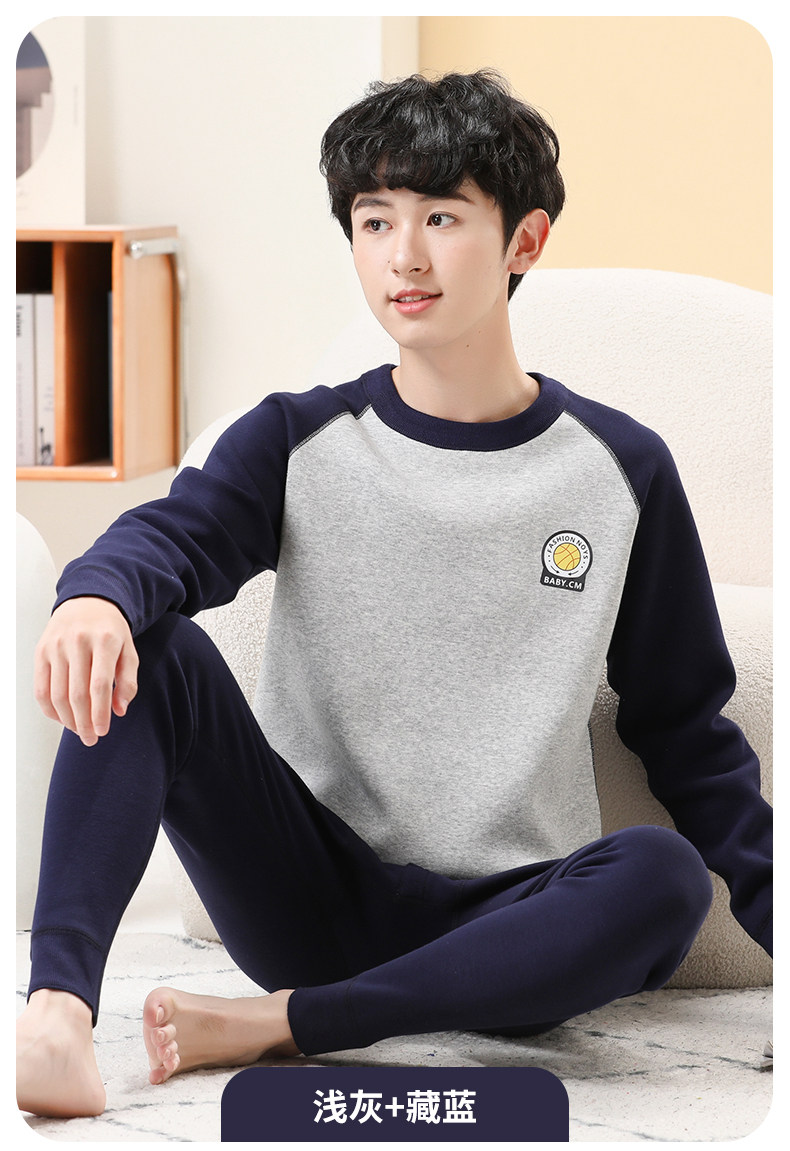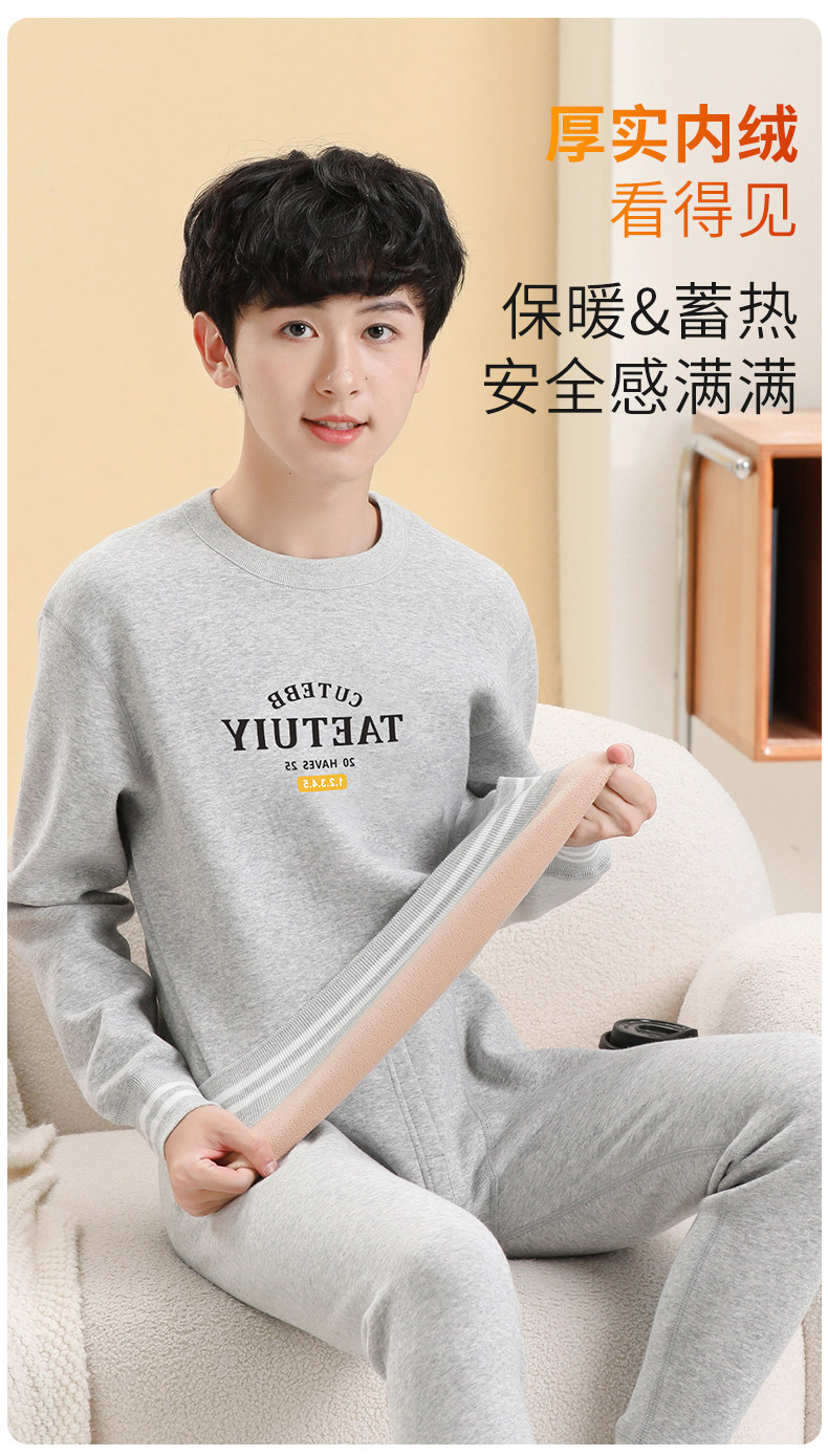 Boys' Thermal Underwear Set for Winter, Suitable for Middle and High School Students, Teenagers, and Older Children, with Fleece Lining and Thickened Autumn Clothes and Pants