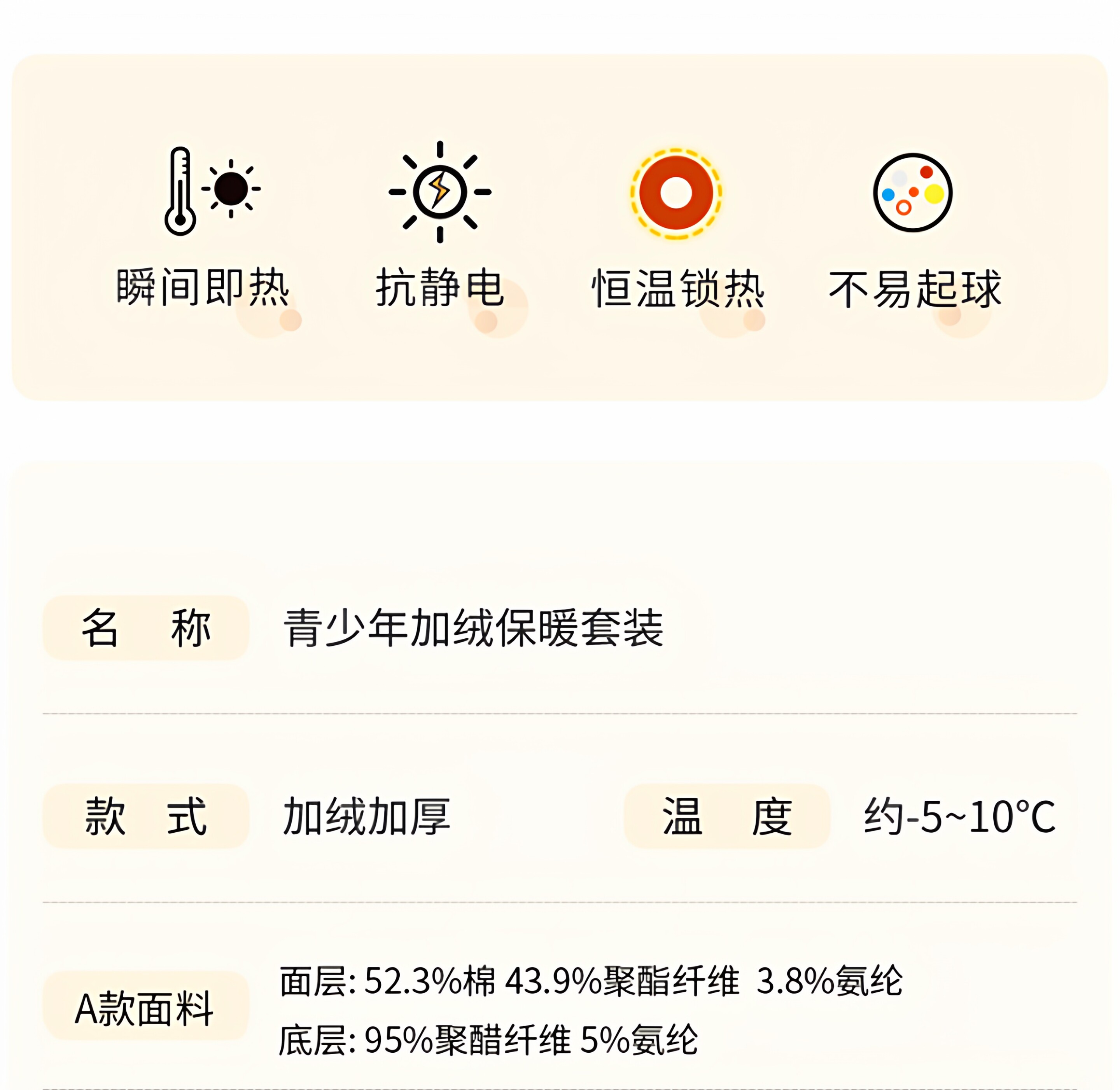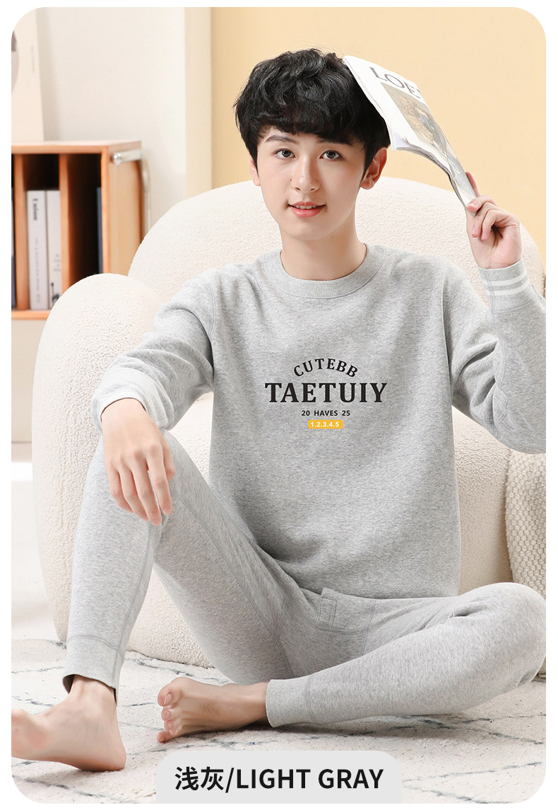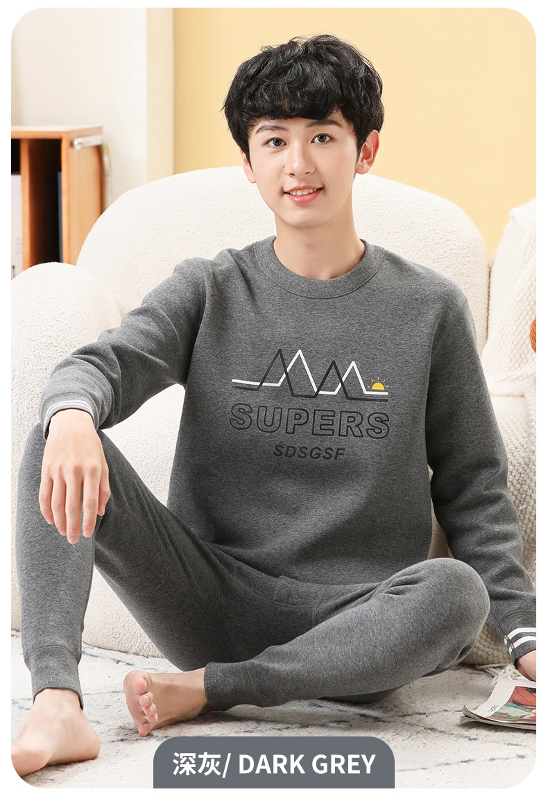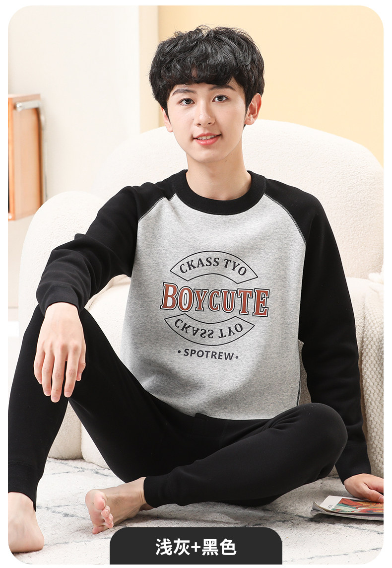 Boys' Thermal Underwear Set for Winter, Suitable for Middle and High School Students, Teenagers, and Older Children, with Fleece Lining and Thickened Autumn Clothes and Pants