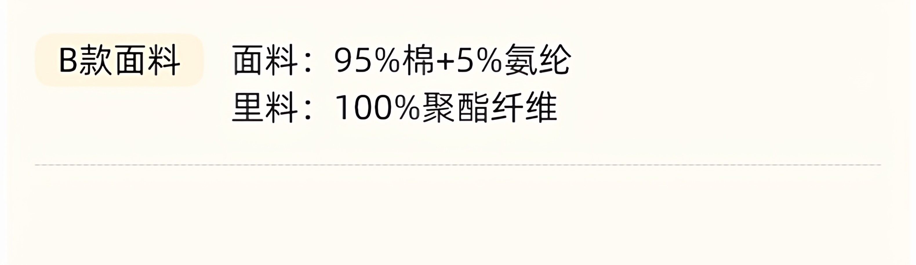 Lining Material Composition 95% Polyester Fiber, 5% Polyurethane Elastic Fiber (Spandex)