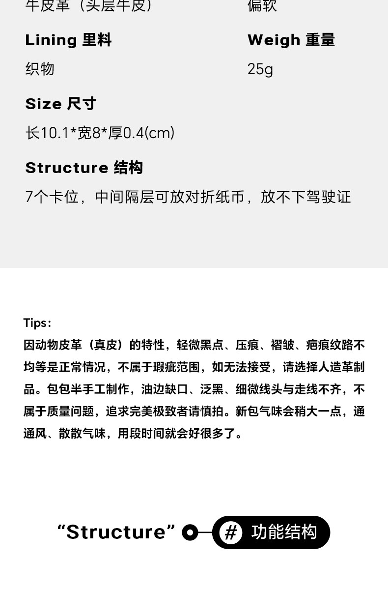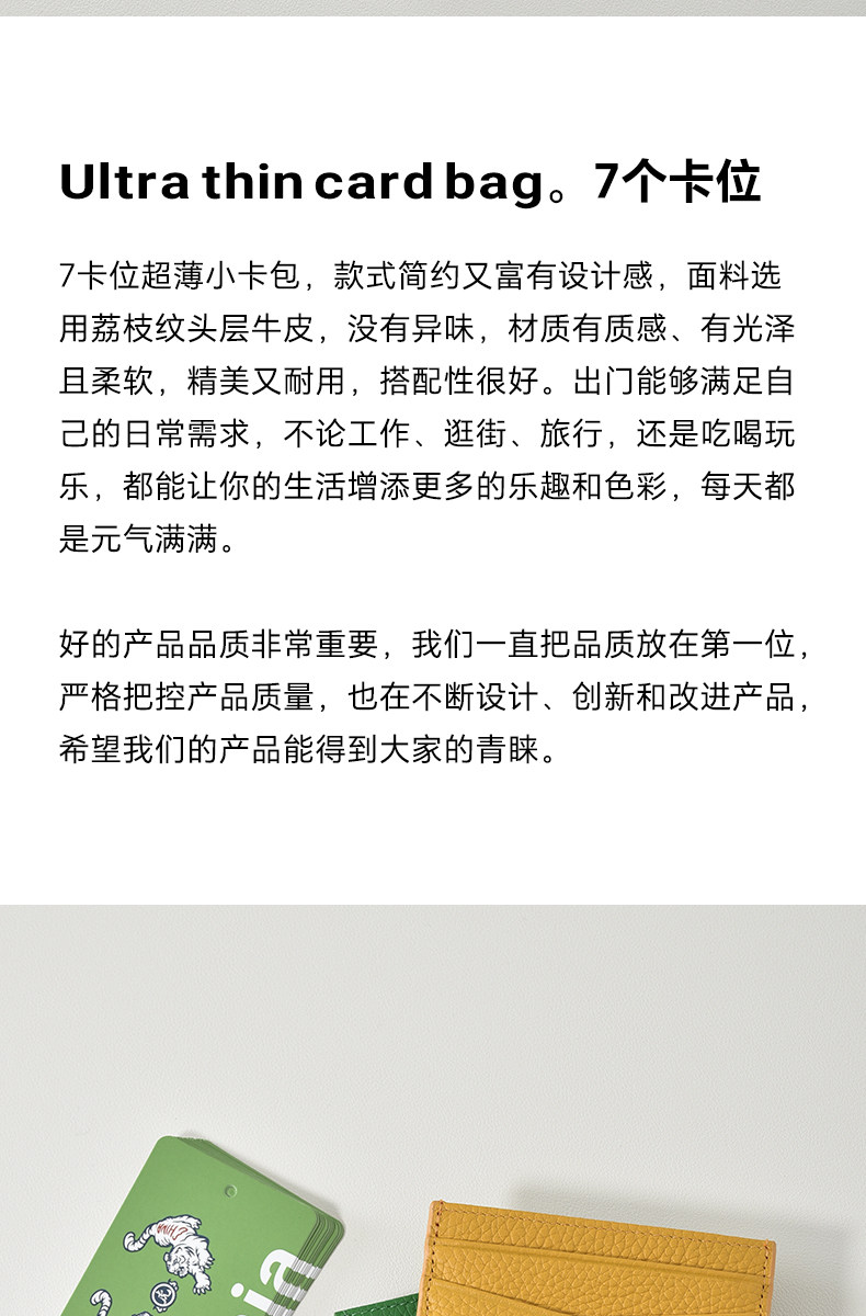lunia/路尼亚头层牛皮轻薄7卡位小卡包迷你便携小钱包真皮卡夹ins