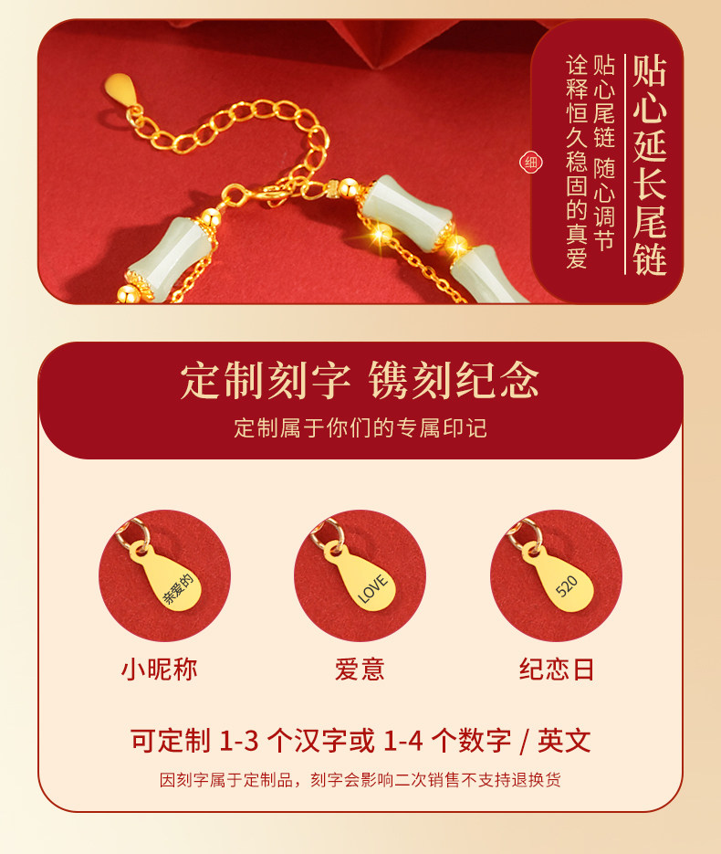 Color Classification Bamboo Jade Horse Bracelet [Brand Gift Box],Bamboo Jade Snake Bracelet [Brand Gift Box],Bamboo Jade Dragon Bracelet [Brand Gift Box],Bamboo Jade Rat Bracelet [Brand Gift Box],Bamboo Jade Ox Bracelet [Brand Gift Box],Bamboo Jade Tiger Bracelet [Brand Gift Box],Bamboo Jade Rabbit Bracelet [Brand Gift Box],Bamboo Jade Sheep Bracelet [Brand Gift Box],Bamboo Jade Monkey Bracelet [Brand Gift Box],Bamboo Jade Chicken Bracelet [Brand Gift Box],Bamboo Jade Dog Bracelet [Brand Gift Box],Bamboo Jade Pig Bracelet [Brand Gift Box],Contact Customer Service to Note the Zodiac Sign [Year of the Snake Wealth Gift Box],Contact Customer Service to Note the Zodiac Sign [Retro Gift Box],Contact Customer Service to Note the Zodiac Sign [Romantic Rose Gift Box],Bamboo Zodiac Set [Contact Customer Service to Note Zodiac] Year of the Snake Wealth Gift Box,Bamboo Zodiac Set [Contact Customer Service to Note Zodiac] Brand Gift Box,Bamboo Joint Zodiac Set [Contact Customer Service to Specify Zodiac] - Vintage Gift Box,Bamboo Joint Zodiac Set [Contact Customer Service to Specify Zodiac] Romantic Rose Gift Box,"Stone of Warmth, a Millennium of Beauty" - Bamboo Bliss Edition,Peace and Joy Gift Box "Hetian Jade" Contact Customer Service to Note the Zodiac Sign,Hetian Jade Bamboo Jade Horse Bracelet [Brand Gift Box],Hetian Jade Bamboo Snake Bracelet [Brand Gift Box],Hetian Jade Bamboo Joint Jade Dragon Bracelet [Brand Gift Box],Hetian Jade Bamboo Rat Bracelet [Brand Gift Box],Hetian Jade Bamboo Jade Ox Bracelet [Brand Gift Box],Hetian Jade Bamboo Jade Tiger Bracelet [Brand Gift Box],Hetian Jade Bamboo Jade Rabbit Bracelet [Brand Gift Box],Hetian Jade Bamboo Jade Sheep Bracelet [Brand Gift Box],Hetian Jade Bamboo Jade Monkey Bracelet [Brand Gift Box],Hetian Jade Bamboo Jade Chicken Bracelet [Brand Gift Box],Hetian Jade Bamboo Joint Jade Pig Bracelet [Brand Gift Box],Hetian Jade Bamboo Jade Dog Bracelet [Brand Gift Box],Rose Gift Box - "Hetian Jade Edition" - Contact Customer Service to Specify Zodiac Year,Retro Gift Box "Hetian Jade Edition" - Contact Customer Service to Specify Zodiac Year,Romantic Rose Gift Box "Hetian Jade Edition" [Contact Customer Service to Specify Zodiac Year],Preserved Flower Gift Box "Hetian Jade Style" Contact Customer Service to Note the Zodiac Sign,"Hotan Jade" Set of Peace and Joy Gift Box - Contact Customer Service to Note Zodiac,"Hotan Jade" Set Brand Gift Box - Contact Customer Service to Note Zodiac,"Hotan Jade" Rose Gift Box Set - Contact Customer Service to Note Zodiac,"Hotan Jade" Set Retro Gift Box - Contact Customer Service to Note Zodiac,"Hotan Jade" Set Romantic Rose Gift Box [Contact Customer Service to Note the Zodiac Sign],"Hotan Jade Style" Set of Preserved Flower Gift Box - Contact Customer Service to Note Zodiac,"Diamonds Are Forever, One Diamond Will Be Passed down Forever" Diamond Model,"Diamond Style" Bamboo Jade Horse Bracelet [Romantic Rose Gift Box],"Diamond Style" Bamboo Jade Snake Bracelet [Romantic Rose Gift Box],"Diamond Style" Bamboo Jade Dragon Bracelet [Romantic Rose Gift Box],"Diamond Style" Bamboo Jade Rat Bracelet [Romantic Rose Gift Box],"Diamond Style" Bamboo Jade Ox Bracelet [Romantic Rose Gift Box],"Diamond Style" Bamboo Jade Tiger Bracelet [Romantic Rose Gift Box],"Diamond Style" Bamboo Jade Rabbit Bracelet [Romantic Rose Gift Box],"Diamond Style" Bamboo Jade Sheep Bracelet [Romantic Rose Gift Box],"Diamond Style" Bamboo Jade Monkey Bracelet [Romantic Rose Gift Box],"Diamond Style" Bamboo Jade Chicken Bracelet [Romantic Rose Gift Box],"Diamond Style" Bamboo Jade Dog Bracelet [Romantic Rose Gift Box],"Diamond Style" Bamboo Jade Pig Bracelet [Romantic Rose Gift Box],"Diamond Style" Bracelet + Necklace Set [Contact Customer Service to Note Zodiac] [Romantic Rose Gift Box],"Nafu Jade Rabbit" Hetian Jade Bracelet [Brand Gift Box + Certificate]