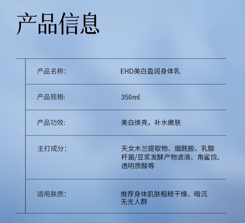 Brand authorized EHD whitening body lotion 350g moisturizing