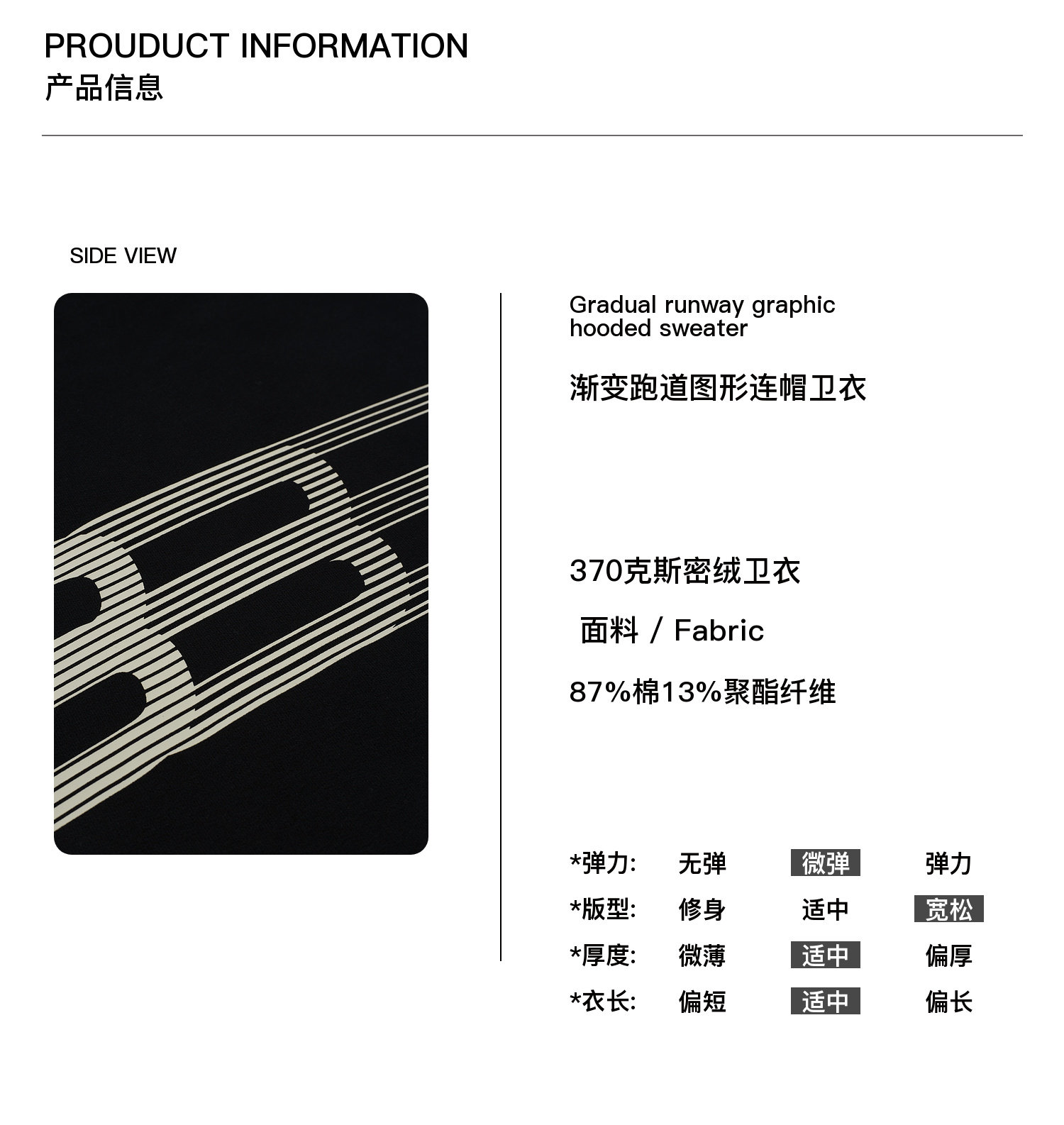 FPA渐变跑道图形连帽卫衣 国潮牌春季休闲宽松重磅美式帽衫外套男