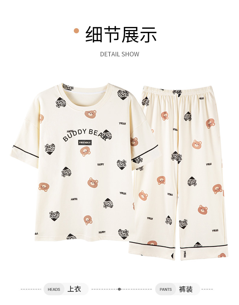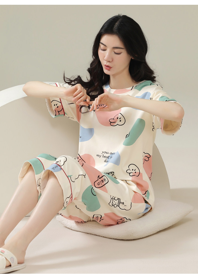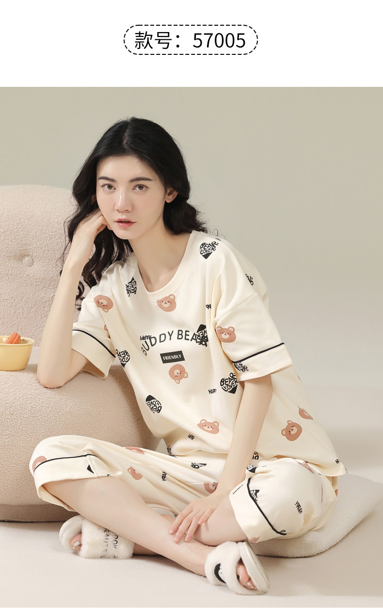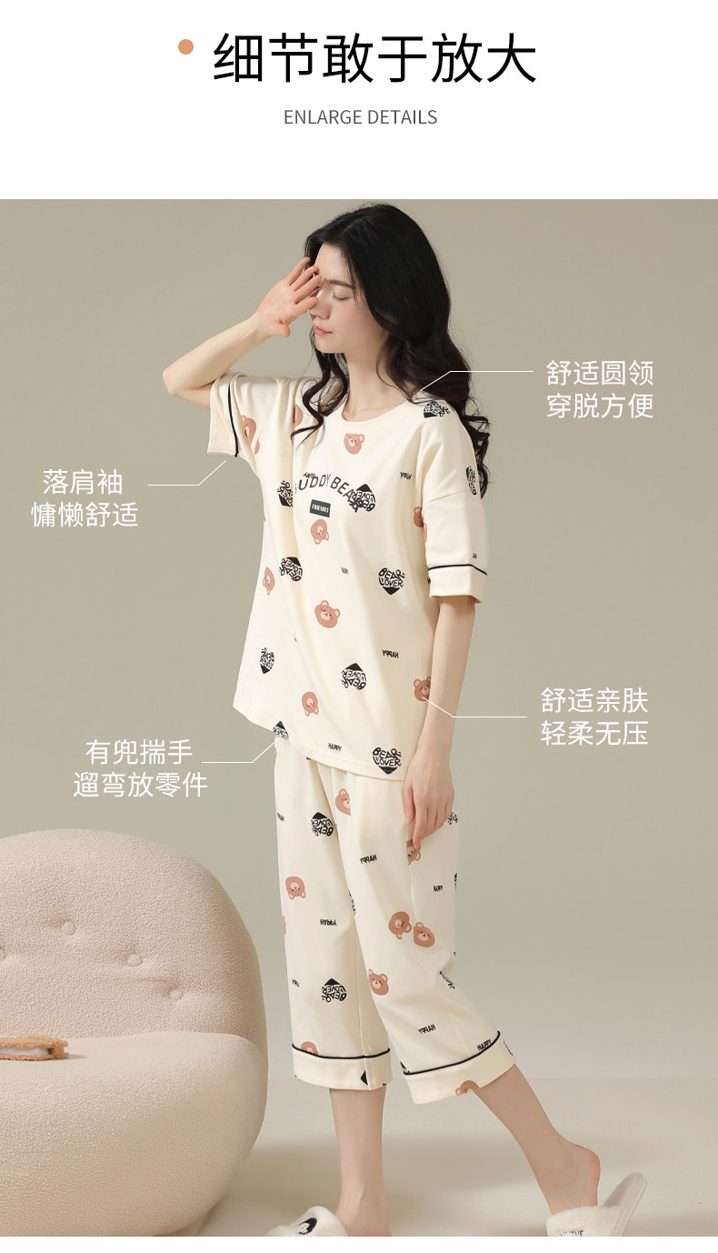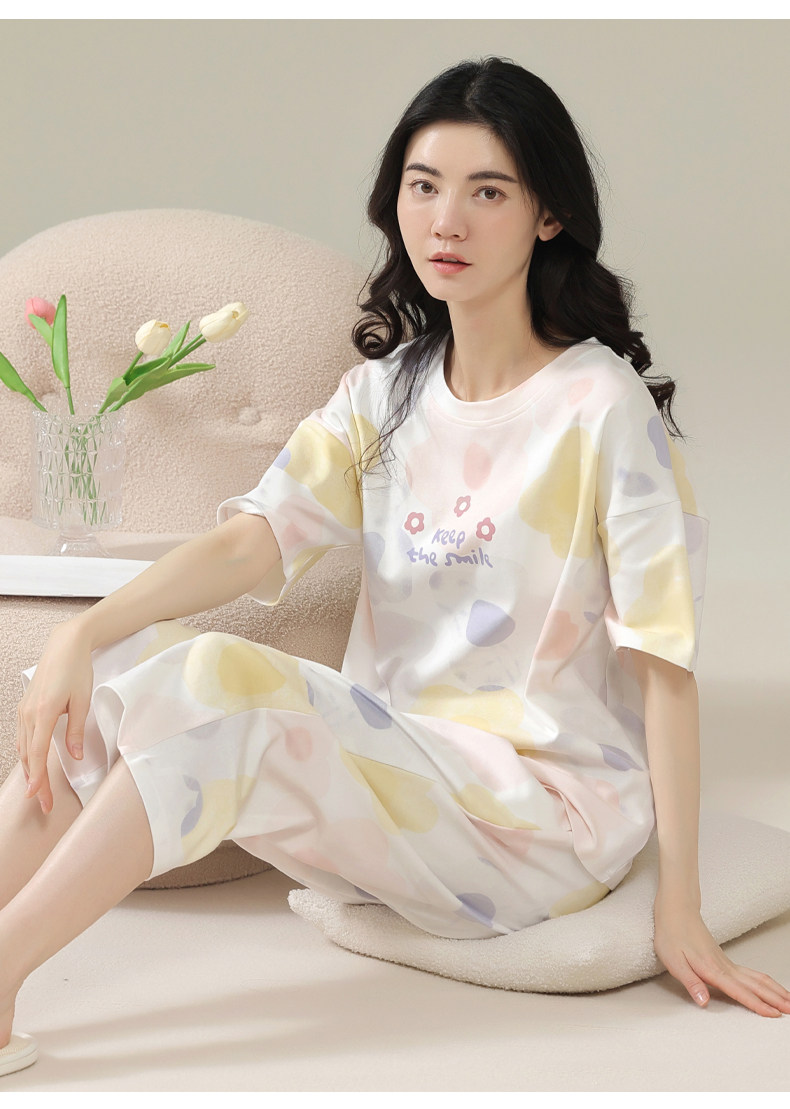 Pure cotton pajamas for women, summer short-sleeved cropped pants, high-end thin casual round neck, new high-end home wear set