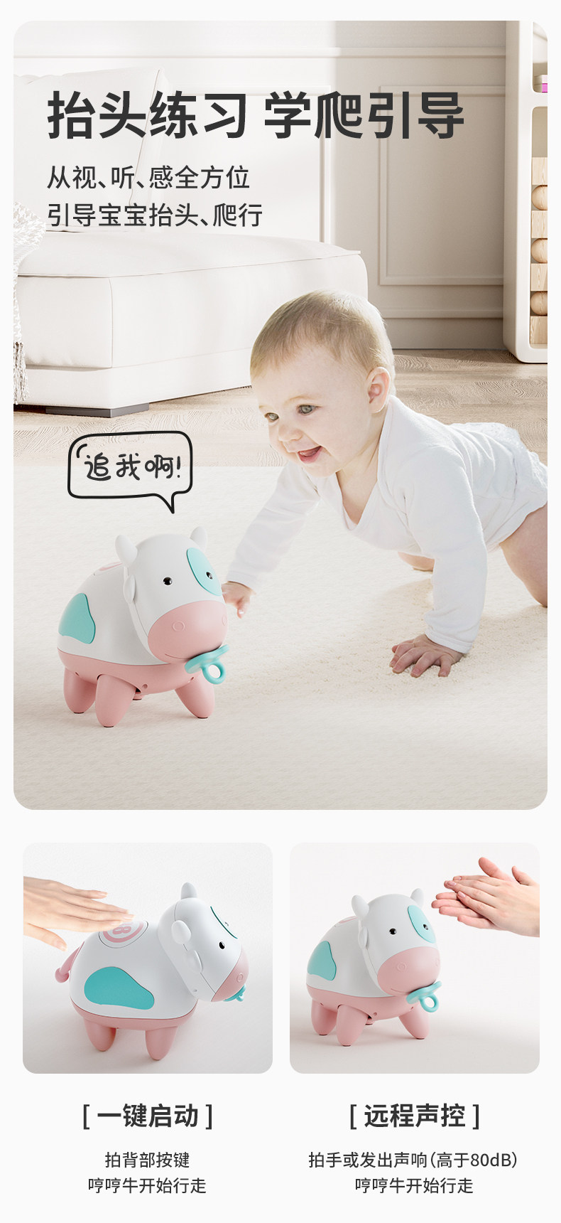 Yudingbao Hum Hum Cow 0 to 1 Year Old Infant Baby Gift Practice Crawling Small Month-Old Educational Early Learning Toy