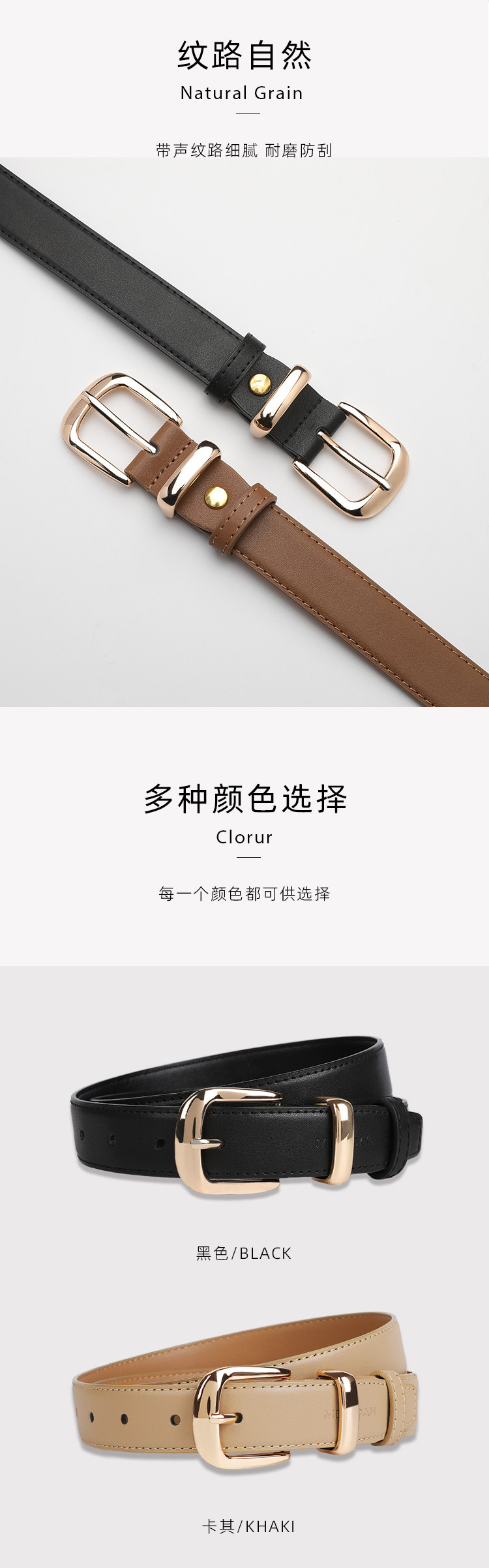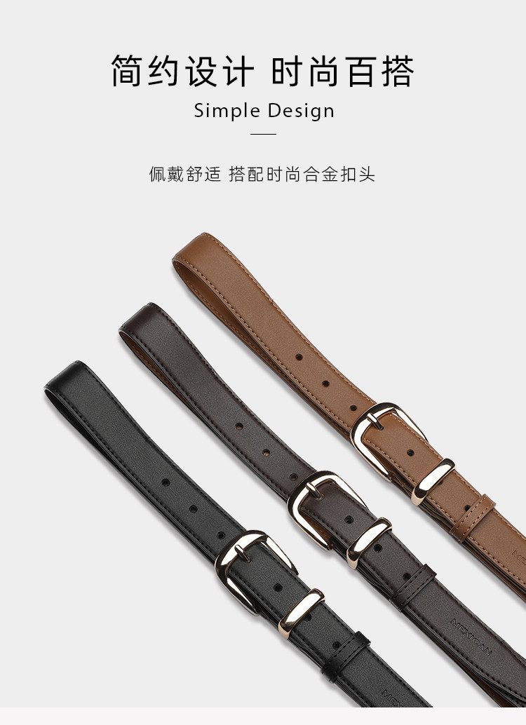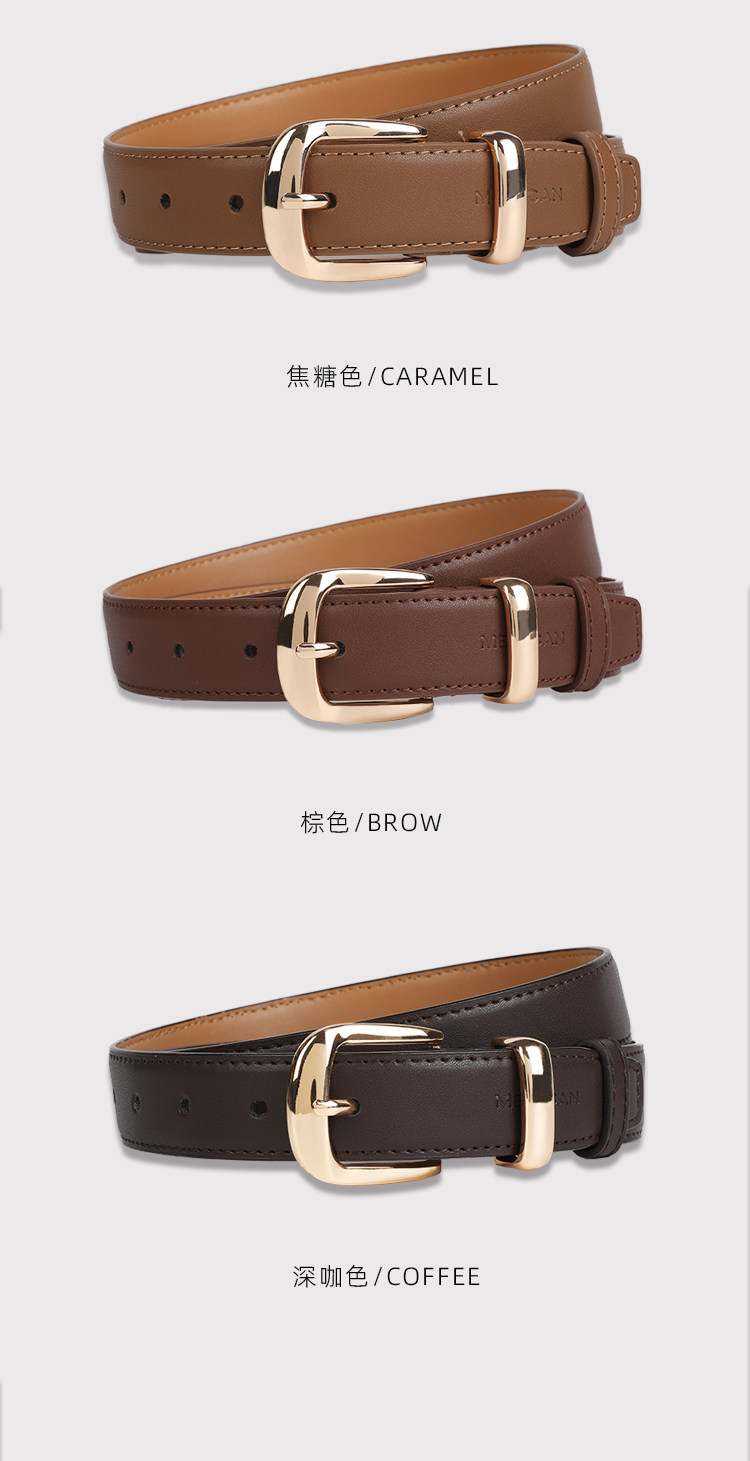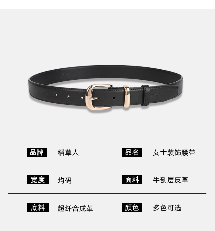 稻草人皮带女士新款休闲装饰针扣真皮腰带韩版简约百搭高级感裤带