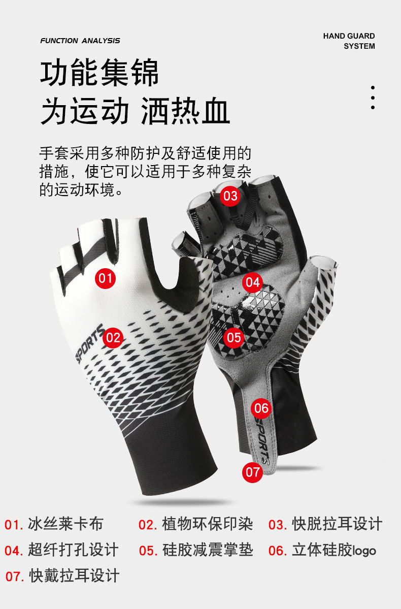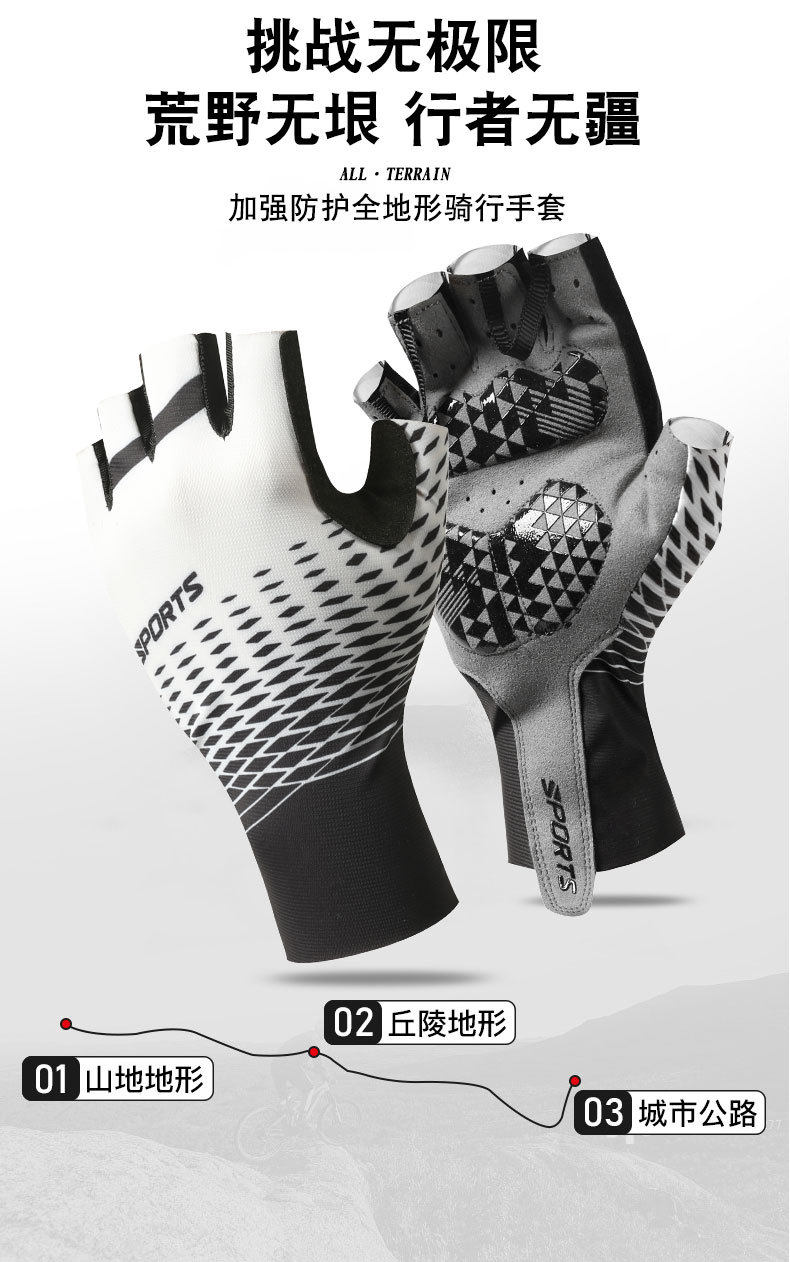 夏季薄款冰丝防晒骑行半指手套男女公路自行车山地车专用避震防滑