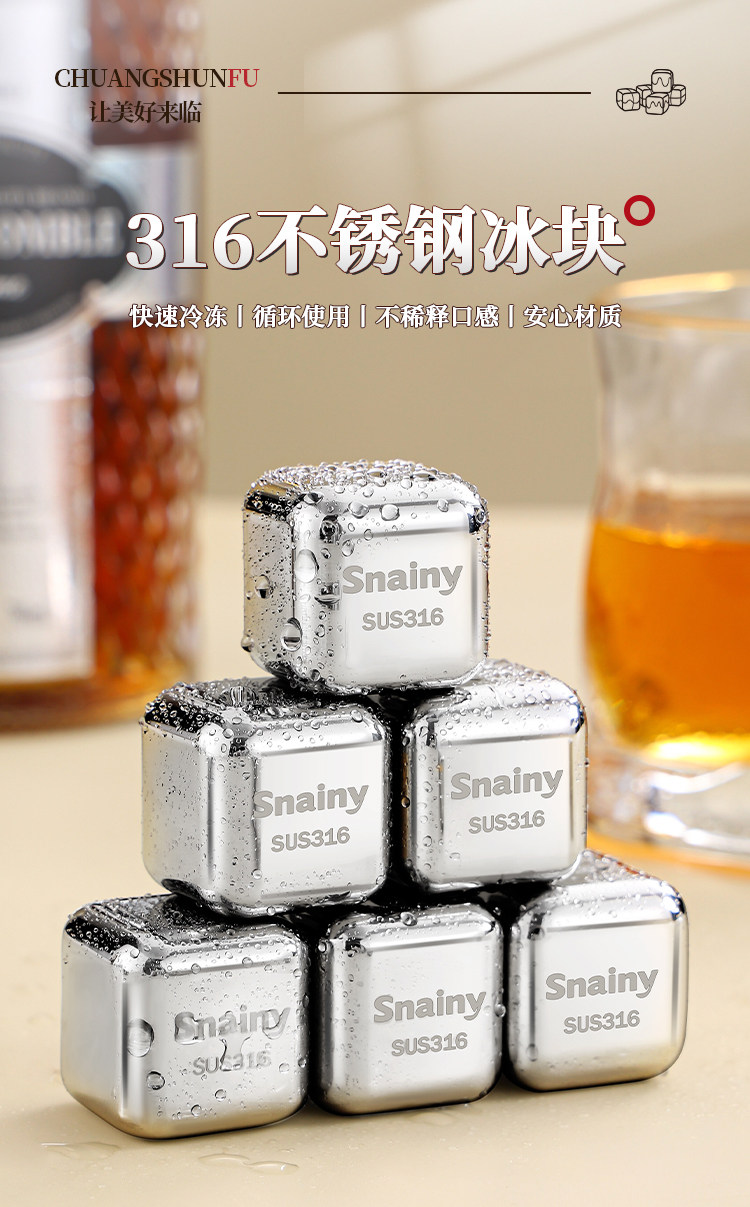 316 stainless steel ice cubes 304 food grade ice tartar foreign wine whiskey ice balls recyclable iron metal frozen ice particles