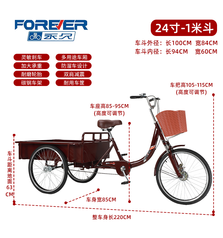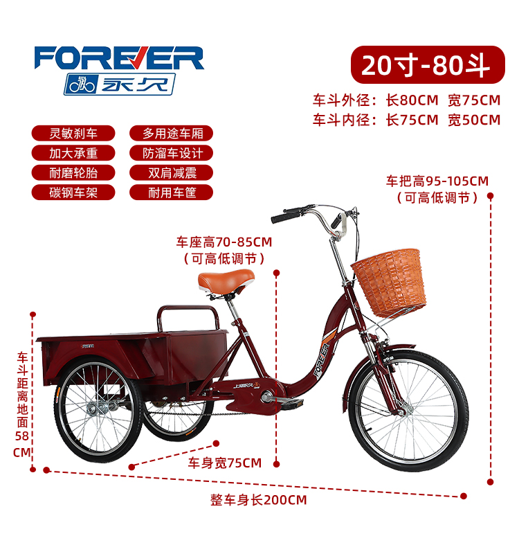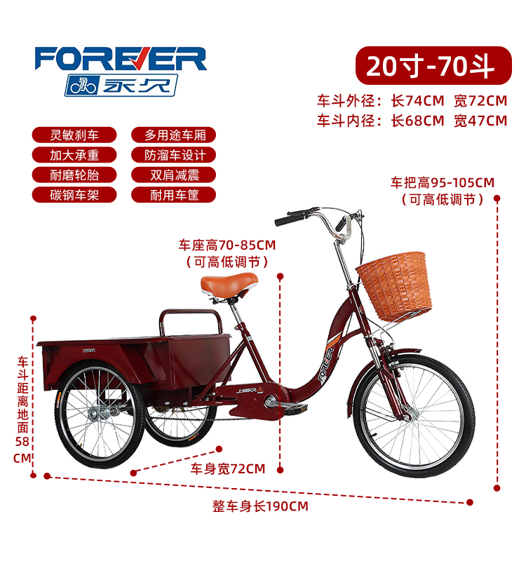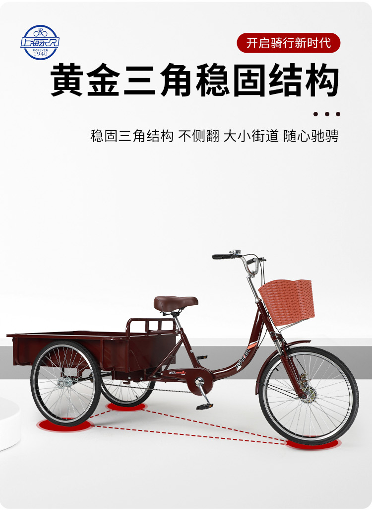 Permanent Adult Tricycle for the Elderly, Pedal-Powered Bicycle, Human-Powered Vehicle for Transportation, Lightweight Adult Tricycle for Carrying Goods
