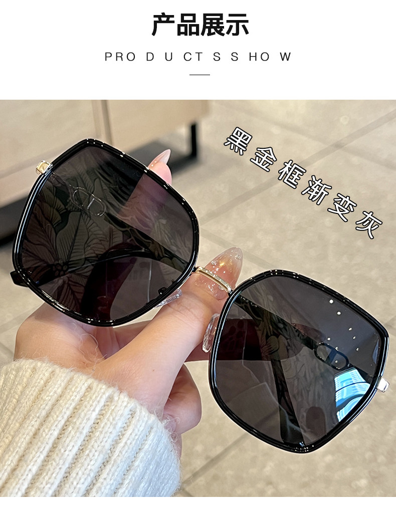 Sort by color Black and gray film with black gold frame, the same style as Tang Yan (high-definition polarized), free full set of packaging,Beige gold frame gradient gray (high-definition polarized + UV protection) comes with a full set of packaging,Green silver frame gradient gray (high-definition polarized + UV protection) comes with a full set of packaging,Tea gold frame with gray under it (high-definition polarized light + UV protection) comes with a full set of packaging,Pink gold frame, gray on top and pink on bottom (high-definition polarized light + UV protection), complete package included,Black and gray film with black gold frame, with myopia of 50-600 degrees (please leave a message for the degree when ordering) and get a full set of packaging,Beige gold frame with gradient gray, with myopia of 50-600 degrees (please leave a message for the degree when ordering) and get a full set of packaging,Green silver frame gradient gray, with myopia of 50-600 degrees (please leave a message for the degree when ordering) and get a full set of packaging,Tea gold frame with gray on top and tea on the bottom. Comes with myopia of 50-600 degrees (please leave a message for the degree when ordering) and get a full set of packaging.,Pink gold frame, gray on top and pink on the bottom, with myopia of 50-600 degrees (please leave a message for the degree when ordering) and get a full set of packaging,Equipped with 600 degrees or astigmatism and myopia of 50-200 degrees (leave a message with the degree + frame color) and get a full set of packaging