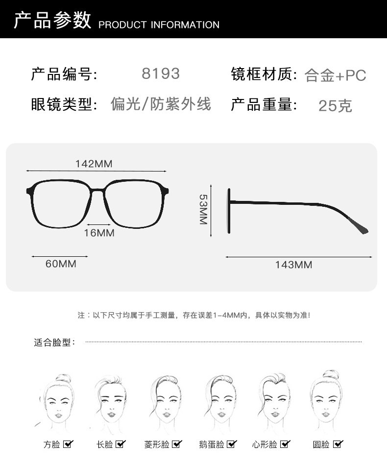 Suitable for face shape Round face,Long face,Square face,Oval face