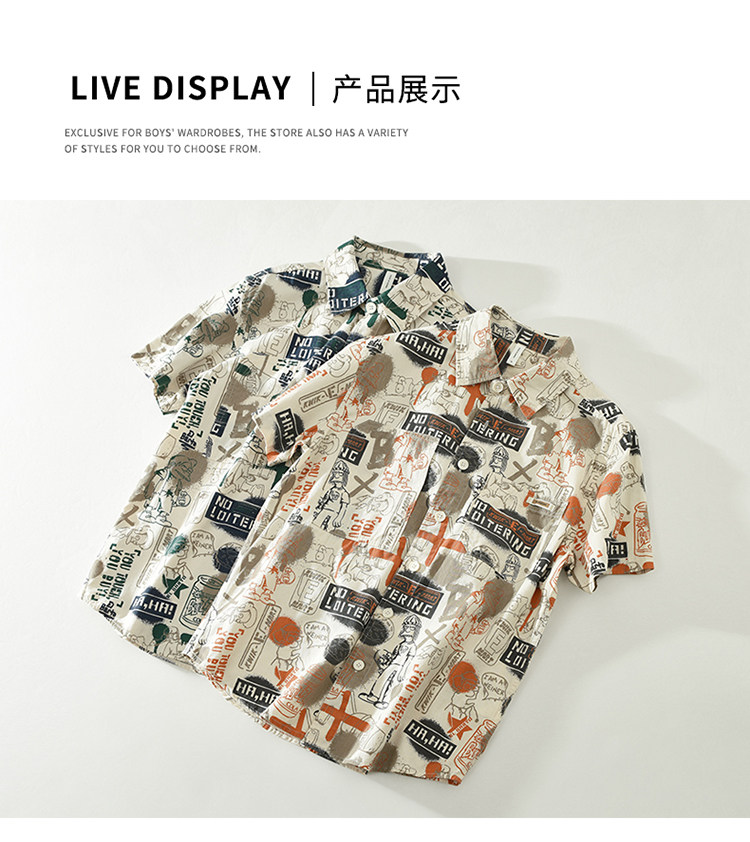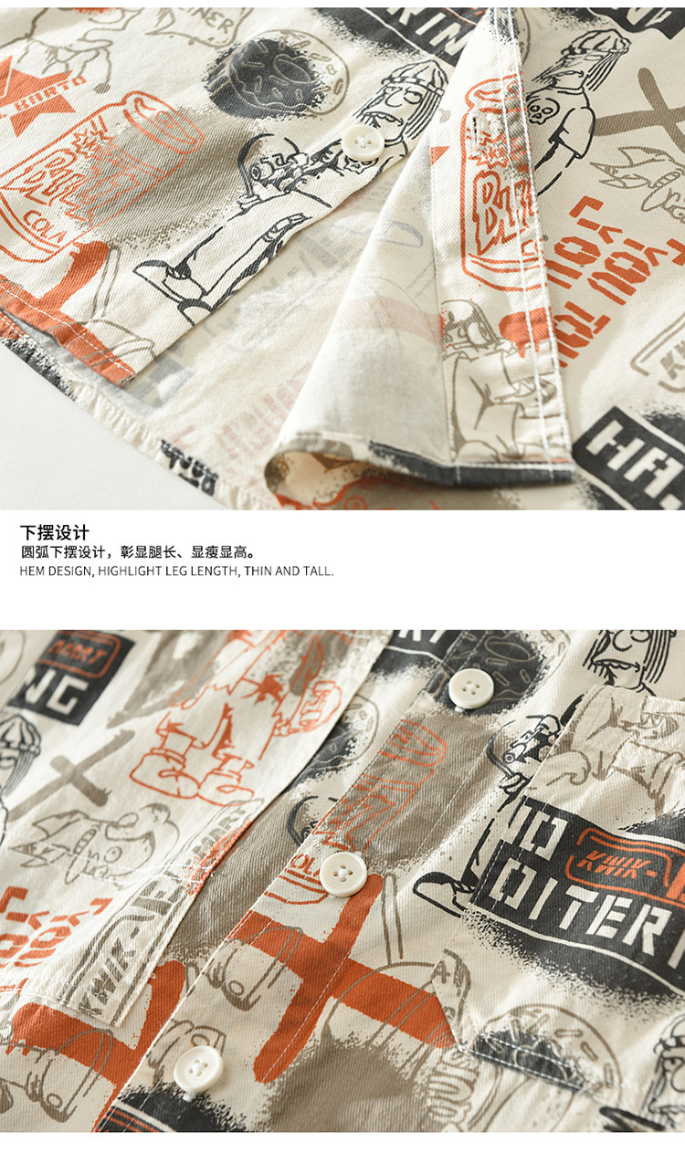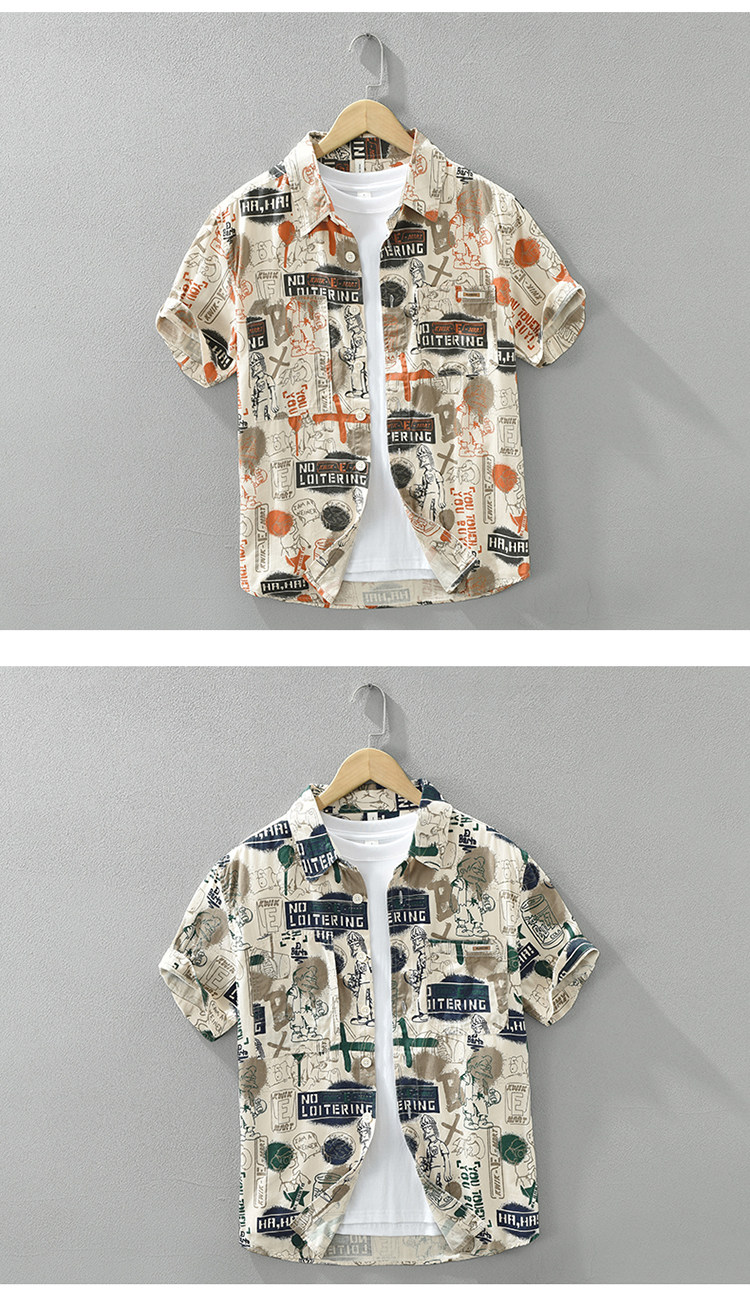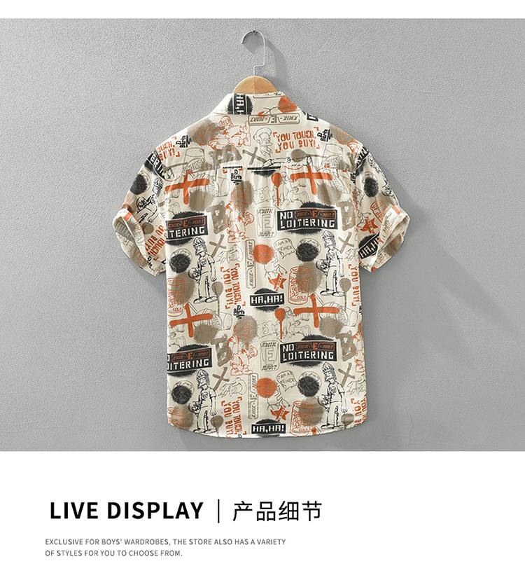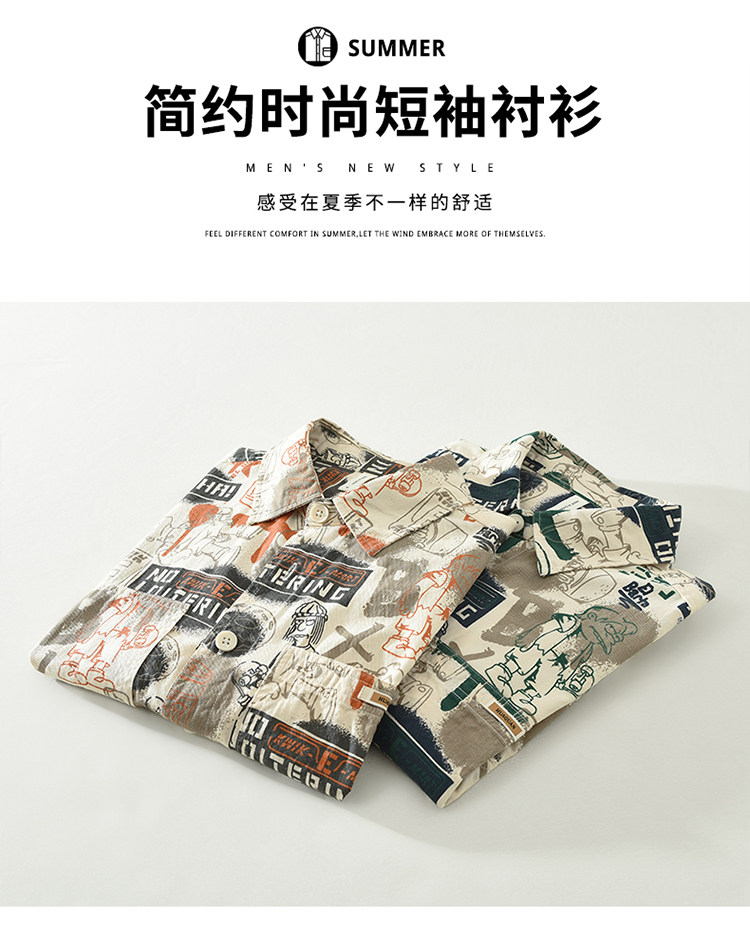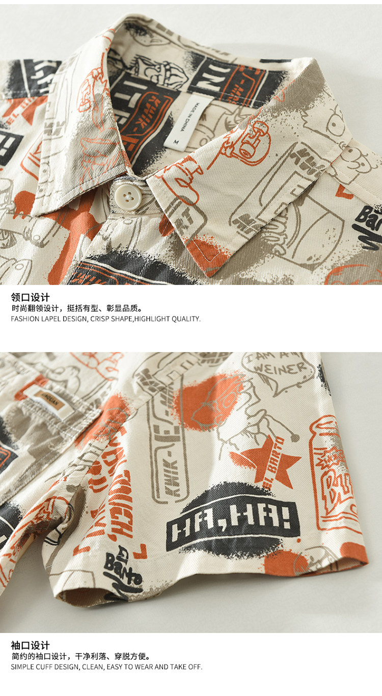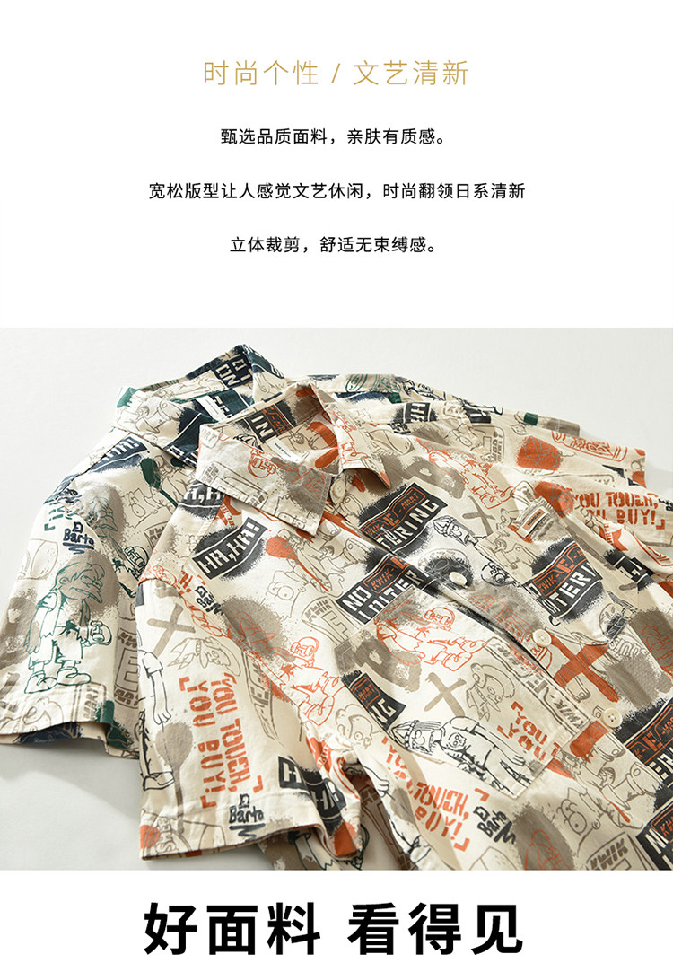 Summer Japanese personalized printed short-sleeved shirt for men, fashionable and versatile, casual, artistic, beach loose cotton top