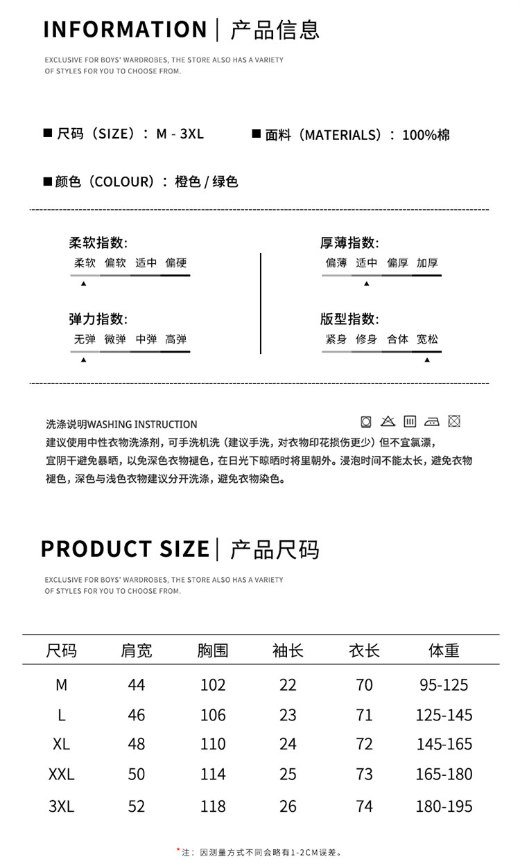 China (cm) 165 / 88-90 170 / 96-98 175 / 108-110 180 / 118-122 185 / 126-130