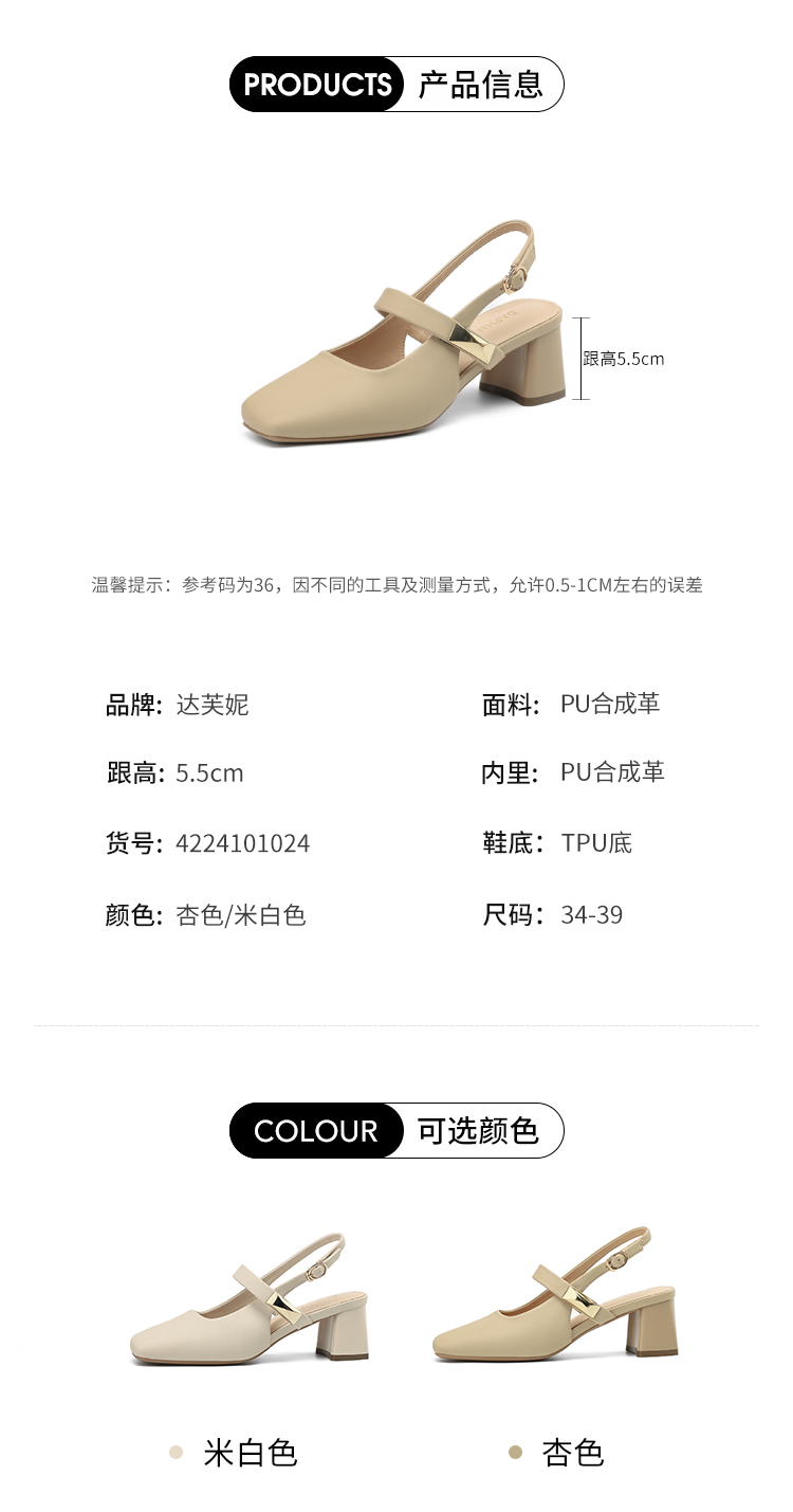 Daphne French-Style Closed-Toe Sandals for Women 2025 New Summer High Heels Chunky Heel Mary Jane Shoes to Match Skirts Single Shoes