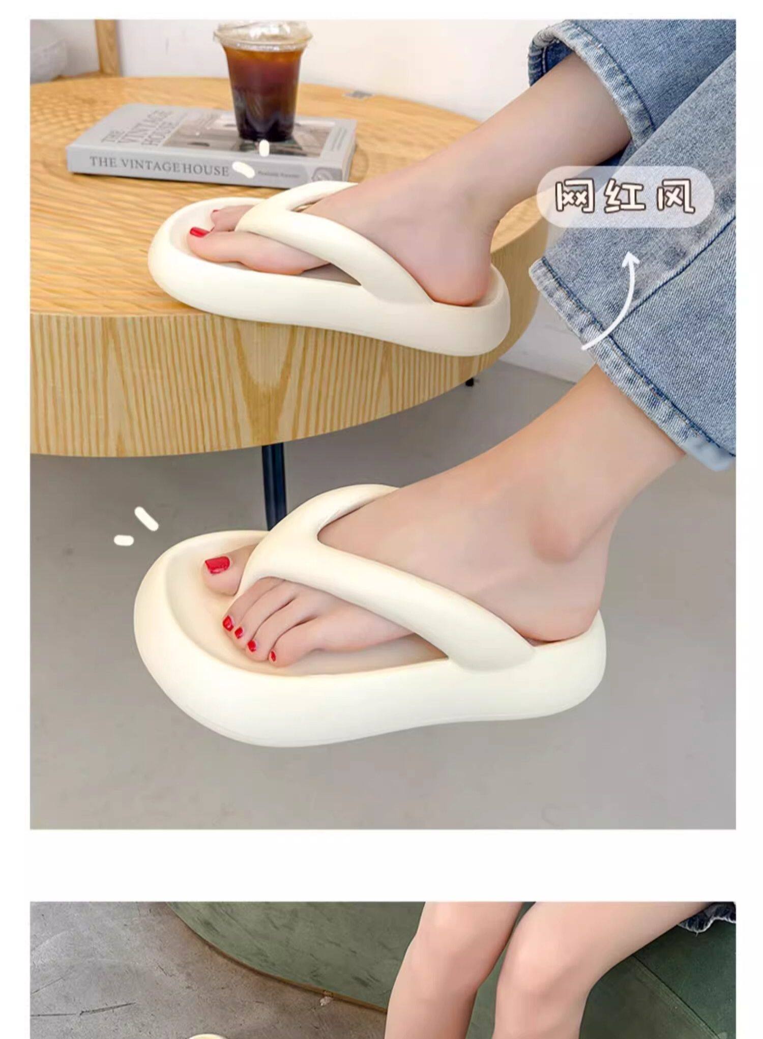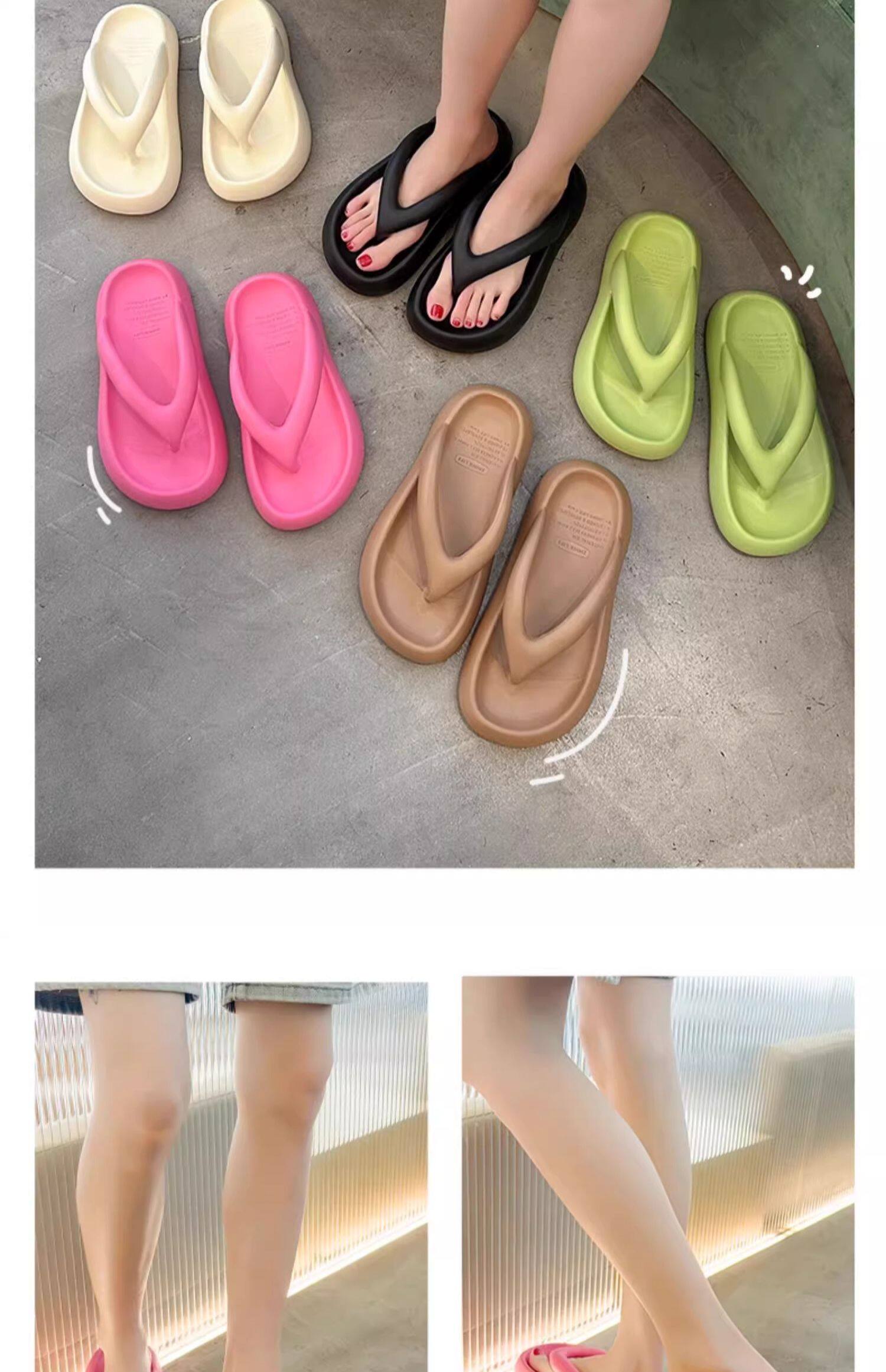 Flip-flops for women to wear outside in summer, thick soles to increase the height, 2025 new anti-slip, smelly, seaside, beach, bathing, stepping on shit