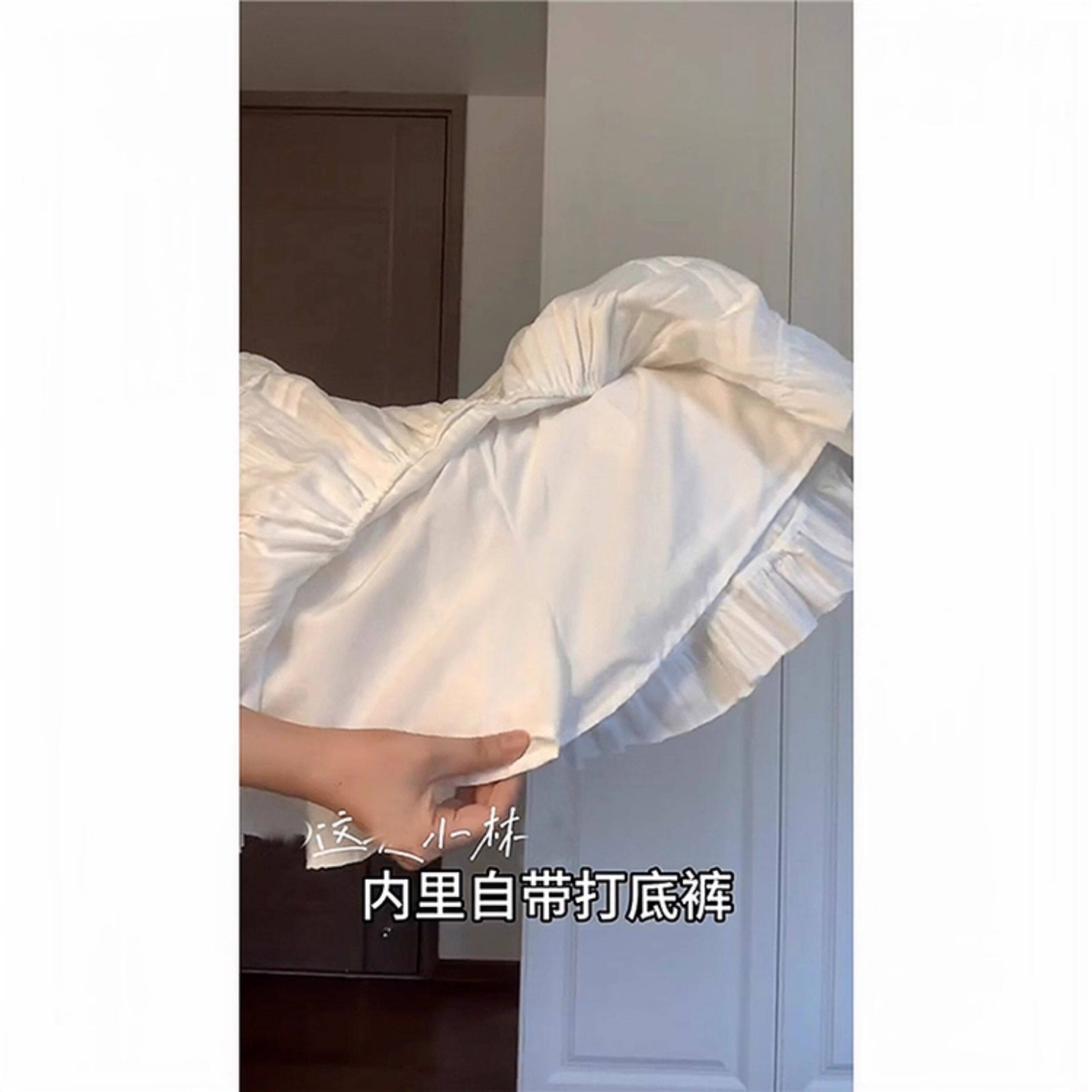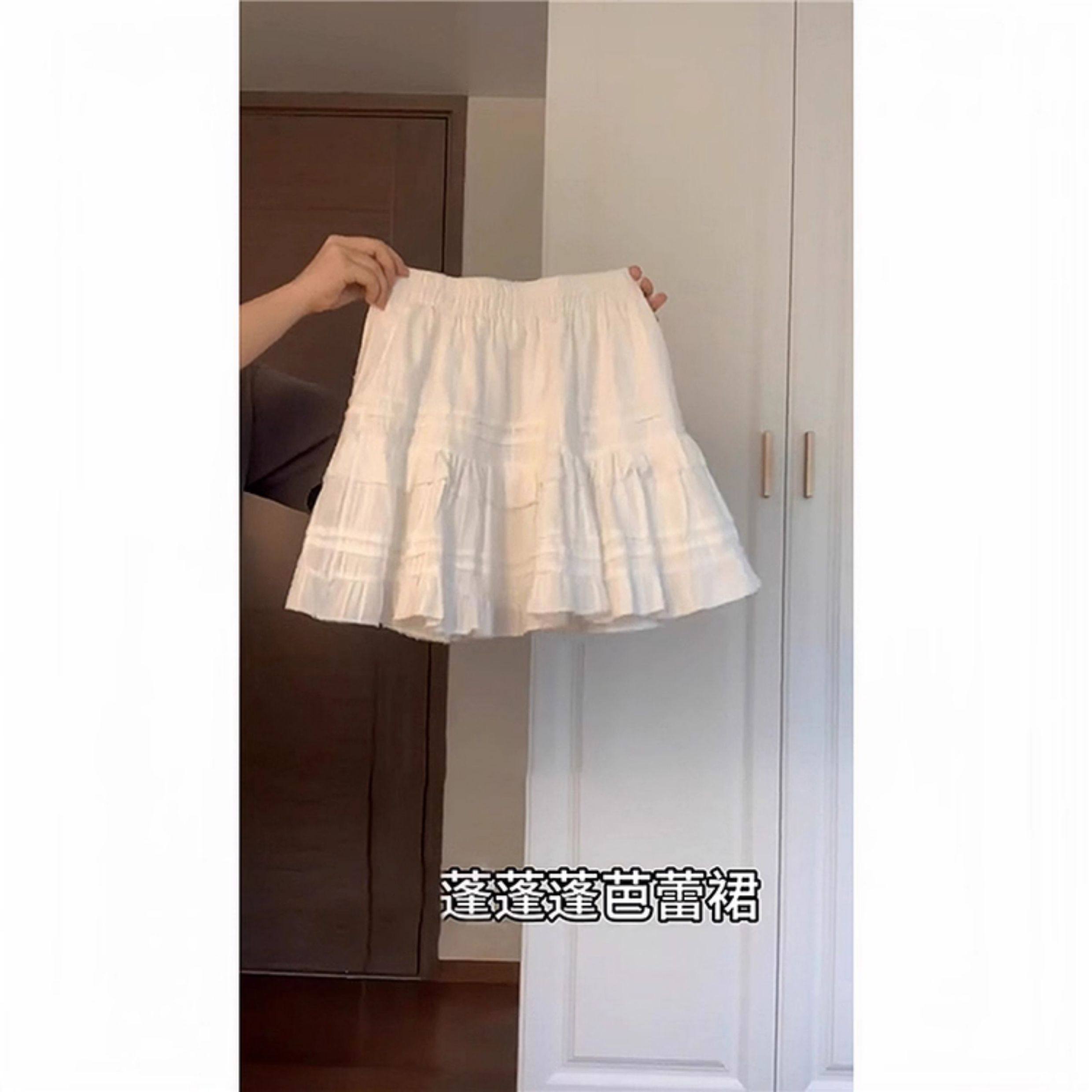 芭蕾风白色半身裙女夏季2025新款a字小个子蛋糕蓬蓬裙荷叶边短裙