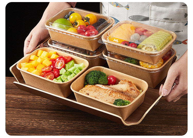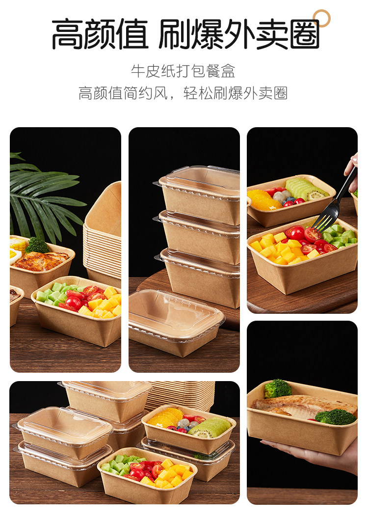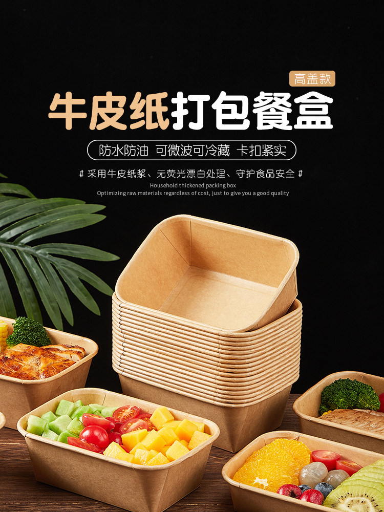 Disposable Lunch Box, Light Meal Bento, Kraft Paper Packaging Box, Food-Grade, Microwaveable, Picnic Box