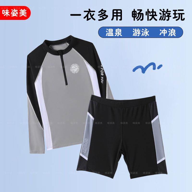 2025 new boy baby children's split swimsuit long-sleeved sun protection medium-sized children's teenager swimsuit trousers suit cross-border