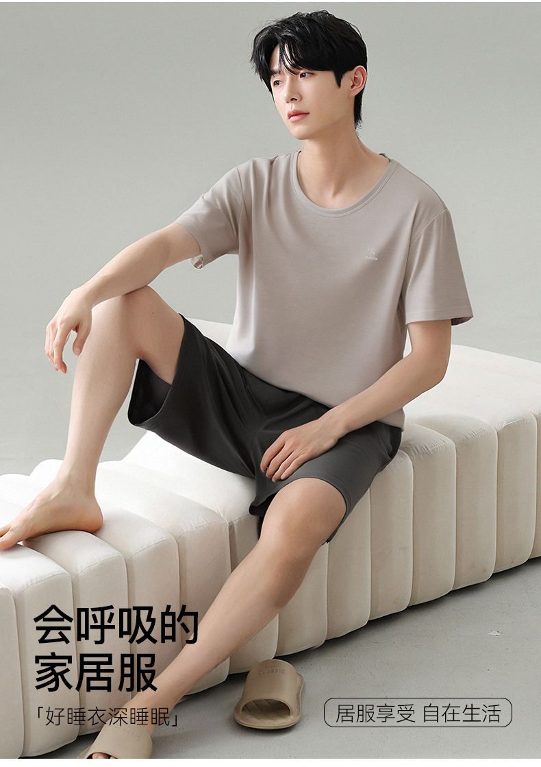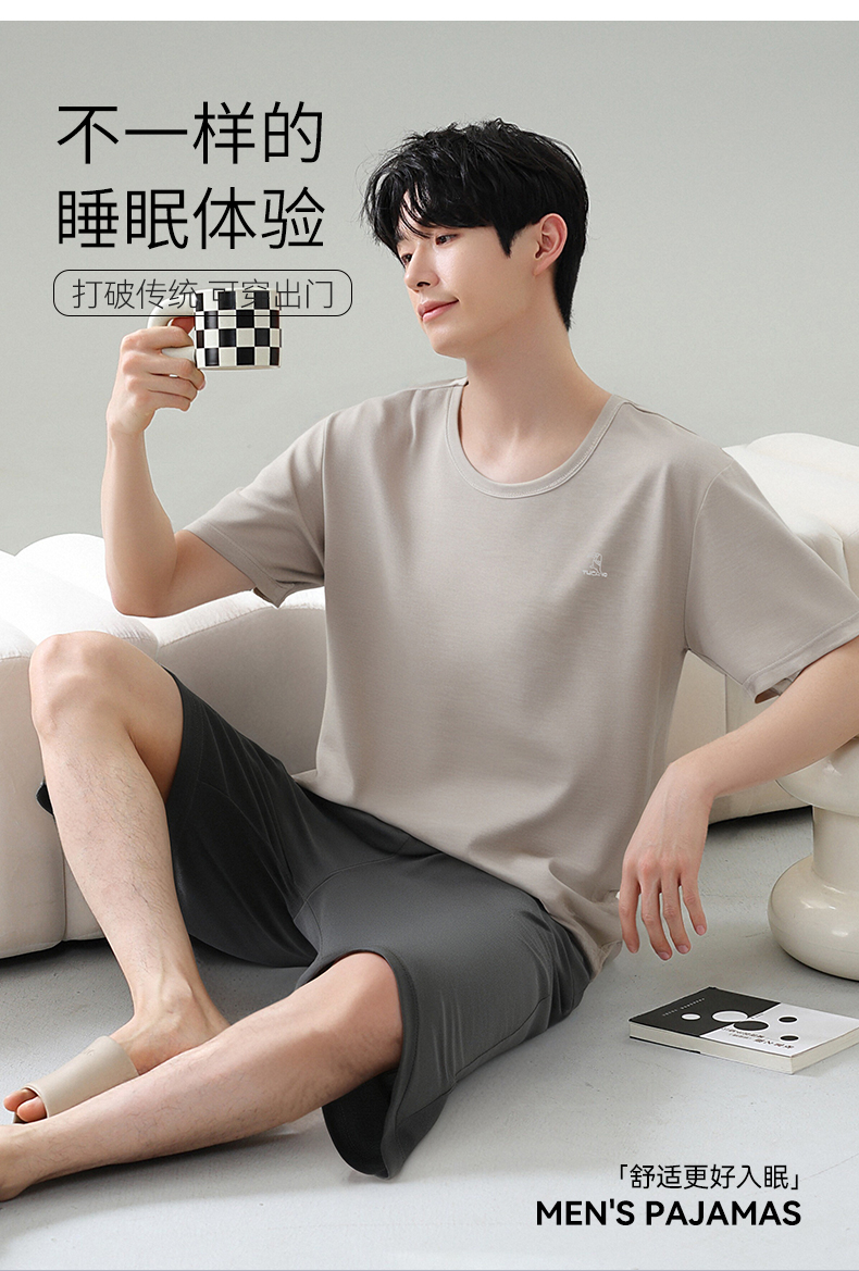 啄木鸟可外穿睡衣男士夏薄款冰丝凉感短袖短裤家居服套装2025新款