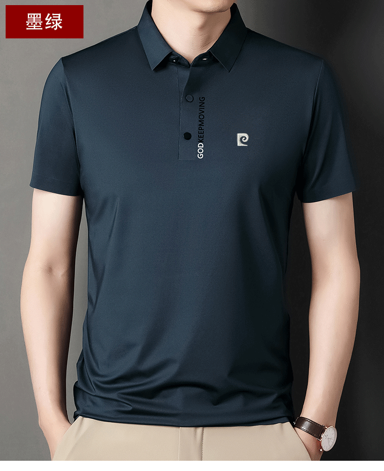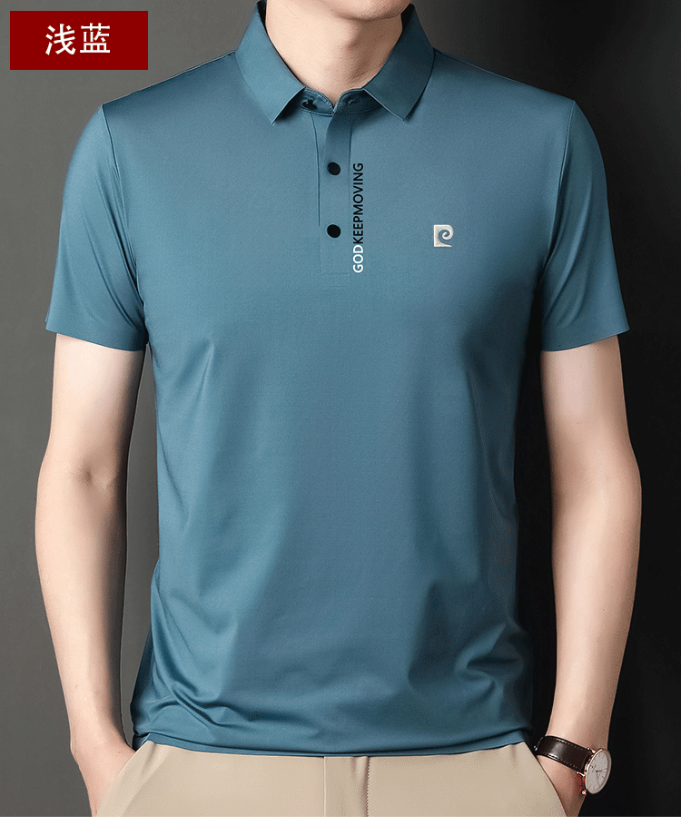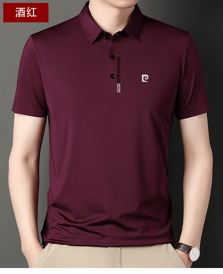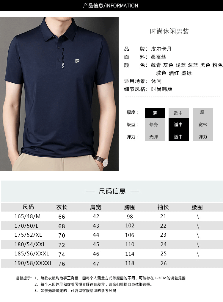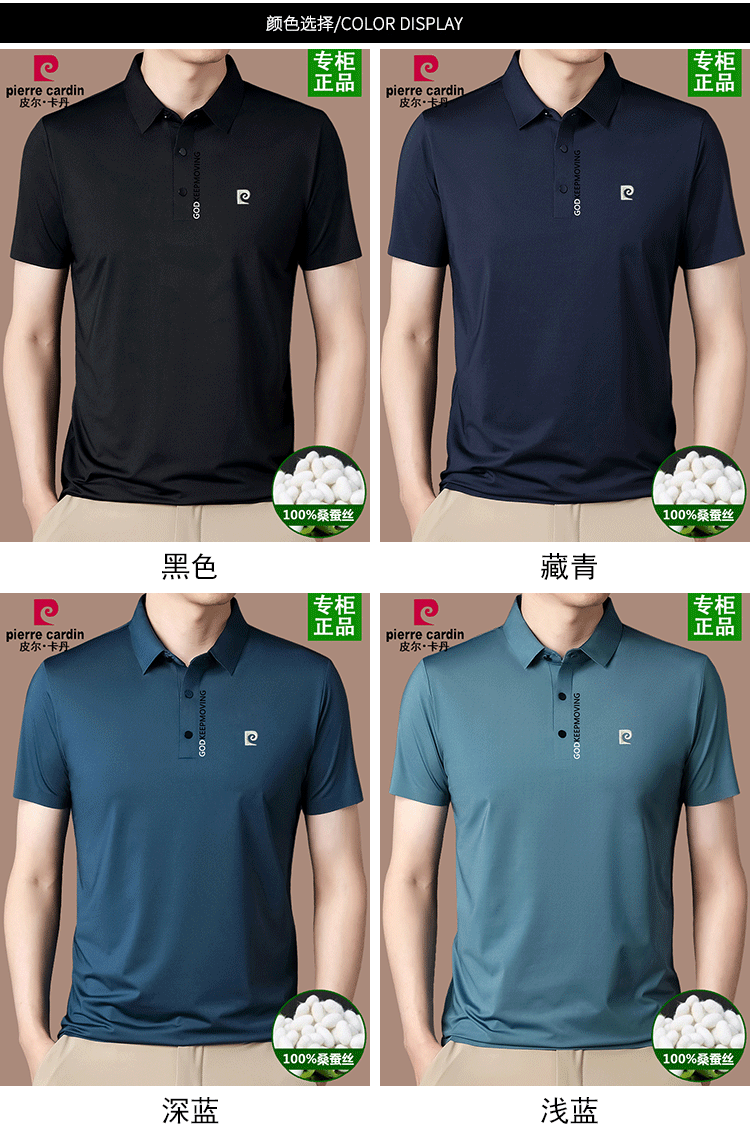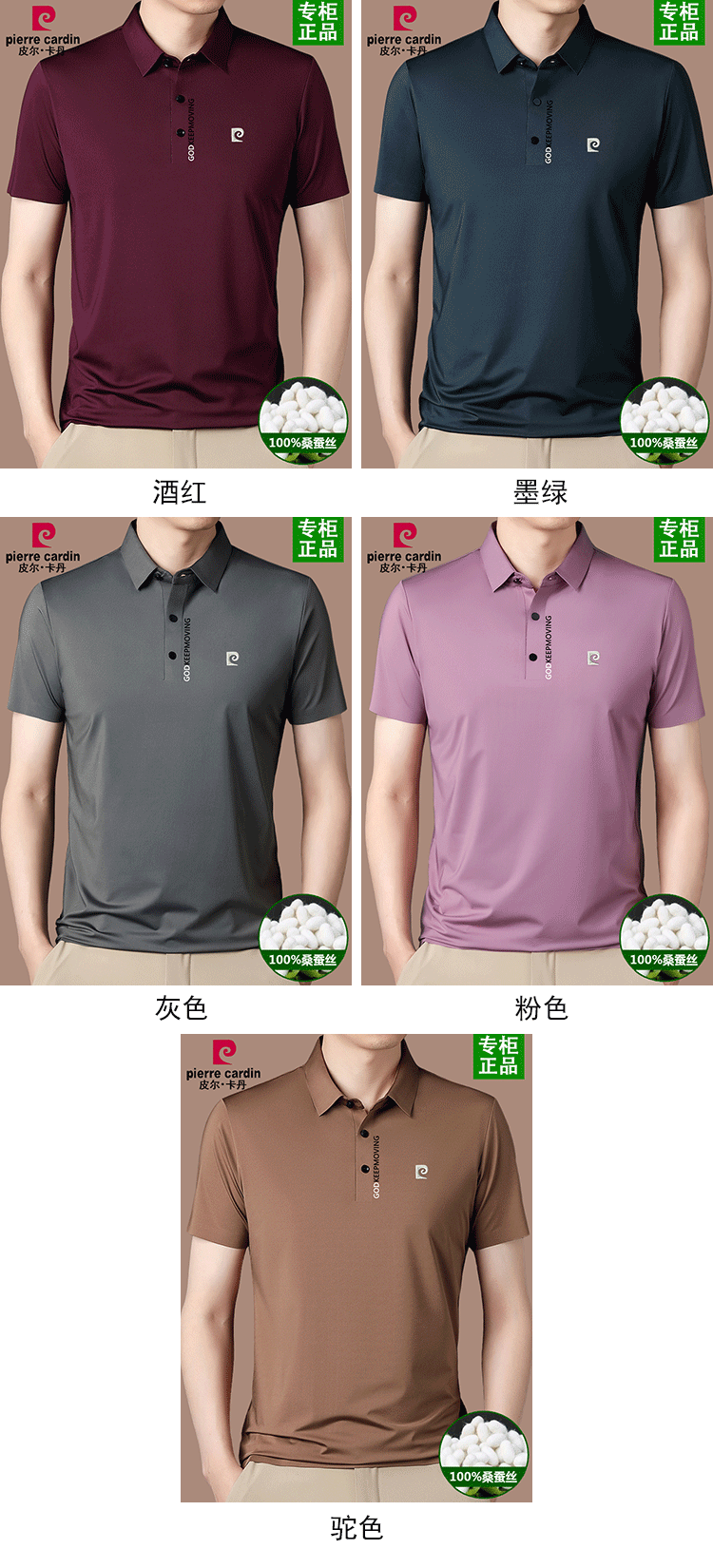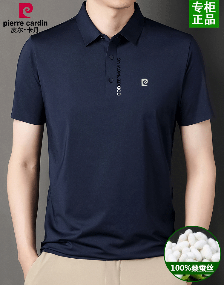 Pier Cardin 100% mulberry silk men's short-sleeved T-shirt for summer thin middle-aged lapel solid color ice silk polo shirt