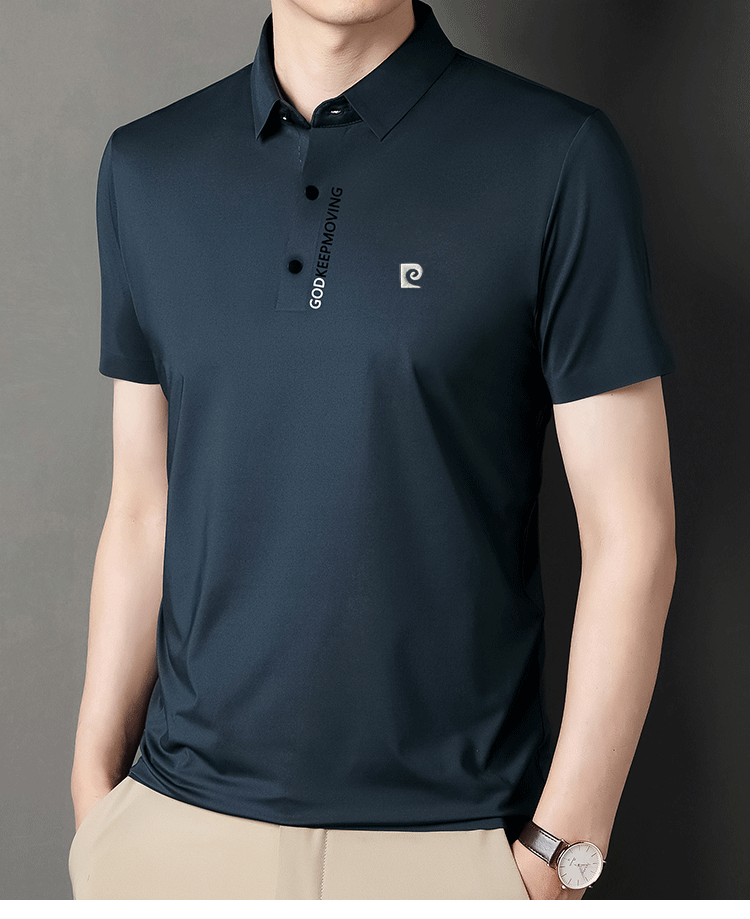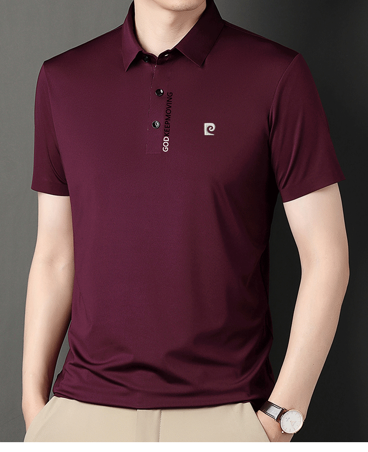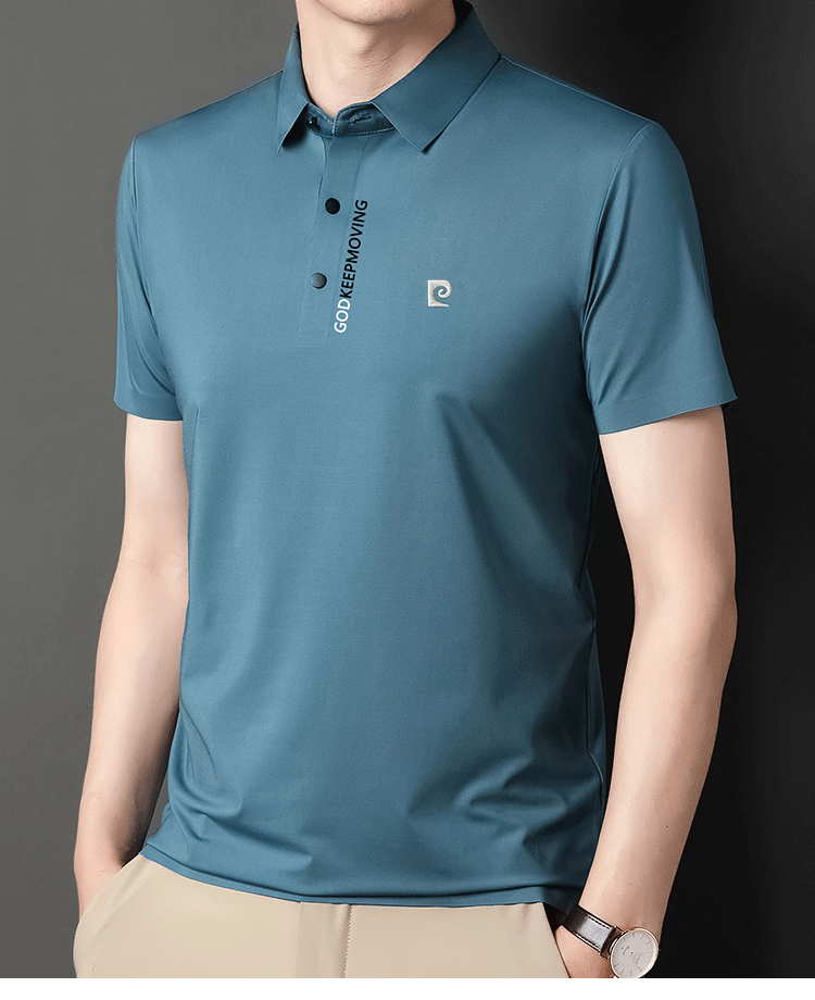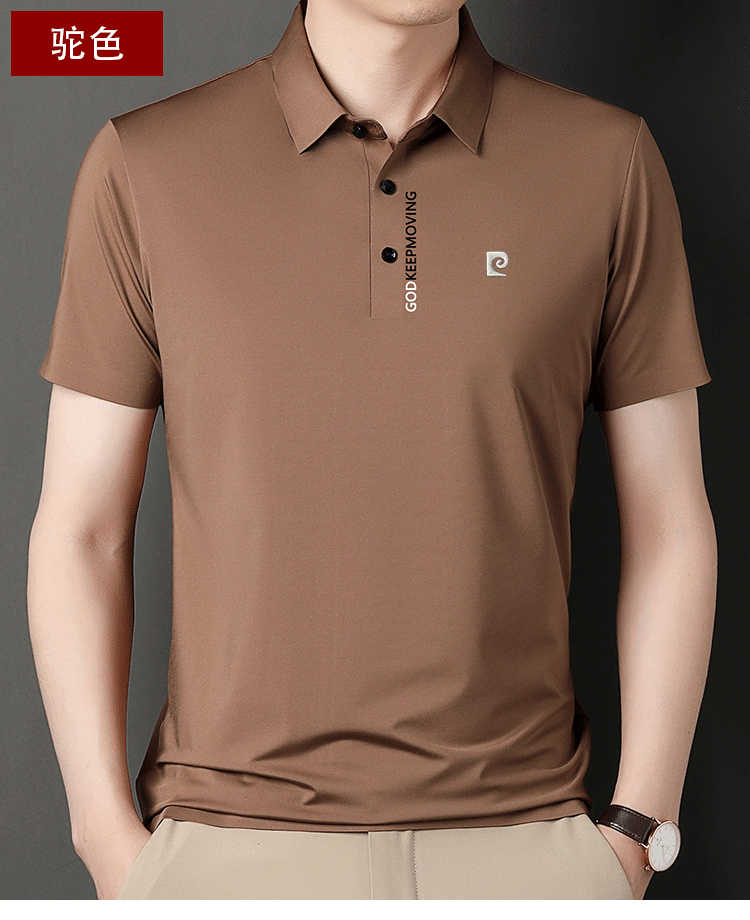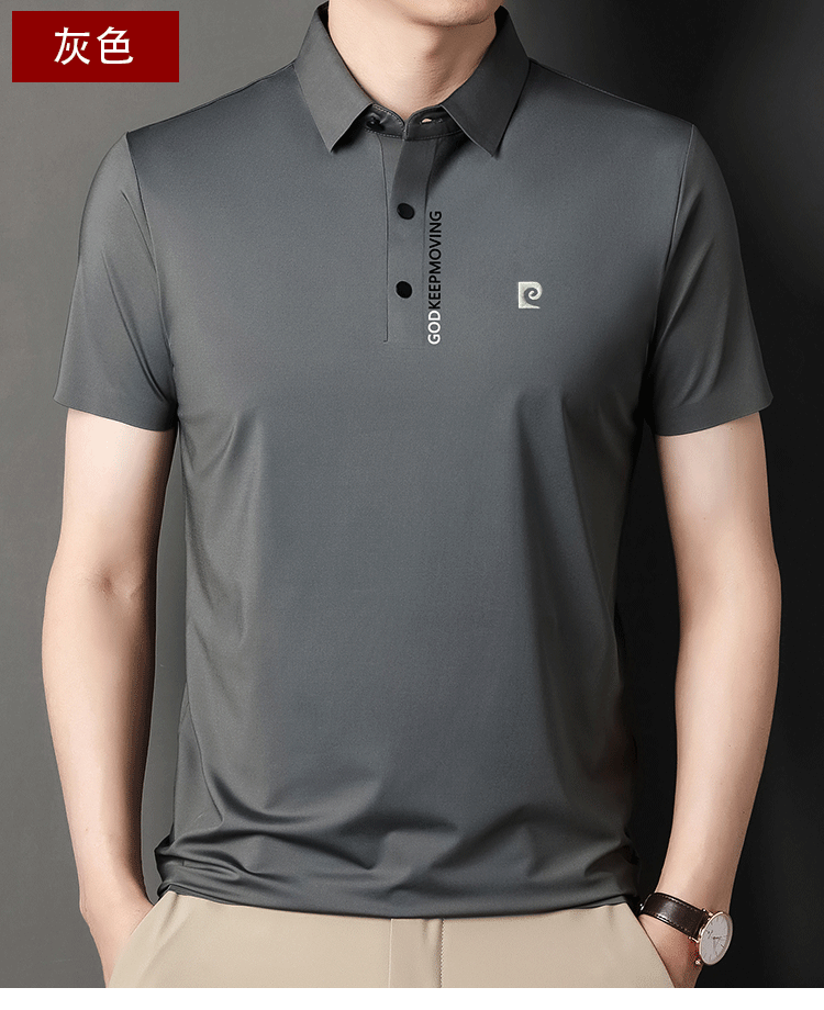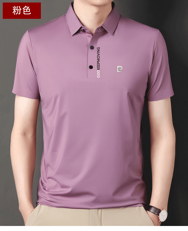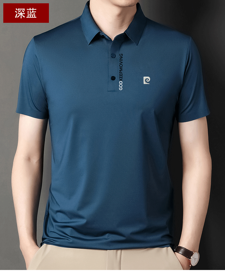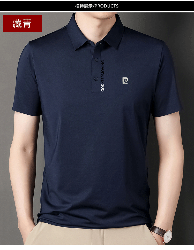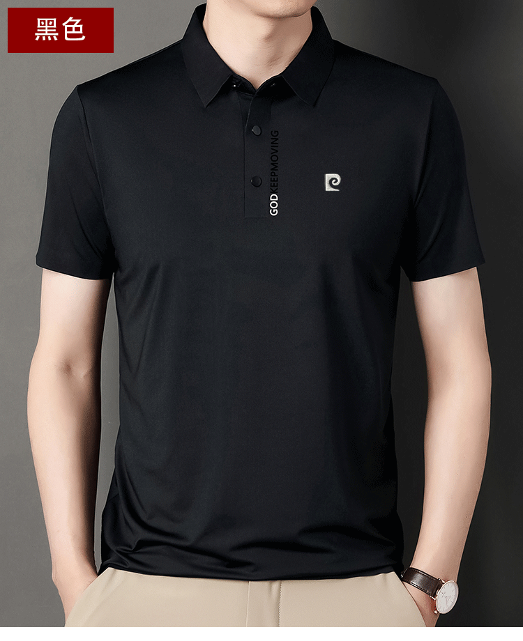 Pier Cardin 100% mulberry silk men's short-sleeved T-shirt for summer thin middle-aged lapel solid color ice silk polo shirt
