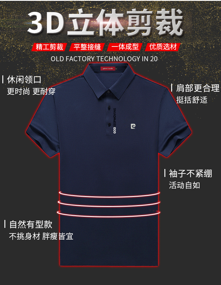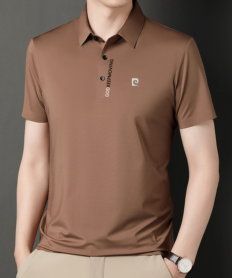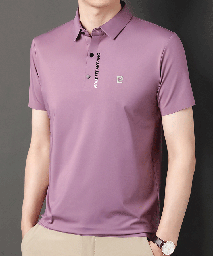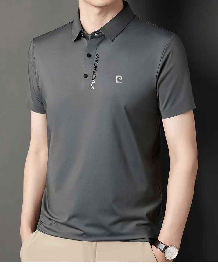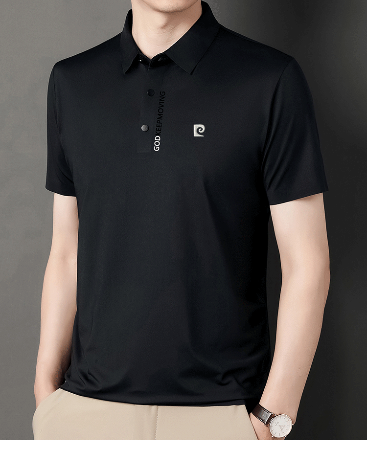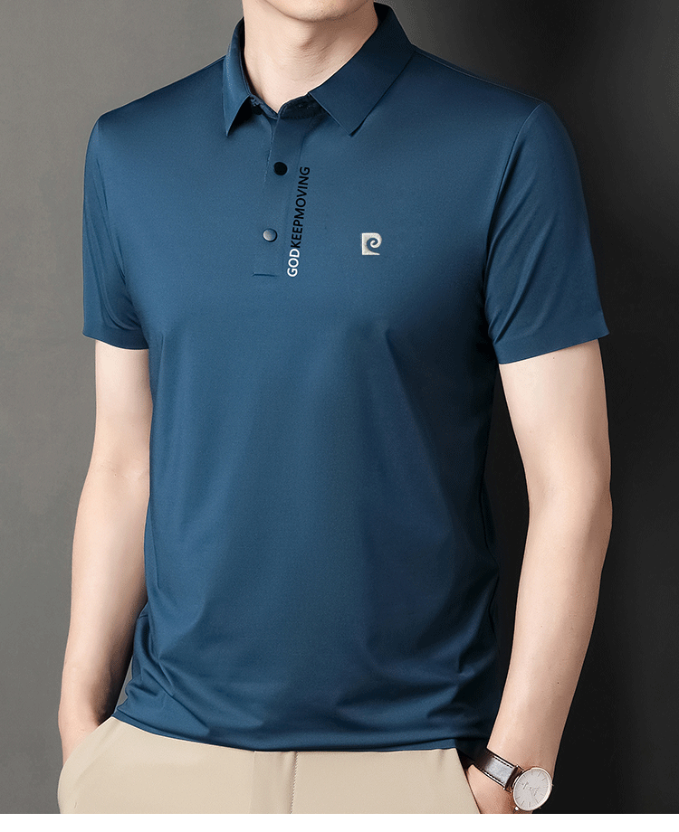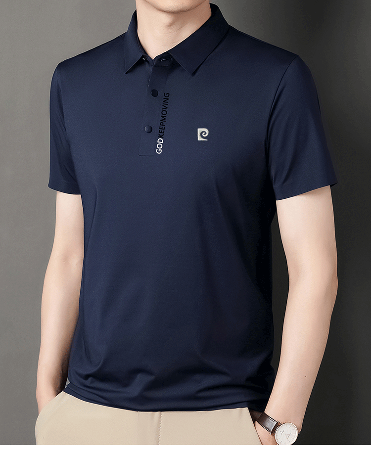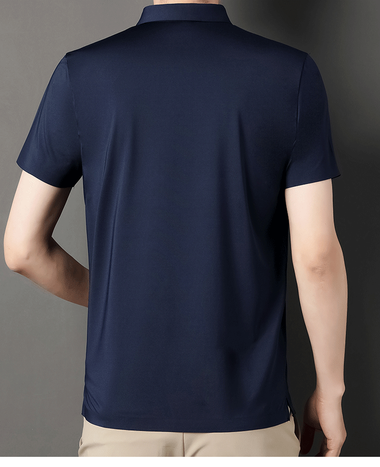 Pier Cardin 100% mulberry silk men's short-sleeved T-shirt for summer thin middle-aged lapel solid color ice silk polo shirt